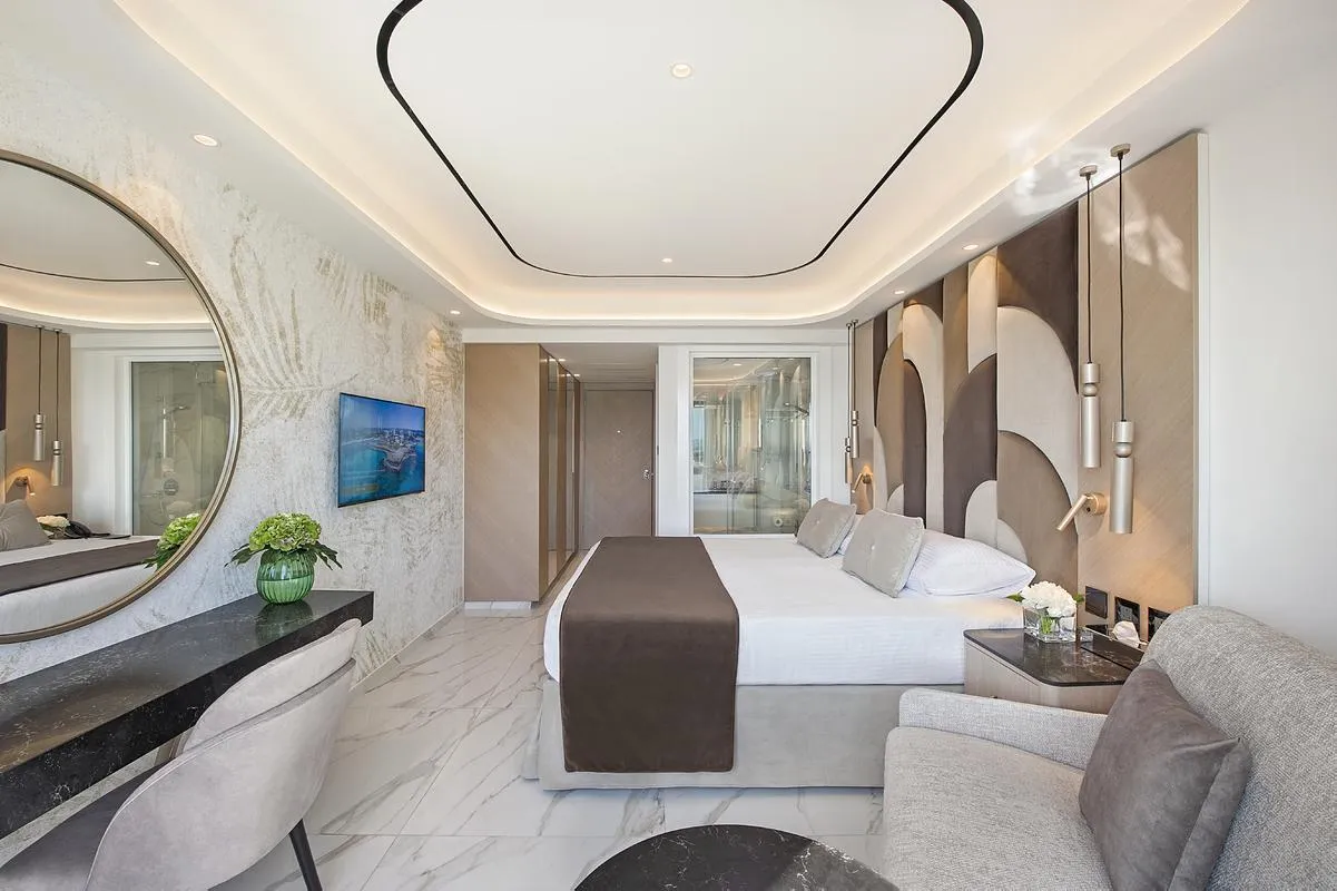 Descriere generală La doar câțiva pași de o plajă cu nisip se găsește hotelul Adams Beach Hotel. Pe plajă sunt disponibile gratuit șezlonguri și umbrele de soare. Centrul turistic al stațiunii se află la doar câțiva metri de distanța. Orașul Ayia Napa este la aprox. 2 km (Protaras cca. 10 km, Larnaca cca. 45 km). Magazinele sunt la aprox. 2 km de hotel, și veți găsi un supermarket la cca. 100 m. La cele mai apropiate baruri și restaurante se poate ajunge într-un timp foarte scurt. De asemenea, există o discotecă la mică distanță de hotel. Următoarele atracții pot fi accesate de la hotel: Waterworld Waterpark (cca. 4 km), Nicosia (cca. 65 km), Monastery Ayia Napa (cca. 4 km), Larnaca (cca. 45 km) și Paphos Archaeologica Park (cca. 150 km). Există posibilitatea de a închiria mașini și motociclete. De asemenea, aveți în apropiere o stație de autobuz (cca. 30 m) și o stație de taxi (cca. 100 m) cea ce vă garantează mobilitatea în vacanță. Pentru îngrijiri medicale în caz de urgență, există un spital la cca. 5 km distanță. Aeroportul (LCA) se află la aprox. 58 km. Un alt aeroport (PFO) este la cca. 170 km. Facilități Resortul, care a fost renovat parțial în 2024, dispune de 6 etaje și peste 435 camere repartizate între o clădire principală și o clădire secundară. Acesta oferă oaspeților săi recepție deschisă 24h (check-in de la 15:00, check out până la 11:00), lobby cu bar, un total de 5 lifturi, aer condiționat, chioșc, minimarket, alte magazine, parcare (gratuită) și birou de schimb valutar. Pentru a satisface apetitul vă stau la dispoziție 6 restaurante și un snackbar. Accesul la internet WiFi este disponibil gratuit pentru oaspeții hotelului. Pentru evenimente de afaceri, hotelul oferă o zonă de conferințe cu un total de 1050 de locuri și cu acces la internet. Pentru oaspeții care depind de un scaun cu rotile, hotelul oferă un lift accesibil pentru scaune cu rotile, băi parțial accesibile pentru scaune cu rotile și acces fără bariere. Serviciul de menaj și serviciul de concierge sunt gratuite. Room service, spălătorie, călcat și serviciul medical sunt disponibile la un cost suplimentar. Piscină În grădinile modernului hotelul există 4 piscine cu apă dulce precum și o piscină separată pentru copii și un tobogan de apă. La piscine sunt disponibile gratuit șezlonguri și umbrele de soare. Un bar lângă piscină oferă oaspeților băuturi răcoritoare. Catering Mic dejun (între orele 07:00 - 10:30) bufet suedez. Demipensiunea include micul dejun și cina. Sport/Leisure Este disponibil: Tenis (gratuit), fitness, tenis de masă (posibil contra cost), biliard (posibil contra cost) și aerobic. Pe plajă puteți practica sporturi nautice precum jet ski și schi nautic (unele de către furnizori locali). Există serviciu de închiriere de biciclete. Oferte de wellness: Zonă de spa, saună și masaje contra cost. Baie turcească posibil contra cost. Divertisment pentru adulți: program de animație cu spectacole de seară și muzică live. Copiii vor găsi un loc de joacă în exteriorul hotelului. Îngrijirea copiilor: program de animație pentru copii (de la 5 - 12 ani), mini club și babysitting (contra cost). Sală de jocuri. Informații suplimentare Pentru anumite facilități sau activități se pot aplica taxe suplimentare. Unele servicii depind de anotimp și de condițiile climatice locale. Limbi de serviciu: engleză, germană, rusă și greacă. Carduri de credit: American Express, Visa și Euro/MasterCard. Premium Familien Bungalow (Garten-Poolblick, Balkon oder Terrasse): Dotate cu pat queen-size sau pat twin, pat pentru bebeluși (gratuit), piscină privată, ceainic (gratuit), minibar (contra cost), balcon sau terasă, acces la internet (gratuit), seif (gratuit), TV prin satelit și canale locale precum și aer condiționat reglabil individual. Baie cu cadă și duș. Familienzimmer (Balkon): Dotate cu pat queen-size sau pat twin, pat pentru bebeluși (gratuit), piscină privată, ceainic (gratuit), minibar (contra cost), balcon, acces la internet (gratuit), seif (gratuit), TV prin satelit și canale locale precum și aer condiționat reglabil individual. Baie cu duș. Familienzimmer (Meerblick, Balkon): Dotate cu pat queen-size sau pat twin, pat pentru bebeluși (gratuit), piscină privată, ceainic (gratuit), minibar (contra cost), balcon, acces la internet (gratuit), seif (gratuit), TV prin satelit și canale locale precum și aer condiționat reglabil individual. Baie cu duș. JuniorSuite (Balkon): Dotate cu pat queen-size sau pat twin, pat pentru bebeluși (gratuit), piscină privată, ceainic (gratuit), minibar (contra cost), balcon, acces la internet (gratuit), seif (gratuit), TV prin satelit și canale locale precum și aer condiționat reglabil individual. Baie cu cadă și duș. JuniorSuite (Meerblick, Balkon): Cameră cu pat queen-size sau pat twin, pat pentru bebeluși (gratuit), piscină privată, ceainic (gratuit), minibar (contra cost), balcon, acces la internet (gratuit), seif (gratuit), TV prin satelit și canale locale precum și aer condiționat reglabil individual. Baie cu cadă și duș. Zimmer (Balkon Promotion): Cameră cu pat queen-size sau pat twin, pat pentru bebeluși (gratuit), piscină privată, ceainic (gratuit), minibar (contra cost), balcon, acces la internet (gratuit), seif (gratuit), TV prin satelit și canale locale precum și aer condiționat reglabil individual. Baie cu duș. Deluxe Zimmer (Privater Pool): Cameră cu pat queen-size sau pat twin, pat pentru bebeluși (gratuit), piscină privată, ceainic (gratuit), minibar (contra cost), balcon, acces la internet (gratuit), seif (gratuit), TV prin satelit și canale locale precum și aer condiționat reglabil individual. Baie cu cadă și duș. Deluxe Zimmer (Seitlicher Meer- oder Poolblick, Balkon): Cameră cu pat queen-size sau pat twin, pat pentru bebeluși (gratuit), piscină privată, ce