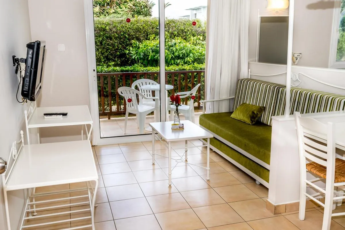 American Express, Visa and Euro / MasterCard. Standard Apartment: The comfortable and cosy furnished rooms are equipped with double bed, single bed or twin bed, 2 extra beds (sofa bed), baby cot (for free), tiled floor, kitchenette, fridge, kettle (for free), balcony or terrace, internet (for free), safe (for a fee) and flat screen sat TV as well as individually adjustable air conditioning (from January to December) and individually adjustable heating (from January to December). Towels are changed daily (free of charge). Bed linen is changed 3 times a week (free of charge). Room size: 42 m². Standard Studio: The comfortable and cosy furnished rooms are equipped with double bed, single bed or twin bed, 2 extra beds (sofa bed), baby cot (for free), tiled floor, kitchenette, fridge, kettle (for free), balcony or terrace, internet (for free), safe (for a fee) and flat screen sat TV as well as individually adjustable air conditioning (from January to December) and individually adjustable heating (from January to December). Towels are changed daily (free of charge). Bed linen is changed 3 times a week (free of charge). Room size: 32 m². Standard Studio (Economy): The comfortable and cosy furnished rooms are equipped with double bed, single bed or twin bed, 2 extra beds (sofa bed), baby cot (for free), tiled floor, kettle (for free), balcony or terrace, internet (for free), safe (for a fee) and flat screen sat TV as well as individually adjustable air conditioning (from January to December) and individually adjustable heating (from January to December). Towels are changed daily (free of charge). Bed linen is changed 3 times a week (free of charge). Room size: 32 m². SingleUse Standard Studio: The comfortable and cosy furnished rooms are equipped with double bed, single bed or twin bed, baby cot (for free), tiled floor, kitchenette, fridge, kettle (for free), balcony or terrace, internet (for free), safe (for a fee) and flat screen sat TV as well as individually adjustable air conditioning (from January to December) and individually adjustable heating (from January to December). Towels are changed daily (free of charge). Bed linen is changed 3 times a week (free of charge). Room size: 32 m².