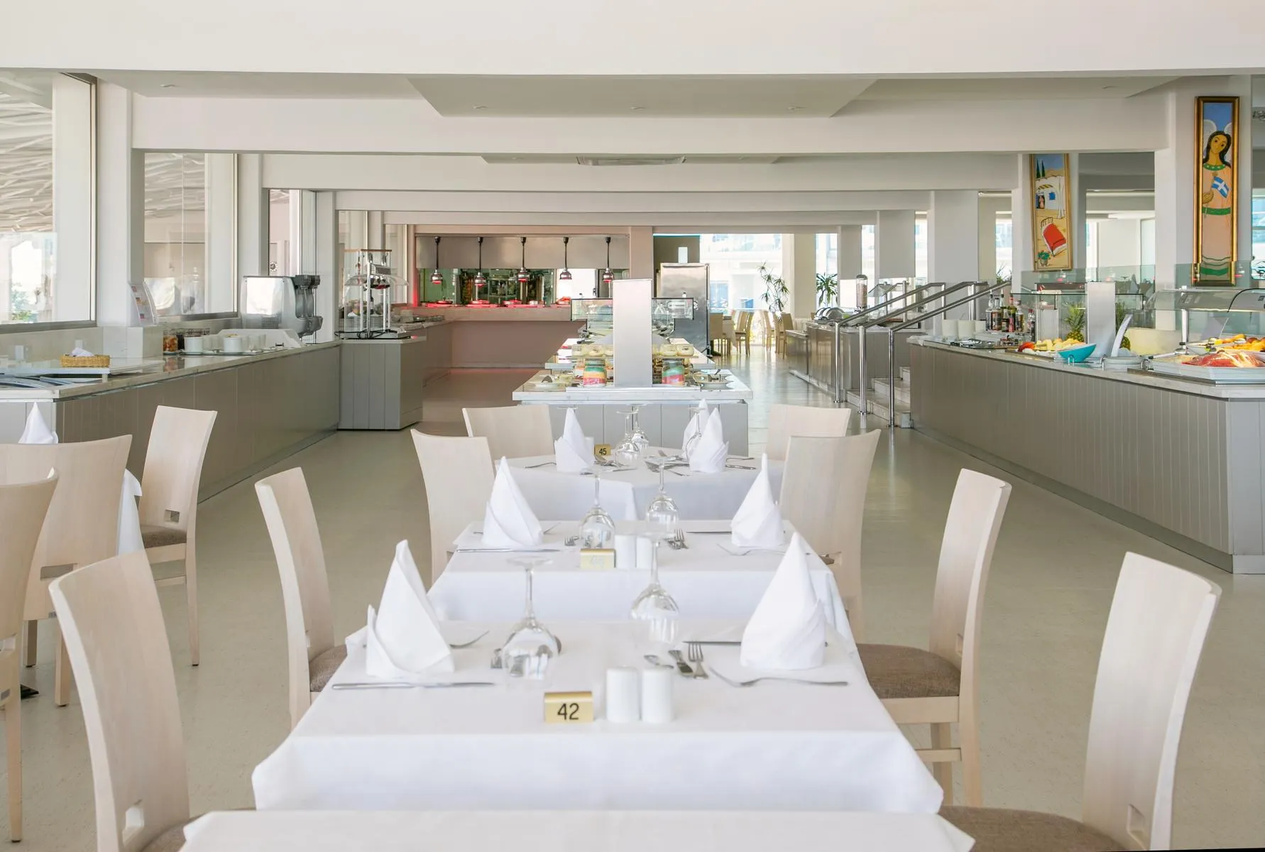 Descriere generală În apropierea unei plaje cu nisip se află hotelul Asterias Beach, care este deosebit de popular printre cei aflați în luna de miere. Pe plajă sunt disponibile șezlonguri și umbrele de soare la un cost suplimentar. Centrul turistic al orașului se află la aprox. 4 km. Orașul Paralimni este la aprox. 10 km (Larnaka cca. 51 km, Protaras cca. 19 km). Un supermarket și alte magazine se găsesc la aprox. 500 m. De asemenea, cele mai apropiate baruri și restaurante sunt la cca. 500 m. O discotecă aflată la aprox. 4 km vă invită la dans. Următoarele atracții pot fi accesate de la hotel: Waterworld Waterpark (cca. 2 km), Ayia Napa Monastery (cca. 4 km) și Agia Napa Marina (cca. 2 km). Există posibilitatea de a închiria mașini și motociclete. De asemenea, aveți în apropiere o stație de autobuz (cca. 500 m) și o stație de taxi (direct la hotel) cea ce vă garantează mobilitatea în vacanța dumneavoastră. Pentru îngrijiri medicale în caz de urgență, există un spital la cca. 3 km distanță. Aeroportul (LCA) se află la aprox. 58 km. Un alt aeroport (PFO) este la cca. 170 km. Facilități Hotelul familiar, care a fost renovat parțial în 2023, dispune de 6 etaje și peste 288 camere. Acesta oferă oaspeților săi recepție deschisă 24h (check-in de la 14:00, check out până la 12:00), lobby cu bar, 3 lifturi, aer condiționat, seif (gratuit), minimarket, Sky-Bar (deschis între orele 19:00 - 00:00), parcare (gratuită), sistem securizat de intrare și birou de schimb valutar. Pentru a satisface apetitul aveți la dispoziție în hotel 3 restaurante cu aer condiționat și un snackbar. Accesul la internet WiFi este disponibil gratuit pentru oaspeții hotelului. În plus, hotelul oferă o zonă de conferințe cu acces la internet. Pentru oaspeții care depind de un scaun cu rotile, hotelul oferă un lift accesibil pentru scaune cu rotile, băi parțial accesibile pentru scaune cu rotile și acces fără bariere. Serviciul de menaj este gratuit. Room service, spălătorie și serviciul medical sunt disponibile la un cost suplimentar. Călcat contra depozit. Piscină În grădinile acestui hotelul există 2 piscine cu apă dulce precum și o piscină separată pentru copii (deschise din aprilie până în noiembrie). La piscine sunt disponibile gratuit șezlonguri și umbrele de soare. La barul piscinei va puteți bucura de o băutura răcoritoare. Catering Mic dejun (între orele 07:00 - 10:00) bufet suedez. Demipensiunea include micul dejun și cina. All Inclusive: micul dejun, prânzul și cina. Micul dejun, prânzul și cina pot fi servite numai în anumite restaurante. Prăjituri și produse de patiserie, anumite băuturi alcoolice importate, aperitive și cocktailuri. Băuturi răcoritoare (10:00 - 00:00), cafea și ceai (10:00 - 00:00), bere (10:00 - 00:00), vin (10:00 - 00:00), băuturi alcoolice naționale (10:00 - 00:00) și internet gratuit. Sport/Leisure Oferte pentru sport și divertisment: Baschet, biliard (contra cost), aerobic, fitness, darts (gratuit), tenis de masă (gratuit) și tenis (contra cost). La cca. 100 m de hotel, sunt oferite sporturi nautice precum schi nautic și plimbări cu barca cu motor (unele de către furnizori locali). Există serviciu de închiriere de biciclete. Oferte de wellness: Zonă de spa, saună, jacuzzi, baie turcească și masaje contra cost. Divertisment pentru adulți: program de animație cu spectacole de seară și muzică live. Copiii vor găsi un loc de joacă în exteriorul hotelului. Îngrijirea copiilor: program de animație pentru copii și mini club pentru copii (de la 4 - 12 ani). Sală de jocuri. Informații suplimentare Pentru anumite facilități sau activități se pot aplica taxe suplimentare. Unele servicii depind de anotimp și de condițiile climatice locale. Limbi de serviciu: engleză și germană. Carduri de credit: American Express, Visa și Euro/MasterCard. Standard Familienzimmer (Balkon): Camerele moderne și confortabile sunt echipate cu pat dublu, pat pentru bebeluși (gratuit), pardoseală cu gresie, balcon, acces la internet (gratuit), seif (gratuit) și TV cu ecran plat prin satelit precum și aer condiționat reglabil individual (din aprilie până în noiembrie). Baie cu duș. Prosoapele se schimbă zilnic, lenjeria de pat de 3 ori pe săptămână. Standard JuniorSuite (Balkon): Camerele moderne și confortabile cu living sunt echipate cu pat dublu, pat pentru bebeluși (gratuit), pardoseală cu gresie, jacuzzi, piscină comună, acces la internet (gratuit) și TV cu ecran plat prin satelit precum și aer condiționat reglabil individual (din aprilie până în noiembrie). Baie cu duș. Prosoapele se schimbă zilnic, lenjeria de pat de 3 ori pe săptămână. Standard Zimmer (Balkon Economy): Camerele moderne și confortabile sunt echipate cu pat twin, pat suplimentar, pat pentru bebeluși (gratuit), pardoseală cu gresie, balcon, acces la internet (gratuit), seif (gratuit) și TV cu ecran plat prin satelit precum și aer condiționat reglabil individual (din aprilie până în noiembrie). Baie cu duș. Prosoapele se schimbă zilnic, lenjeria de pat de 3 ori pe săptămână. Standard Zimmer (SwimUp-Pool Terrasse): Camerele moderne și confortabile sunt echipate cu pat twin, pat pentru bebeluși (gratuit), pardoseală cu gresie, piscină comună, acces la internet (gratuit), seif (gratuit) și TV cu ecran plat prin satelit precum și aer condiționat reglabil individual (din aprilie până în noiembrie). Baie cu duș. Prosoapele se schimbă zilnic, lenjeria de pat de 3 ori pe săptămână. Standard Zimmer (Gartenblick, Balkon): Camerele moderne și confortabile sunt echipate cu pat twin, pat suplimentar, pat pentru bebeluși (gratuit), pardoseală cu gresie, balcon, acces la internet (gratuit), seif (gratuit) și TV cu ecran plat prin satelit precum și aer condiționat reglabil individual (din aprilie până în noiembrie). Baie cu duș. Prosoapele se schimbă 