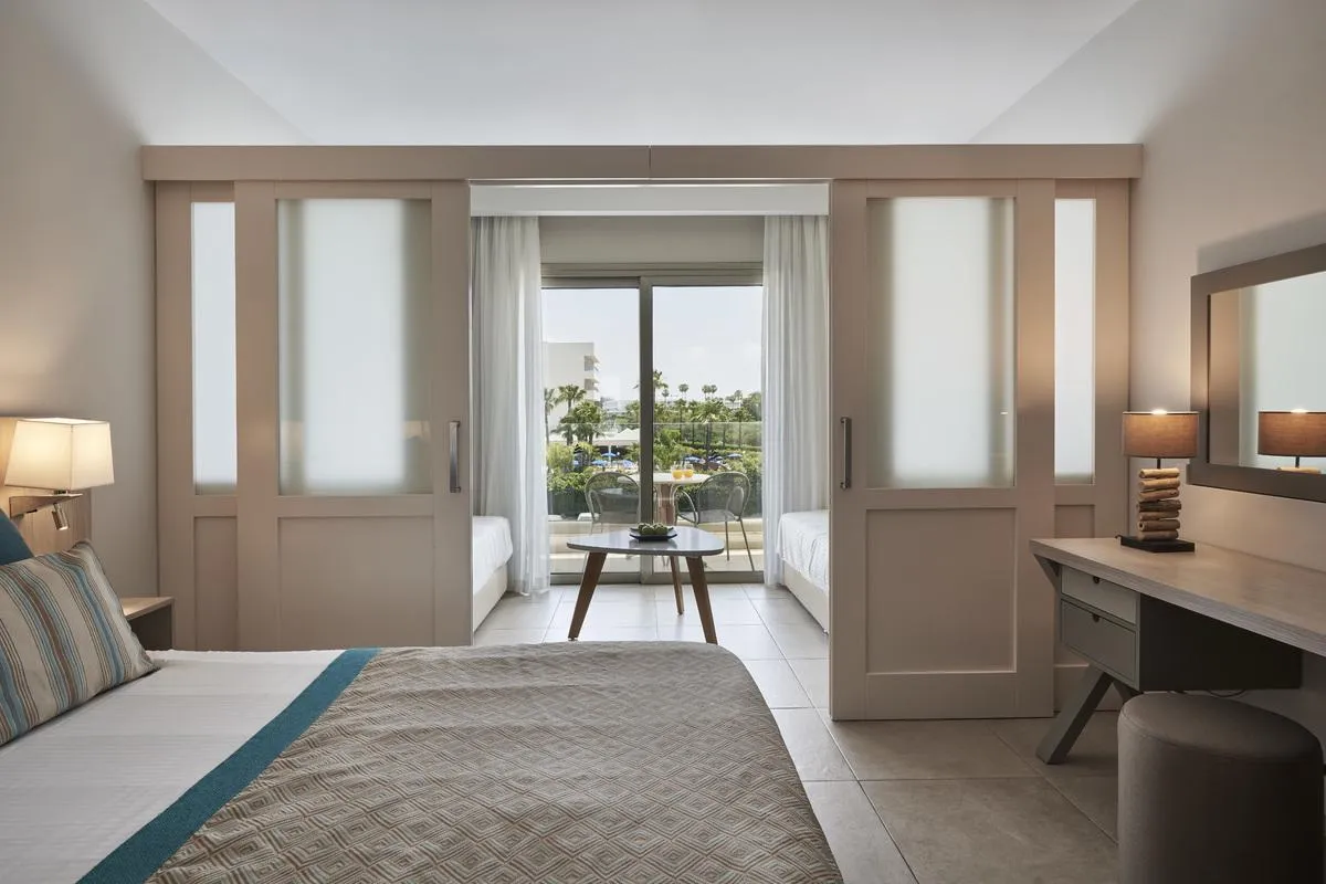 Descriere generală Hotelul Atlantica Aeneas Resort este situat la cca. 150 m de o plajă cu nisip. Pe plajă sunt disponibile umbrele de soare și șezlonguri la un cost suplimentar. Centrul turistic al stațiunii se află la aprox. 3 km. Orașul Larnaca este la aprox. 45 km (Paralimni cca. 10 km). Chiar lângă hotel este un supermarket. La cele mai apropiate baruri și restaurante se poate ajunge, de asemenea, într-un timp foarte scurt. O discotecă aflată la aprox. 2 km vă invită la dans. Următoarele atracții pot fi accesate de la hotel: Sculpture Park (cca. 3 km), Waterpark (cca. 2 km), Medieval Monastery (cca. 3 km), Thalassa Museum (cca. 3 km) și Cape Greko (cca. 4 km). Există posibilitatea de a închiria mașini și motociclete. De asemenea, aveți în apropiere o stație de autobuz (cca. 50 m) și o stație de taxi (direct la hotel) cea ce vă garantează mobilitatea în vacanță. Pentru îngrijiri medicale în caz de urgență, există un spital la cca. 1 km distanță. Aeroportul (LCA) se află la aprox. 58 km. Un alt aeroport (PFO) este la cca. 170 km. Facilități Hotelul de wellness dispune de 5 etaje și peste 414 camere repartizate între o clădire principală și de 5 clădiri secundare. Acesta oferă oaspeților săi recepție (check-in de la 15:00, check out până la 11:00), lobby cu bar, 2 lifturi, aer condiționat, seif (gratuit), chioșc, minimarket, alte magazine, parcare (gratuită) și birou de schimb valutar. Pentru a servi masa vă stau la dispoziție 4 restaurante cu aer condiționat și un snackbar. Accesul la internet WiFi este disponibil gratuit pentru oaspeții hotelului. Pentru evenimente de afaceri, hotelul oferă o zonă de conferințe cu acces la internet. Pentru oaspeții cu dizabilități fizice, unitatea de cazare oferă un lift accesibil pentru scaune cu rotile, băi parțial accesibile pentru scaune cu rotile și acces fără bariere. Serviciul de menaj și serviciul de concierge sunt gratuite. Room service, spălătorie și călcat sunt disponibile la un cost suplimentar. Piscină În grădinile acestui hotelul decorat în stil mediteranean există 7 piscine cu apă dulce precum și o piscină separată pentru copii (deschise din martie până în noiembrie) și un tobogan de apă. Acolo sunt disponibile gratuit șezlonguri și umbrele de soare. La barul de la piscină sunt disponibile băuturi răcoritoare (deschis între orele 10:00 - 18:00). Catering Mic dejun (între orele 07:00 - 10:00) bufet suedez. Demipensiunea include micul dejun și prânzul sau cina. Pensiunea completă include micul dejun, prânzul și cina. Micul dejun și prânzul și cina pot fi servite numai în anumite restaurante. Sunt disponibile și meniuri pentru copii. All Inclusive: micul dejun, prânzul și cina. Micul dejun, prânzul și cina pot fi servite numai în anumite restaurante. Sunt disponibile și meniuri pentru copii. Apă și cocktailuri. Băutură de bun venit, băuturi răcoritoare (10:00 - 01:00), cafea și ceai (10:00 - 01:00), aperitive (10:00 - 18:00), bere (10:00 - 01:00), vin (10:00 - 01:00), băuturi alcoolice naționale (10:00 - 01:00), 1 masă pe sejur în restaurantul à la carte, internet gratuit, minibar gratuit în cameră (limitat) și utilizarea gratuită a seifului (în baza unei garanții). Este posibil check-in mai devreme și check-out mai târziu (în funcție de disponibilitate). Sport/Leisure Oferte pentru sport și divertisment: Fotbal, darts (gratuit), biliard (contra cost), baschet, tenis de masă (gratuit), fitness și tenis (gratuit). La cca. 150 m de hotel, sunt oferite sporturi nautice (unele de către furnizori locali). Există serviciu de închiriere de biciclete. Oferte de wellness: Saună și jacuzzi gratuite. Zonă de spa și baie turcească contra cost. Masaje posibil contra cost. Divertisment pentru adulți: program de animație cu spectacole de seară și muzică live. Teren de joacă. Îngrijirea copiilor: program de animație pentru copii, mini club pentru copii (de la 3 - 11 ani) și grădiniță. Informații suplimentare Pentru anumite facilități sau activități se pot aplica taxe suplimentare. Unele servicii depind de anotimp și de condițiile climatice locale. Nu se servește alcool în acest hotel. Limbi de serviciu: engleză, germană, rusă și greacă. Carduri de credit: Euro/MasterCard și Visa. Familienzimmer (Blick auf das Inland, Schiebetür): Camerele primitoare, moderne și confortabile sunt echipate cu pat king-size, pat dublu sau pat twin, o canapea extensibilă ca pat suplimentar, pat pentru bebeluși (gratuit), pardoseală cu gresie, încălzire controlată centralizat, ceainic (gratuit), minibar (posibil contra cost), balcon, acces la internet (gratuit), seif (gratuit), aparat de cafea cu capsule (gratuit) și TV prin cablu/satelit precum și aer condiționat controlat central (din mai până în octombrie). Prosoapele se schimbă zilnic, lenjeria de pat de 3 ori pe săptămână. Dimensiune: 32 m². Premium Familienzimmer (SwimUp-Pool Terrasse): Camerele primitoare, moderne și confortabile sunt echipate cu pat king-size sau pat dublu, o canapea extensibilă ca pat suplimentar, pat pentru bebeluși (gratuit), pardoseală cu gresie, piscină comună, încălzire controlată centralizat, ceainic (gratuit), minibar (posibil contra cost), acces la internet (gratuit), seif (gratuit), aparat de cafea cu capsule (gratuit) și TV prin cablu/satelit precum și aer condiționat controlat central (din mai până în octombrie). Prosoapele se schimbă zilnic, lenjeria de pat de 3 ori pe săptămână. Dimensiune: 32 m². Premium Familienzimmer (Zugang zum Pool, Schiebetür): Camerele primitoare, moderne și confortabile sunt echipate cu pat king-size sau pat dublu, o canapea extensibilă ca pat suplimentar, pat pentru bebeluși (gratuit), pardoseală cu gresie, piscină comună, încălzire controlată centralizat, ceainic (gratuit), minibar (posibil contra cost), acces la internet (gratuit), sei