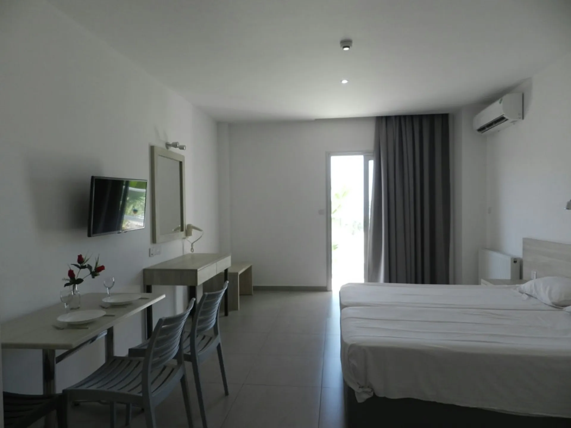 The accommodation Evabelle Napa Hotel Apartments is approximately 50 km from the airport. The hotel is equipped with a 24h reception, a lobby bar, Wi-Fi, a lift, a supermarket, parking spaces as well as a TV lounge. In the outdoor area of the property you will find a garden as well as a pool that is open seasonally, where sun loungers and sun umbrellas are available for free. Furthermore, you can relax outdoors on a terrace. Inside the hotel you can use an indoor pool. For very young guests, cots can also be provided. You can store your luggage in the hotel's storage room. There is also an ironing service. If necessary, you can contact the medical centre (for a fee). Due to its barrier-free facilities , such as barrier-free entrances, the hotel is also suitable for wheelchair users. Catering Breakfast is offered from the buffet. Dinner is also served as a buffet. Your physical well-being is catered for by the pool bar. Sports & Leisure To keep your fitness up on holiday, there is a gym for guests to use. There is also the option to play billiards. A tennis court can also be used by hotel guests. Additional information The 3-storey hotel, last renovated in 2017, has a total of 122 rooms.