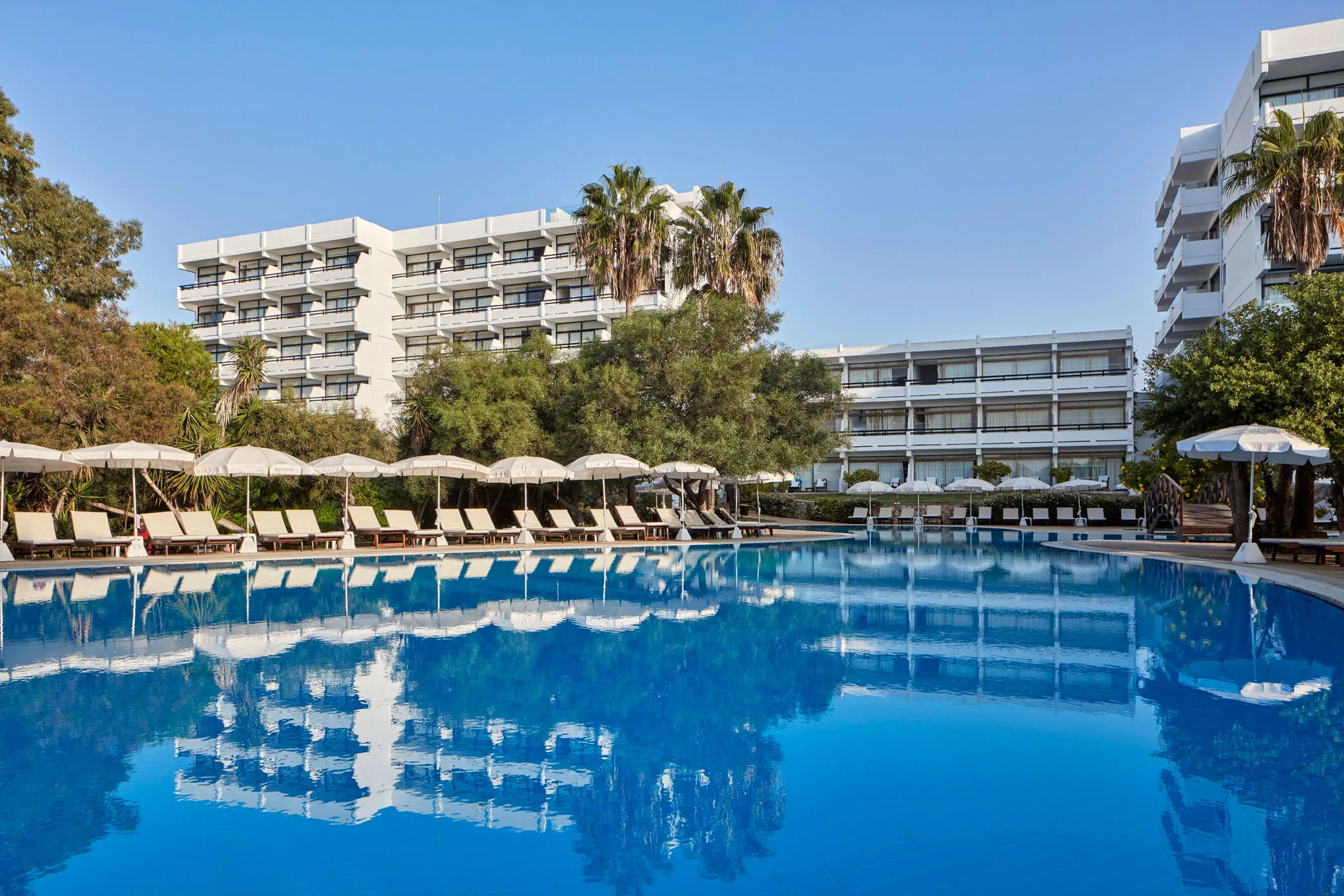This luxury five star hotel is situated on the most beautiful sandy beach in Cyprus with breathtaking views of the crystal clear waters of the Mediterranean Sea. The complex offers a world of amenities together with exceptional service and friendly staff. Along with our 3 restaurants, coffee shop, bars, spa and wellness center the Grecian Bay is renowned for its pleasant and welcoming atmosphere. We will ensure that your stay with us will be truly memorable. Location:2018 Year of most recent renovation; 273 Total number of rooms; 5 Number of floors (main building) Hotel type:hotel Methods of payment:American Express; EC; Diners Club; MasterCard; Visa Distances (in meters):City centre (1000); Bus/Train station (50); Airport (36900) Room facilities (Standard room):1 Number of bedrooms; Bathroom; Disability-friendly bathroom; Hairdryer; Toiletries; Bathrobes; Slippers; Wi-fi; Internet access; Direct dial telephone; TV; Satellite TV ; Radio; Alarm clock; Minibar; Tea and coffee making facilities ; Centrally regulated air conditioning; Individually adjustable air conditioning; Central heating; Safe; Balcony; Wake-up service; Turndown service; Smoking rooms; Extra beds on demand Facilities:Wheelchair-accessible; Car park; Electric vehicle charging station; 24-hour reception; Check-in hour; Check-out hour; Wi-fi; Car hire (Extra Fee); Room service (Extra Fee); Laundry service; Bicycle hire service (Extra Fee); Babysitting service (Extra Fee); Multilingual staff; Bellboy service; Air conditioning in public areas; Hotel safe; Currency exchange facilities; Lift access; Shop; Garden; Terrace; Concierge; Sun terrace; Gym; Newspapers; Luggage room; Dining area; Clothes dryer; Grill/BBQ; Private beach area Catering:Café; Bar; 4 Restaurant; Non-smoking area; Highchairs; Poolside snack bar; Air conditioning in Restaurant; Breakfast room Business:5 Conference room; Meeting room; Projector (Extra Fee); Business centre Entertainment:1 Indoor freshwater pool; 1 Outdoor freshwater pool; 1 Children’s swimming area; Sun loungers; Parasols; Children playground; Kids’ club; TV lounge; Game room Health:Sauna; Steam bath; Hot tub; Turkish bath (hamam); Solarium (Extra Fee); Massage (Extra Fee); Spa treatments (Extra Fee); Hairdressing salon (Extra Fee); Beauty salon (Extra Fee); Spa centre (Extra Fee)