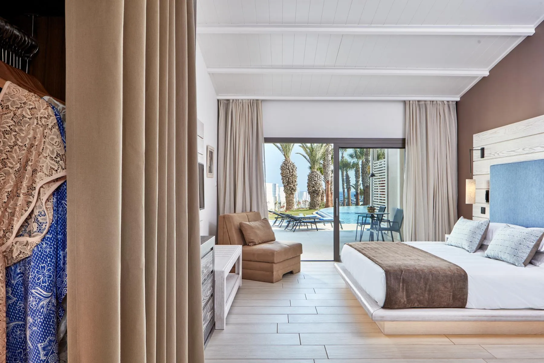 Descriere generală Hotelul Mare Ayia Napa este situat în apropierea unei plaje cu nisip. Pe plajă sunt disponibile gratuit șezlonguri și umbrele de soare. Centrul turistic al orașului se află la aprox. 4 km. Orașul Larnaca este la aprox. 45 km (Ayia Napa cca. 4 km, Protaras cca. 9 km). Magazinele sunt la aprox. 4 km de hotel, și veți găsi un supermarket la cca. 15 km. De asemenea, cele mai apropiate baruri și restaurante sunt la cca. 4 km. O discotecă aflată la aprox. 5 km vă invită la dans. Următoarele atracții pot fi accesate de la hotel: Ayia Napa Monastery (cca. 4 km), Waterworld Waterpark (cca. 11 km), Cape Greco National Park (cca. 3 km), Sculpture Park Ayia Napa (cca. 3 km) și Thalassa Museum (cca. 4 km). Există posibilitatea de a închiria mașini și motociclete. De asemenea, aveți în apropiere o stație de autobuz și o stație de taxi (direct la hotel) cea ce vă garantează mobilitatea în vacanța dumneavoastră. Pentru îngrijiri medicale în caz de urgență, există un spital la cca. 15 km distanță. Aeroportul (LCA) se află la aprox. 58 km. Un serviciu de transfer (contra cost) face legătura între hotel și aeroport. Un alt aeroport (PFO) este la cca. 170 km. Facilități Hotelul familiar dispune de 5 etaje și peste 341 camere repartizate între o clădire principală și de 4 clădiri secundare. Acesta oferă oaspeților săi recepție deschisă 24h (check-in de la 15:00, check out până la 11:00), lobby, un total de 13 lifturi, aer condiționat, seif (gratuit), minimarket, Sky-Bar (deschis între orele 17:00 - 01:00), parcare (gratuită), sistem securizat de intrare și birou de schimb valutar. O masă savuroasă va așteapta la unul dintre cele 7 restaurante a hotelului. Accesul la internet WiFi este disponibil gratuit pentru oaspeții hotelului. Pentru evenimente de afaceri, hotelul oferă o zonă de conferințe cu acces la internet. Pentru oaspeții care depind de un scaun cu rotile, hotelul oferă un lift accesibil pentru scaune cu rotile, băi parțial accesibile pentru scaune cu rotile și acces fără bariere. Serviciul de menaj, călcat și serviciul de concierge sunt gratuite. Room service și spălătorie sunt disponibile la un cost suplimentar. Piscină Zona exterioară a hotelului decorat în stil mediteranean cu parc acvatic și tobogan de apă include 2 piscine cu apă dulce precum și o piscină separată pentru copii (deschise din aprilie până în octombrie). Acolo sunt disponibile gratuit șezlonguri și umbrele de soare. La barul de la piscină sunt disponibile băuturi răcoritoare (deschis între orele 10:00 - 18:00). Catering Mic dejun (între orele 06:30 - 11:00) bufet suedez. Demipensiunea include micul dejun și prânzul sau cina. All Inclusive: micul dejun, prânzul și cina. Micul dejun, prânzul și cina pot fi servite numai în anumite restaurante. Sunt disponibile și meniuri pentru copii. Apă, băuturi răcoritoare, cafea și ceai, prăjituri și produse de patiserie, bere, vin și băuturi alcoolice naționale. Aperitive (11:00 - 18:00), 1 masă pe sejur în restaurantul à la carte, internet gratuit și utilizarea gratuită a seifului (în baza unei garanții). Este posibil check-in mai devreme și check-out mai târziu (în funcție de disponibilitate). Sport/Leisure Oferte pentru sport și divertisment: Tenis de masă (contra cost), aerobic, tenis (gratuit), biliard (contra cost) și fitness. Pe plajă puteți practica sporturi nautice precum jet ski, schi nautic și plimbări cu barca cu motor (unele de către furnizori locali). Există serviciu de închiriere de biciclete. În plus parcare pentru biciclete (posibil contra cost). Oferte de wellness: Zonă de spa, saună și masaje contra cost. Divertisment pentru adulți: spectacole de seară și muzică live. Copiii vor găsi un loc de joacă în exteriorul hotelului. Îngrijirea copiilor: program de animație pentru copii (de la 4 - 12 ani), mini club pentru copii (de la 3 - 12 ani) și babysitting (contra cost). Sală de jocuri. Informații suplimentare Pentru anumite facilități sau activități se pot aplica taxe suplimentare. Unele servicii depind de anotimp și de condițiile climatice locale. Limbi de serviciu: engleză, germană și rusă. Carduri de credit: Euro/MasterCard, Visa și American Express. Swim Up Bungalow Junior Suite (Balkon oder Terrasse): Dotate cu pat king-size, o canapea extensibilă ca pat suplimentar, pat pentru bebeluși (gratuit) și ceainic (gratuit). Baie cu duș. Lenjeria de pat se schimbă de 3 ori pe săptămână. 1 Schlafzimmer Bungalow (Terrasse): Cameră cu living, pat king-size sau pat dublu, o canapea extensibilă ca pat suplimentar, pat pentru bebeluși (gratuit), pardoseală cu gresie, ceainic (gratuit), acces la internet (gratuit), seif (gratuit), TV prin satelit și canale locale precum și aer condiționat reglabil individual (din aprilie până în octombrie). Baie cu cadă și duș. Prosoapele se schimbă de 2 ori pe săptămână, lenjeria de pat de 3 ori pe săptămână. Dimensiune: 42 - 56 m². 2 Schlafzimmer Bungalow: Dotate cu living, pat king-size, pat dublu, pat twin sau pat single, o canapea extensibilă ca pat suplimentar, pat pentru bebeluși (gratuit), ceainic (gratuit), acces la internet (gratuit) și seif (gratuit) precum și aer condiționat reglabil individual (din aprilie până în octombrie). Baie cu duș. Prosoapele se schimbă de 2 ori pe săptămână, lenjeria de pat de 3 ori pe săptămână. Dimensiune: 55 - 70 m². Standard Bungalow (Terrasse): Cameră cu pat king-size sau pat dublu, o canapea extensibilă ca pat suplimentar, pat pentru bebeluși (gratuit), pardoseală cu gresie, ceainic (gratuit), acces la internet (gratuit), seif (gratuit), TV prin satelit și canale locale precum și aer condiționat reglabil individual (din aprilie până în octombrie). Baie cu duș. Prosoapele se schimbă de 2 ori pe săptămână, lenjeria de pat de 3 ori pe săptămână. Dimensiune: 28 -