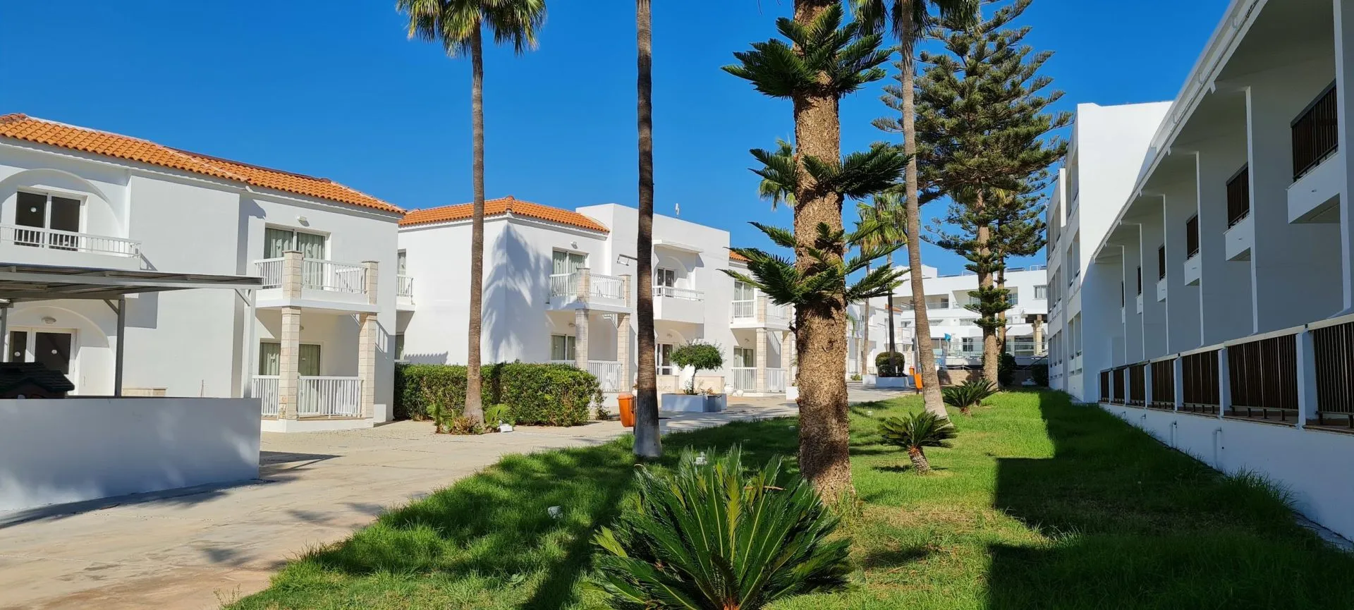 The hotel New Famagusta Hotel is located approx. 500 m from a beach. At the beach, there are sun loungers and sun umbrellas for a fee available. The tourist centre is about 180 m away. The nearest town is AYIA NAPA CENTRE (PARALIMNI CENTER around 7 km, LARNACA around 62 km). The nearest shopping facilities are located approx. 700 km from the hotel, a supermarket can be reached after around 10 m. It is only 150 m from the hotel to the nearest bars and restaurants. For evening dancing you will find a nightclub in a distance of approx. 700 m. For mobility during your holiday, there are a taxi rank (around 300 m away), a bus stop (approx. 20 m away) and a car rental company. The airport (LCA) is approx. 58 km away. Another airport (PFO) is located approx. 170 km away.