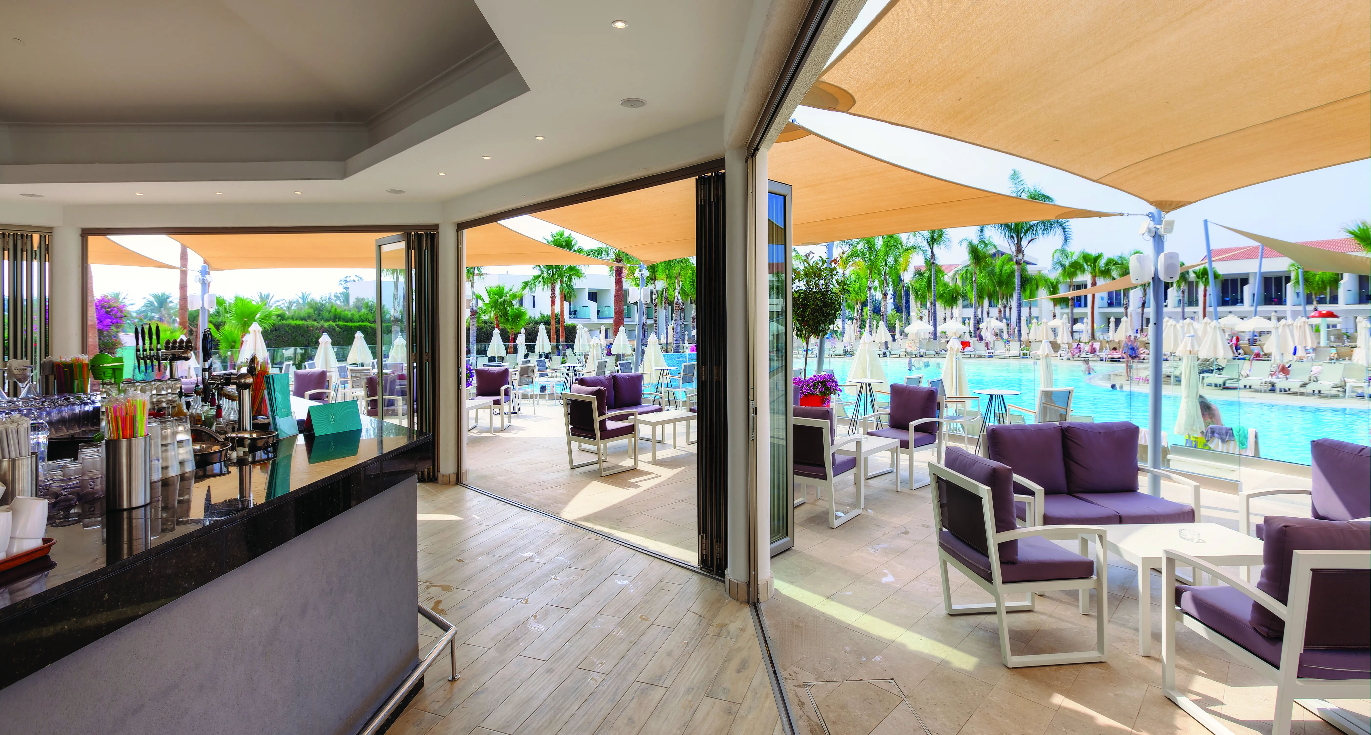 Breakfast; Breakfast buffet; Hot breakfast; All inclusive; All inclusive with alcoholic drinks own brands; All inclusive with alcoholic drinks top brands; Vegetarian meal; Snacks; Vegan meal Things to keep in mind:8 Minimum check-in age Sports:Table tennis; Aerobics; Fitness; Volleyball; Mini golf; Tennis Healthy & Safety (COVID):Cyprus -Precautionary measures against the spread of COVID-19 for Hotel and Tourist Accomm. Managers