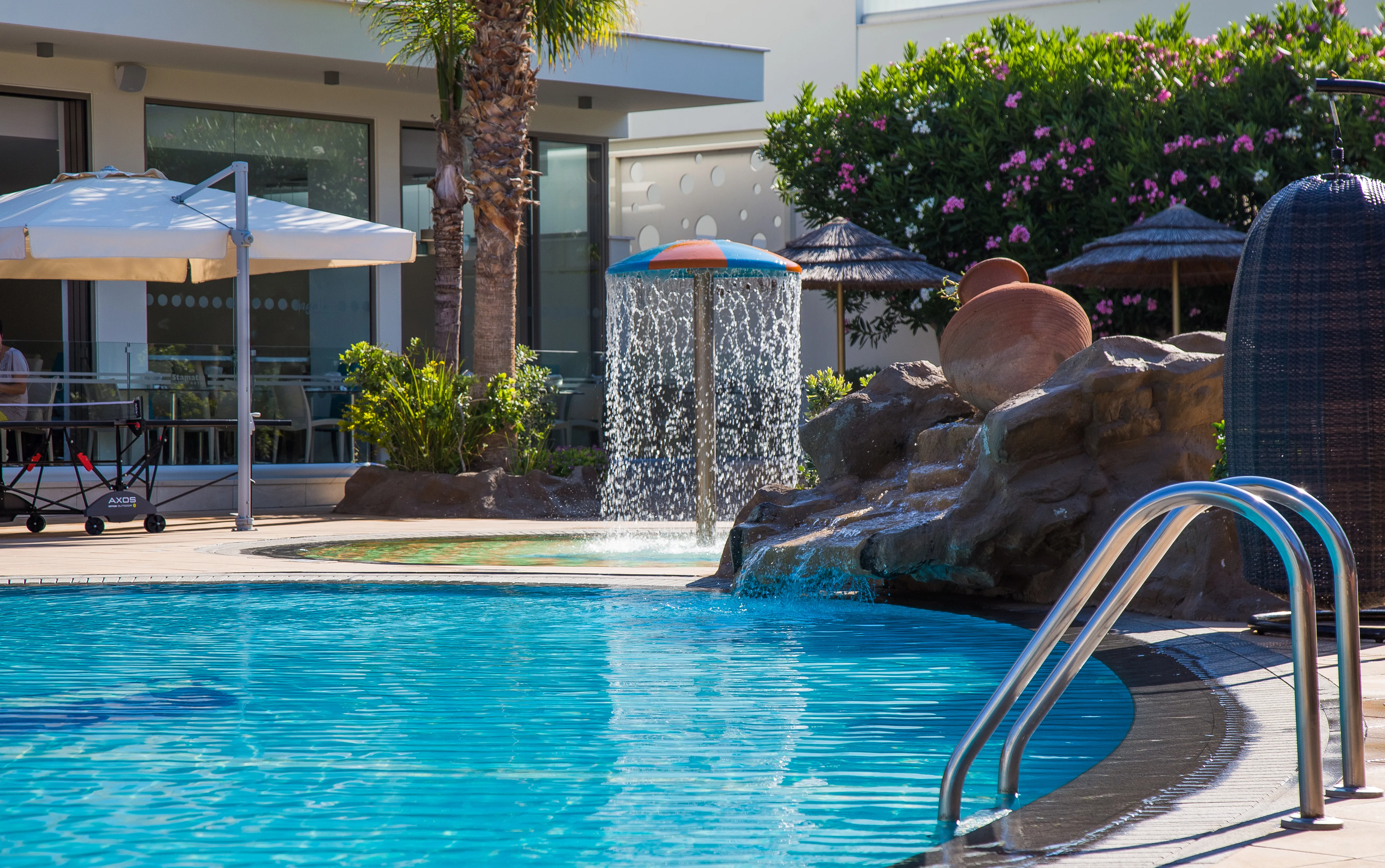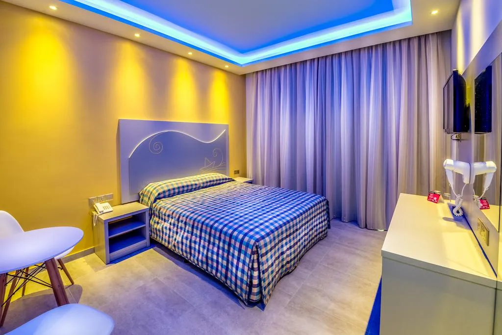This hotel enjoys a prime setting in Ayia Napa, lying just 100 metres away from the fun park and the beach. This exciting setting affords guests close proximity to a host of attractions. The hotel is situated just 120 metres away from Ayia Napa's fishing harbour, where guests will find a number of restaurants and taverns. This charming hotel comprises tastefully-designed guest rooms. The hotel features a number of excellent facilities and services, ensuring comfort and style. The hotel features a delightful restaurant, which offers Mediterranean and international dishes, which are prepared with local ingredients. The bar offers a relaxed setting in which to sit back with a refreshing drink. Location:111 Total number of rooms; 0 Number of floors (main building) Hotel type:hotel Methods of payment:American Express; Diners Club; MasterCard; Visa Distances (in meters):Beach (50) Room facilities (Standard room):1 Number of bedrooms; Disability-friendly bathroom; Hairdryer; Wi-fi; Internet access; Direct dial telephone; Radio; Fridge; Carpeted floors; Centrally regulated air conditioning; Central heating; Safe; Wheelchair-accessible; Smoking rooms; Extra beds on demand (Extra Fee); Cot on demand Facilities:Wheelchair-accessible; Car park; 24-hour reception; Check-in hour; Check-out hour; Wi-fi; Room service; Laundry service; Medical service; Bicycle hire service; Air conditioning in public areas; Hotel safe; Currency exchange facilities; Lift access; Newspaper stand; Supermarket; Shop Catering:Café; Bar; Restaurant; Non-smoking area; Poolside snack bar Business:Conference room Entertainment:1 Outdoor freshwater pool; Sun loungers; Parasols; Children playground; Game room