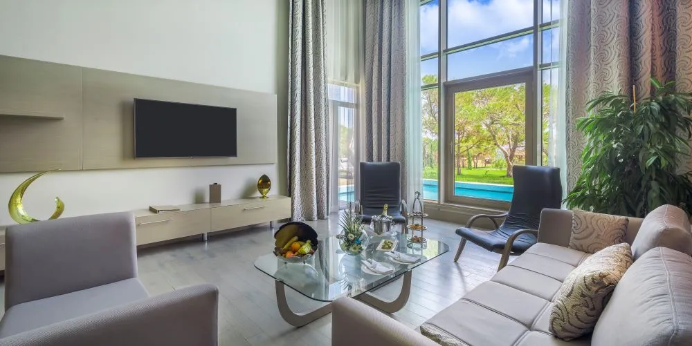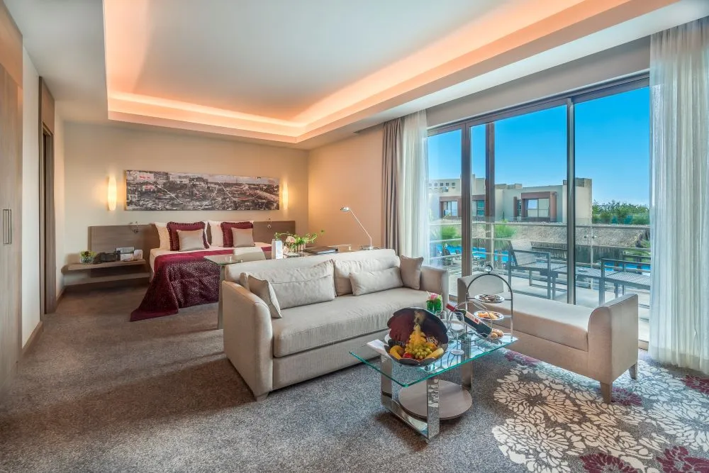 - Executive Suite - au o suprafata de 82 mp, capacitatea de cazare este de maximum 2 adulti+ 2 copii sau 3 adulti. Sunt situate in cladirea principala.