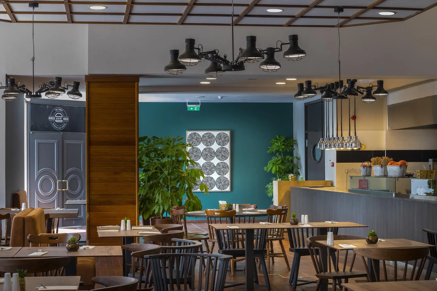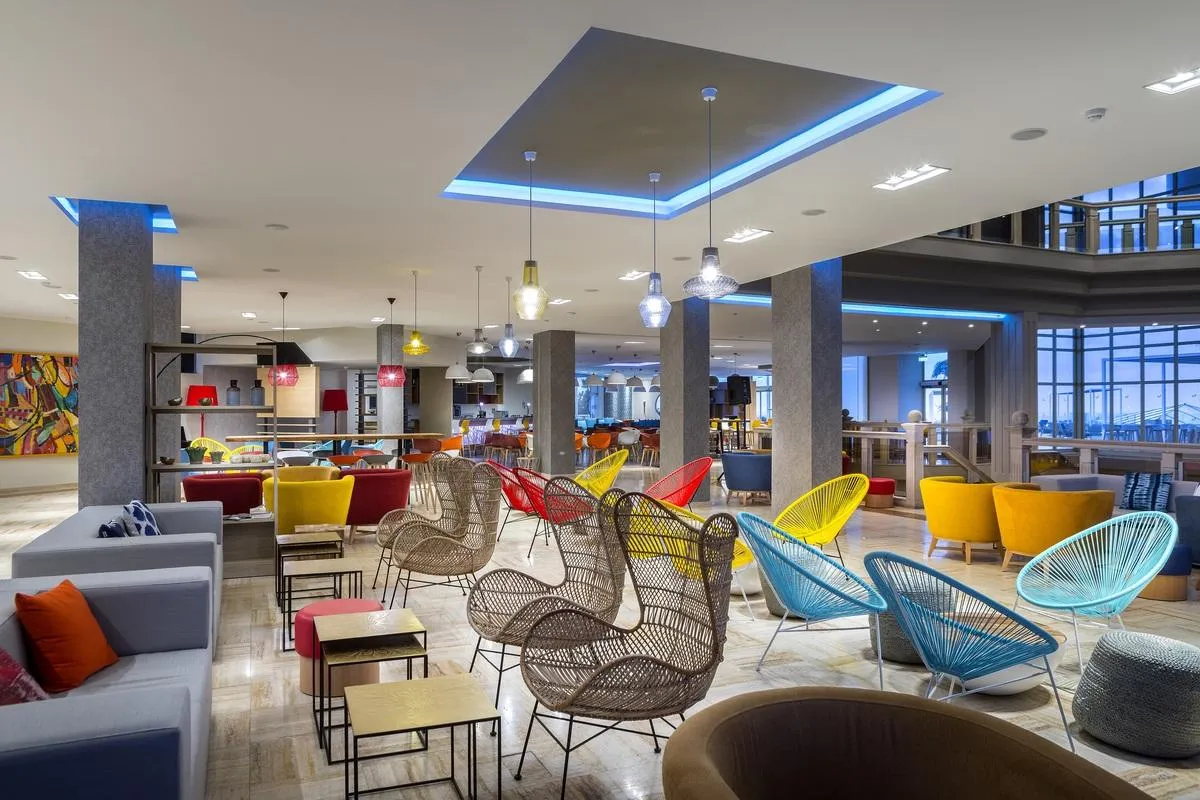 The 5-storey resort has 412 rooms. It is equipped with a 24h reception (check-in from 14:00, check-out until 12:00), a lobby with bar, 3 lifts, an air conditioning, a safe (for free), a shop, a cinema, a parking area (for free) as well as a money changing facility. For the meals, there are 4 restaurants (air-conditioned). You will be warmly welcomed in both the hotel’s bars. WiFi is available for free. Room cleaning and concierge service are free of charge. Room service and laundry / ironing service are available for a fee. Pool: In the outdoor area of the modern hotel you will find 3 fresh water pools with a separate children´s pool. Here, there are sun umbrellas and sun loungers for free available. At the pool bar you can get refreshing beverages (open from 10:30 - 18:30).