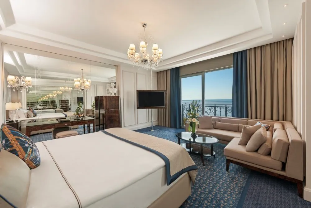 Dotări camere: baie proprie cu dus/cada, TV, telefon, seif, aparat Nespresso, minibar alimentat zilnic cu 2 sticle de apa minerala Abant, internet, aer condiționat, uscator de par, halat de baie si papuci de casa, balcon