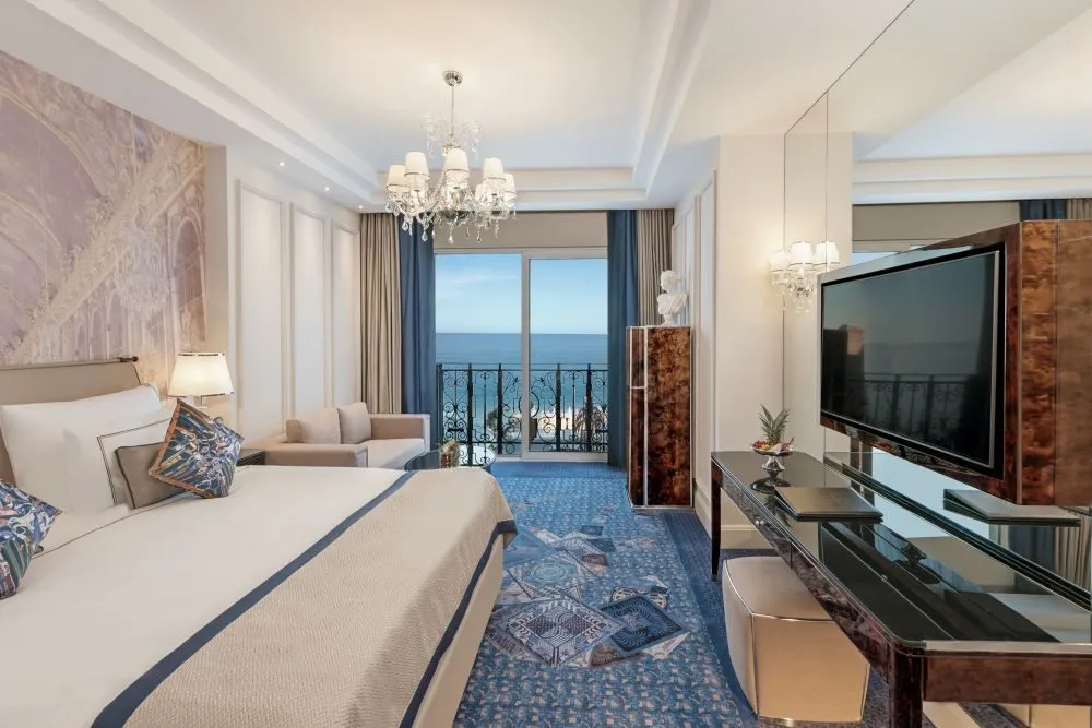 - Deluxe Rooms- au o suprafata intre 45 si 60 mp; capacitatea de cazare este de maximum 2 adulti+ 1 copil; french balcony