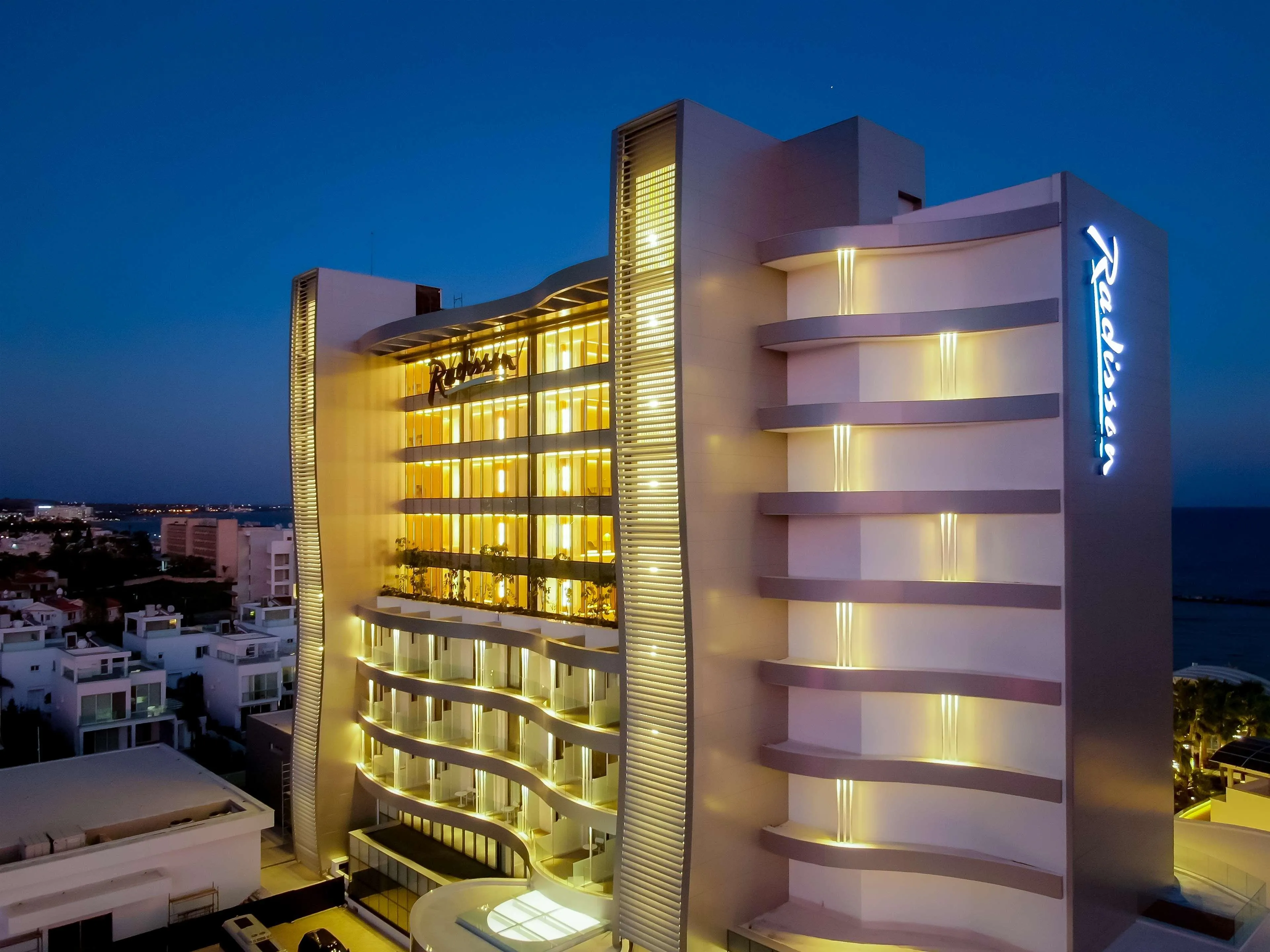 The exclusive Radisson Beach Resort Larnaca is located on the seafront not far from the city center. Providing the excellent standards required by Radisson Hotel Group, It is the ideal Hotel for leisure, relaxation, business or a combination of all three. The hotel offers 202 beautiful, spacious and luxuriously furnished rooms, located on 8 floors, with modern decor leading to a balcony with breathtaking views of the Mediterranean Sea. In the rooms there is a safe, HD smart TV, mini fridge, Wi-Fi, and more luxurious items. Guests can enjoy our three restaurant options for breakfast, lunch and dinner. Both bars offer a variety of drinks and a selection of local and international snacks and delicacies. Relax by the outdoor pool, indoor pool or take advantage of the Gym/Spa facilities. Our conference & events facilities include the impressively large Princess Hall, 2 meeting rooms and a business corner. For younger guests there is a kids' club, a separate freshwater children's pool and an outdoor playground. Location:2020 Year of most recent renovation; 202 Total number of rooms; 8 Number of floors (main building); 8 Number of floors (annexe); 161 Double rooms; 12 Suites Hotel type:hotel Methods of payment:MasterCard; Visa Distances (in meters):Beach (30) Room facilities (Standard room):1 Number of bedrooms; Bathroom; Shower; Hairdryer; Toiletries; Make-up mirror; Internet access; Direct dial telephone; TV; Satellite TV ; Mini fridge; Tea and coffee making facilities ; Ironing set; Centrally regulated air conditioning; Central heating; Safe; Balcony; Wake-up service; Desk; Smoking rooms; Housekeeping Facilities:Wheelchair-accessible; Car park; Electric vehicle charging station; Garage (Extra Fee); 24-hour reception; Check-in hour; Check-out hour; Late Check-out (Extra Fee); Mobile phone coverage; Wi-fi; Car hire; Secure parking; Room service (Extra Fee); Laundry service (Extra Fee); Medical service (Extra Fee); Bicycle hire service (Extra Fee); Multilingual staff; 24-hour security; Bellboy service; Air conditioning in public areas; Smoke detector; Hotel safe; Currency exchange facilities; Lift access; Shop; Sun terrace; Gym; Luggage room; Private beach area; 1 Electric kettle; Towels and bed linen Catering:Bar; Restaurant; Non-smoking area; Highchairs; Poolside snack bar; Banquet hall; Air conditioning in Restaurant Business:Conference room; Meeting room; Projector; Secretarial service; Printer; Photocopier; Business centre; Audio-visual equipment rental; Fax Entertainment:Indoor heated pool; 1 Outdoor freshwater pool; 1 Children’s swimming area; Sun loungers; Parasols; Children playground Health:Massage (Extra Fee); Spa treatments (Extra Fee) Green Programmes - Worldwide:Green Key (FEE)