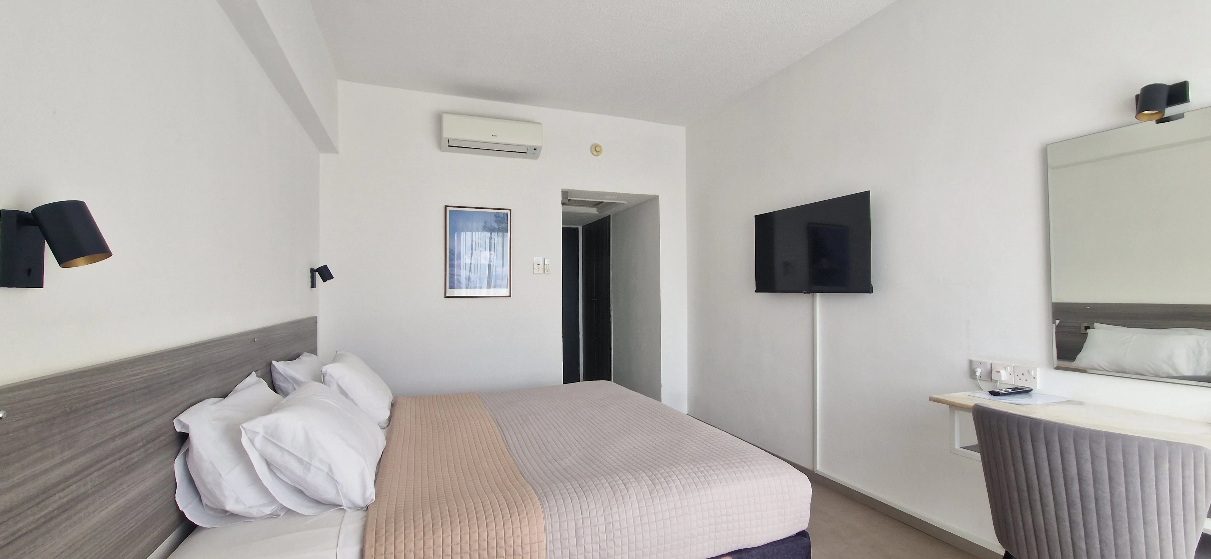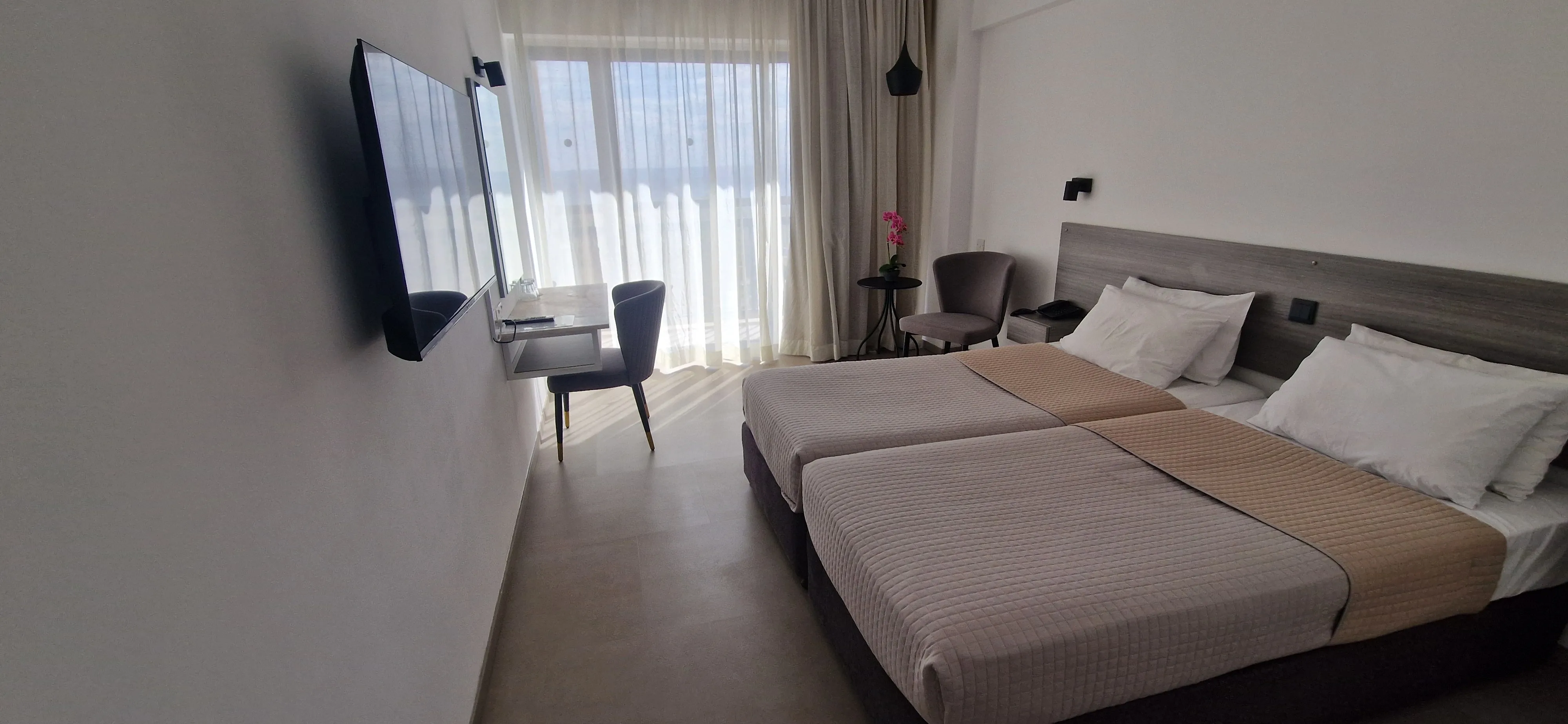 This hotel lies on the south coast of Cyprus in the Greek part of the island just 4.5 km from Limassol. The complex lies just across the road from the local sand and pebble beach and around 1 km from the shopping and entertainment centre of Yermasoyia. The guests are greeted by Greek-style rooms which are equipped with modern amenities. In the well-kept outdoor complex of this hotel, there is a swimming pool with a separate children's pool, a poolside snack bar and a sun terrace where it is possible for guests to kick back and relax beneath a parasol on one of the sun loungers. Sports enthusiasts may participate in the varied entertainment programme or enjoy a workout in the well-equipped gym. Location:130 Total number of rooms; 5 Number of floors (main building); 130 Double rooms Hotel type:hotel Methods of payment:American Express; MasterCard; Visa Distances (in meters):Beach (150) Room facilities (Standard room):Disability-friendly bathroom; Wi-fi; Internet access; TV; Balcony; Smoking rooms; Smoke detector; Housekeeping Facilities:Wheelchair-accessible; Car park; 24-hour reception; Check-in hour; Check-out hour; Wi-fi; Room service; 24-hour security; Air conditioning in public areas; Fireplace; Smoke detector; Hotel safe; Lift access; Garden; Terrace; Gym; Luggage room; Dining area; Towels and bed linen Catering:Café; Bar; Restaurant; Non-smoking area; Highchairs; Air conditioning in Restaurant; Breakfast room Business:Conference room; 3 Meeting room; Business centre Entertainment:2 Outdoor freshwater pool; 1 Children’s swimming area; Sun loungers; TV lounge