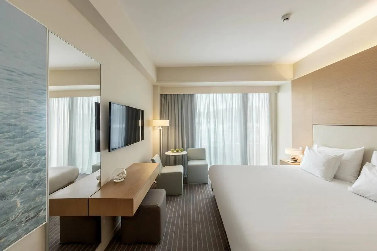 Descriere generală La doar câțiva pași de o plajă cu nisip se găsește hotelul Capo Bay Hotel. Pe plajă sunt disponibile umbrele de soare și șezlonguri la un cost suplimentar. Locul de cazare se află la doar câțiva metri de centrul turistic al stațiunii. Orașul Paralimni este la aprox. 5 km (Ayia Napa cca. 6 m, Nicosia cca. 80 km). Magazinele sunt la aprox. 400 m de hotel, și veți găsi un supermarket la cca. 300 m. La cele mai apropiate baruri și restaurante se poate ajunge într-un timp foarte scurt. O discotecă aflată la aprox. 300 m vă invită la dans. Următoarele atracții pot fi accesate de la hotel: Ayia Napa Monastery (cca. 8 km), Cavo Greko (cca. 2 km), Larnaca (cca. 50 km), Limassol (cca. 75 km) și Waterpark (cca. 10 km). Există posibilitatea de a închiria mașini și motociclete. De asemenea, aveți în apropiere o stație de autobuz (cca. 100 m) și o stație de taxi (direct la hotel) cea ce vă garantează mobilitatea în timpul vacanțelor. Pentru îngrijiri medicale în caz de urgență, există un spital la cca. 5 km distanță. Aeroportul (LCA) se află la aprox. 67 km. Un alt aeroport (PFO) este la cca. 179 km. Facilități Resortul dispune de 5 etaje și peste 225 camere repartizate între o clădire principală și o clădire secundară. Acesta oferă oaspeților săi recepție deschisă 24h (check-in de la 15:00, check out până la 11:00), lobby cu bar, un total de 6 lifturi, aer condiționat, seif (gratuit), minimarket, parcare (gratuită) și birou de schimb valutar. O masă savuroasă va așteapta la unul dintre cele 3 restaurante a hotelului. Accesul la internet WiFi este disponibil gratuit pentru oaspeții hotelului. În plus, hotelul oferă o zonă de conferințe cu un total de 230 de locuri și cu acces la internet. Pentru oaspeții care depind de un scaun cu rotile, hotelul oferă un lift accesibil pentru scaune cu rotile, băi parțial accesibile pentru scaune cu rotile și acces fără bariere. Serviciul de menaj și serviciul de concierge sunt gratuite. Room service, spălătorie și călcat sunt disponibile la un cost suplimentar. Piscină Zona exterioară a modernului hotelul include 2 piscine cu apă dulce precum și o piscină separată pentru copii. Acolo sunt disponibile gratuit șezlonguri și umbrele de soare. La barul de la piscină sunt disponibile băuturi răcoritoare (deschis între orele 10:00 - 18:00). Catering Mic dejun (între orele 07:00 - 10:00) bufet suedez. Demipensiunea include micul dejun și prânzul sau cina (sunt disponibile și meniuri pentru copii). Pensiunea completă include micul dejun, prânzul și cina. Sunt disponibile și meniuri pentru copii. Sport/Leisure Oferte pentru sport și divertisment: Fitness, biliard (posibil contra cost), tenis (posibil contra cost), tenis de masă (posibil contra cost), badminton (posibil contra cost), darts (posibil contra cost) și volei. În plus parcare pentru biciclete (contra cost). Oferte de wellness: Zonă de spa, saună și masaje contra cost. Jacuzzi, baie turcească și hamam posibil contra cost. Divertisment pentru adulți: program de animație cu muzică live. Teren de joacă. Îngrijirea copiilor: program de animație pentru copii (de la 4 - 12 ani), mini club pentru copii (de la 4 - 12 ani) și babysitting (contra cost). Sală de jocuri. Informații suplimentare Pentru anumite facilități sau activități se pot aplica taxe suplimentare. Unele servicii depind de anotimp și de condițiile climatice locale. Limbi de serviciu: engleză, germană, franceză și rusă. Carduri de credit: JCB și card EC. 2 Zimmer mit Verbindungstür Familienzimmer (Blick auf das Inland, Balkon): Dotate cu jacuzzi, ceainic (gratuit), minibar (posibil contra cost), balcon, acces la internet (gratuit), seif (gratuit), TV prin satelit și canale locale precum și aer condiționat reglabil individual. Baie cu cadă. 2 Zimmer mit Verbindungstür Familienzimmer (Seitlicher Meerblick, Balkon): Cameră cu jacuzzi, ceainic (gratuit), minibar (posibil contra cost), balcon, acces la internet (gratuit), seif (gratuit), TV prin satelit și canale locale precum și aer condiționat reglabil individual. Baie cu cadă. 2 Zimmer mit Verbindungstür Familienzimmer (Meerblick, Balkon): Cameră cu jacuzzi, ceainic (gratuit), minibar (posibil contra cost), balcon, acces la internet (gratuit), seif (gratuit), TV prin satelit și canale locale precum și aer condiționat reglabil individual. Baie cu cadă. Klassisch Zimmer (Blick auf das Inland, Balkon): Cameră cu jacuzzi, ceainic (gratuit), minibar (posibil contra cost), balcon, acces la internet (gratuit), seif (gratuit), TV prin satelit și canale locale precum și aer condiționat reglabil individual. Baie cu cadă. Klassisch Zimmer (Seitlicher Meerblick, Balkon): Dotate cu jacuzzi, ceainic (gratuit), minibar (posibil contra cost), balcon, acces la internet (gratuit), seif (gratuit), TV prin satelit și canale locale precum și aer condiționat reglabil individual. Baie cu cadă. Klassisch Zimmer (Meerblick, Balkon): Dotate cu jacuzzi, ceainic (gratuit), minibar (posibil contra cost), balcon, acces la internet (gratuit), seif (gratuit), TV prin satelit și canale locale precum și aer condiționat reglabil individual. Baie cu cadă. Deluxe Zimmer (Gartenblick, Balkon): Cameră cu jacuzzi, ceainic (gratuit), minibar (posibil contra cost), balcon sau terasă, acces la internet (gratuit), seif (gratuit), aparat de cafea cu capsule (gratuit), TV prin satelit și canale locale precum și aer condiționat reglabil individual. Baie cu cadă. Deluxe Zimmer (Seitlicher Meerblick, Balkon): Dotate cu jacuzzi, ceainic (gratuit), minibar (posibil contra cost), balcon, acces la internet (gratuit), seif (gratuit), aparat de cafea cu capsule (gratuit), TV prin satelit și canale locale precum și aer condiționat reglabil individual. Baie cu cadă. Deluxe Zimmer (Pool-Meerblick, Balkon): Cameră cu jacuzzi, ceainic (gratuit), minibar (posibil contra cost), 