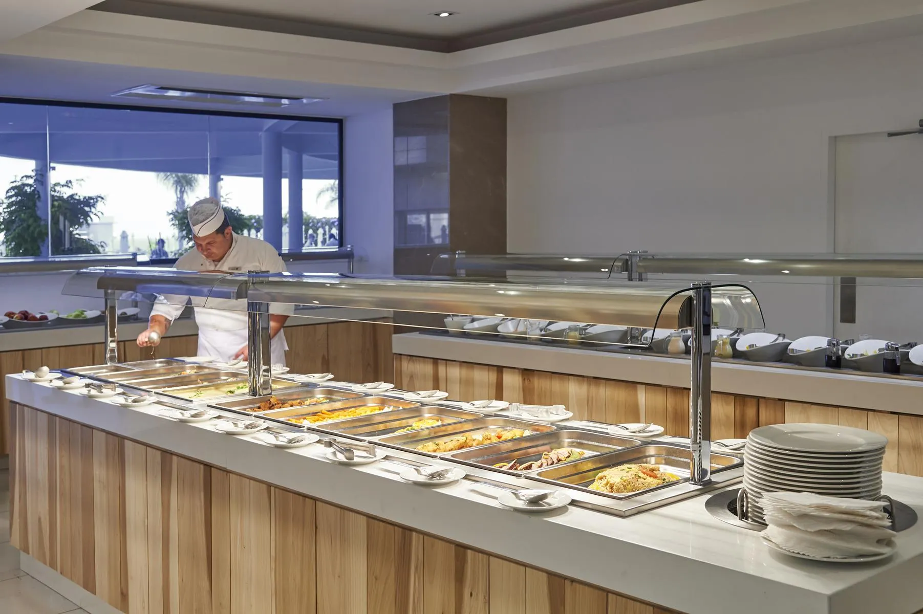 Breakfast (from 07:00 - 10:00) from the buffet. All inclusive: breakfast, lunch and dinner. Breakfast and lunch and dinner only in selected restaurants or bars. Children`s menus are also available. Water at certain times. Soft drinks (10:00 - 23:00), beer (10:00 - 23:00), wine (10:00 - 23:00), cocktails (10:00 - 23:00), national alcoholic drinks (10:00 - 23:00), selected imported spirits (10:00 - 23:00 ), one meal per stay in the a la carte restaurant and free use of safe (with deposit).