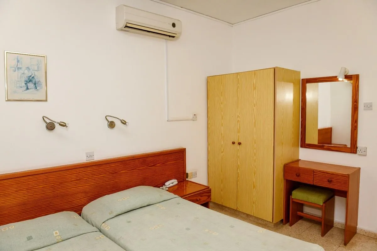 Descriere generală În apropierea unei plaje cu nisip se află hotelul Sweet Memories Hotel Apartments. Pe plajă sunt disponibile șezlonguri și umbrele de soare la un cost suplimentar. Centrul turistic al orașului se află la aprox. 1 km. Orașul Paralimini este la aprox. 6 km (Larnaca cca. 60 km, Nicosia cca. 95 km). Veți găsi un supermarket la cca. 1 km. Cele mai apropiate baruri și restaurante sunt la cca. 500 m distanță. O discotecă aflată la aprox. 2 km vă invită la dans. Următoarele atracții pot fi accesate de la hotel: Cape Greco national Park (cca. 7 km), Ayia Napa Monastery (cca. 8 km) și Profitis Elias Church (cca. 500 m). Hotelul dispune de serviciu de rentacar. De asemenea, aveți în apropiere o stație de autobuz și o stație de taxi (cca. 500 m) cea ce vă garantează mobilitatea în timpul vacanțelor. Pentru îngrijiri medicale în caz de urgență, există un spital la cca. 9 km distanță. Aeroportul (LCA) se află la aprox. 67 km. Un serviciu de transfer (contra cost) face legătura între hotel și aeroport. Un alt aeroport (PFO) este la cca. 179 km. Până la cea mai apropiată plajă există, de asemenea, un serviciu de transfer (contra cost). În plus, o navetă circulă regular spre OSEA BUSS OR TAXI (contra cost). Facilități Hotelul familiar dispune de 5 etaje și peste 65 camere repartizate între o clădire principală și un total de 8 clădiri secundare. Acesta oferă oaspeților săi recepție (check-in de la 14:00, check out până la 12:00), lobby cu bar, lift, aer condiționat, seif (contra cost), minimarket și parcare (gratuită). Pentru a servi masa vă stau la dispoziție un restaurant și un snackbar. Accesul la internet WiFi este disponibil gratuit pentru oaspeții hotelului. Pentru oaspeții cu dizabilități fizice, unitatea de cazare oferă un lift accesibil pentru scaune cu rotile și acces fără bariere. Serviciul de menaj este gratuit. Piscină Zona exterioară a modernului hotelul include o piscină cu apă dulce precum și o piscină pentru copii. La piscină sunt disponibile gratuit șezlonguri și umbrele de soare. La barul de la piscină sunt disponibile băuturi răcoritoare (deschis între orele 10:00 - 17:00). Catering Mic dejun (între orele 08:00 - 10:00). Demipensiunea include prânzul sau cina. Sport/Leisure Oferte pentru sport și divertisment: Biliard (contra cost) și darts (contra cost). La numai 210 m de hotel se află un teren de golf. Copiii vor găsi un loc de joacă în exteriorul hotelului. Informații suplimentare Pentru anumite facilități sau activități se pot aplica taxe suplimentare. Unele servicii depind de anotimp și de condițiile climatice locale. Limbi de serviciu: engleză, rusă și greacă. Carduri de credit: Euro/MasterCard. 1 Schlafzimmer Standard Apartment (Balkon oder Terrasse): Camerele în stil rustic cu living sunt echipate cu pat twin sau pat single, pat suplimentar, pat pentru bebeluși (gratuit), pardoseală cu gresie, chicinetă, piscină comună, ceainic (gratuit), balcon sau terasă, acces la internet (gratuit), seif (contra cost), TV și canale locale precum și aer condiționat reglabil individual (din aprilie până în. Baie cu cadă. Prosoapele se schimbă de 2 ori pe săptămână, lenjeria de pat săptămânal. Dimensiune: 38 m². 1 Schlafzimmer Superior Apartment (Balkon oder Terrasse): Camerele moderne cu living sunt echipate cu pat twin sau pat single, pat suplimentar, pat pentru bebeluși (gratuit), pardoseală cu gresie, chicinetă, piscină comună, ceainic (gratuit), balcon sau terasă, acces la internet (gratuit), seif (contra cost), TV și canale locale precum și aer condiționat reglabil individual (din aprilie până în. Baie cu duș. Prosoapele se schimbă de 2 ori pe săptămână, lenjeria de pat săptămânal. Dimensiune: 44 m². Standard Studio (Balkon oder Terrasse): Camerele în stil rustic sunt echipate cu pat twin sau pat single, pat suplimentar, pardoseală cu gresie, chicinetă, piscină comună, ceainic (gratuit), balcon sau terasă, acces la internet (gratuit), seif (contra cost), TV și canale locale precum și aer condiționat reglabil individual (din aprilie până în. Baie cu cadă. Prosoapele se schimbă de 2 ori pe săptămână, lenjeria de pat săptămânal. Dimensiune: 32 m². Superior Studio (Balkon oder Terrasse): Camerele moderne sunt echipate cu pat twin sau pat single, pat suplimentar, pat pentru bebeluși (gratuit), pardoseală cu gresie, chicinetă, piscină comună, ceainic (gratuit), balcon sau terasă, acces la internet (gratuit), seif (contra cost), TV și canale locale precum și aer condiționat reglabil individual (din aprilie până în. Baie cu duș. Prosoapele se schimbă de 2 ori pe săptămână, lenjeria de pat săptămânal. Dimensiune: 35 m².