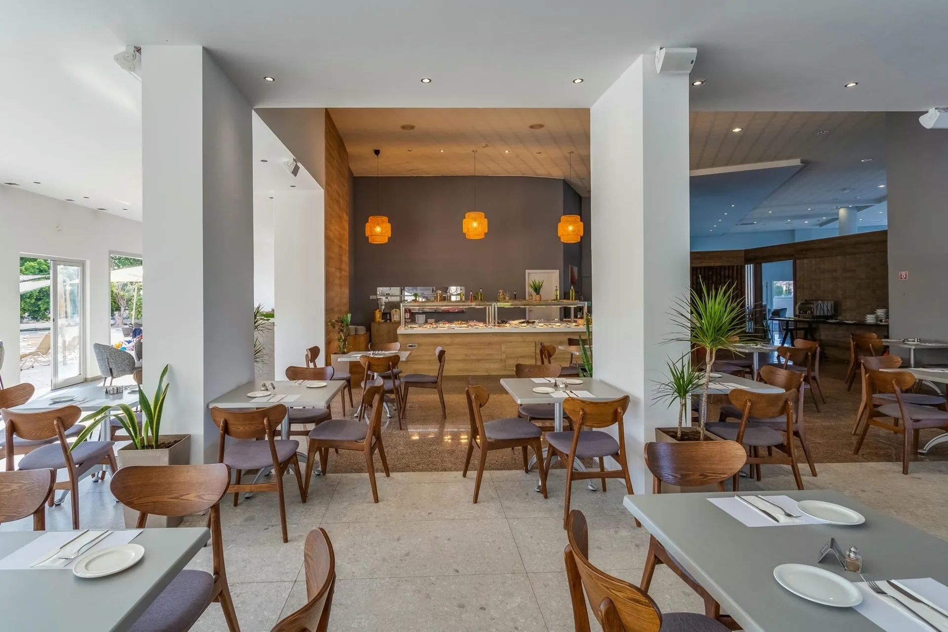 About 500 m from a beach lies the 3 star accommodation Toxotis Hotel. The city centre is around 6 km away. A supermarket is around 6 km away. The hotel is equipped with a 24h reception, a lobby, Wi-Fi, parking spaces as well as a TV lounge with satellite TV. At the pool, deck chairs and parasols are available for free. There is also an ironing service. If necessary, you can contact the medical centre (for a fee). In your hotel, a lot of focus is placed on sustainability. This includes among others the provision of soap and shampoo dispensers. Due to its barrier-free facilities , such as barrier-free entrances, the hotel is also suitable for wheelchair users. Catering Breakfast is offered from the buffet. Lunch and dinner are also served from the buffet. Your physical well-being is catered for by the pool bar. Distances
