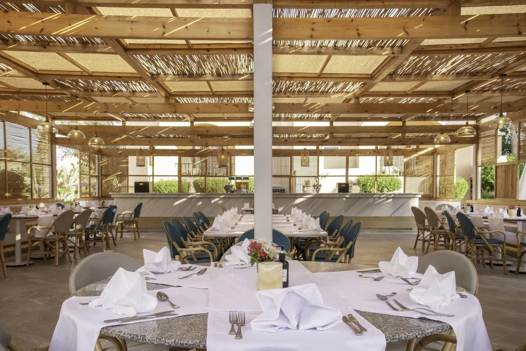 Descriere generală Hotelul Three Corners Rihana Resort este situat în apropierea unei plaje private cu nisip. Pe plajă sunt disponibile gratuit șezlonguri și umbrele de soare. Orașul Hurghada Downtown este la aprox. 25 km (Cairo cca. 500 km). Magazinele sunt la aprox. 300 m de hotel, și veți găsi un supermarket la cca. 200 m. Cele mai apropiate baruri și restaurante sunt la cca. 1 km distanță. O discotecă aflată la aprox. 1 km vă invită la dans. Un cinematograf este situat în apropierea hotelului. Locul de cazare are la dispoziție mașini de închiriat. De asemenea, aveți în apropiere o stație de autobuz (cca. 200 m) și o stație de taxi (direct la hotel) cea ce vă garantează mobilitatea în oraș. Pentru îngrijiri medicale în caz de urgență, există un spital la cca. 300 m distanță. Aeroportul (HRG) se află la aprox. 40 km. Un serviciu de transfer (contra cost) face legătura între hotel și aeroport. Un alt aeroport (RMF) este la cca. 250 km. Facilități Resortul, care a fost renovat în 2022, dispune de 3 etaje și peste 434 camere. Acesta oferă oaspeților săi recepție deschisă 24h (check-in de la 14:00, check out până la 12:00), lobby, aer condiționat, seif (gratuit), minimarket, alte magazine, cinematograf, parcare (gratuită) și birou de schimb valutar. Pentru a servi masa vă stau la dispoziție 4 restaurante cu aer condiționat și un snackbar. Accesul la internet WiFi este disponibil gratuit pentru oaspeții hotelului. În plus, hotelul oferă o zonă de conferințe cu acces la internet. Pentru oaspeții care depind de un scaun cu rotile, hotelul oferă băi parțial accesibile pentru scaune cu rotile și acces fără bariere. Serviciul de menaj este gratuit. Room service, spălătorie, călcat și serviciul medical sunt disponibile la un cost suplimentar. Piscină În grădinile acestui hotelul există 3 piscine cu apă dulce precum și o piscină separată pentru copii și un tobogan de apă. Acolo sunt disponibile gratuit șezlonguri și umbrele de soare. La barul de la piscină sunt disponibile băuturi răcoritoare (deschis între orele 10:00 - 18:00). Catering Mic dejun (între orele 07:00 - 10:00) bufet suedez. All Inclusive: micul dejun, prânzul și cina. Micul dejun, prânzul și cina pot fi servite numai în anumite restaurante. Cocktailuri. Băuturi răcoritoare (10:00 - 00:00), aperitive (16:00 - 17:00), bere (10:00 - 00:00), vin (10:00 - 00:00) și băuturi alcoolice naționale (10:00 - 00:00). Sport/Leisure Oferte pentru sport și divertisment: Aerobic, tenis (posibil contra cost, la cca. 100 m distanță), volei pe plajă, biliard (contra cost), darts (gratuit), tenis de masă (gratuit), yoga și fitness. La cca. 1 km de hotel, sunt oferite sporturi nautice precum jet ski și plimbări cu barca cu motor (unele de către furnizori locali). La cca. 2 km de hotel este un teren de golf. Există serviciu de închiriere de biciclete. În plus parcare pentru biciclete (contra cost). Oferte de wellness: Zonă de spa, saună, jacuzzi și masaje contra cost. Divertisment pentru adulți: program de animație cu spectacole de seară și muzică live. Pentru distracția celor mici există un loc de joacă. Îngrijirea copiilor: program de animație pentru copii (de la 4 - 11 ani) și mini club pentru copii (de la 4 - 11 ani). Informații suplimentare Pentru anumite facilități sau activități se pot aplica taxe suplimentare. Unele servicii depind de anotimp și de condițiile climatice locale. Limbi de serviciu: engleză, germană, franceză, olandeză și arabă. Carduri de credit: Visa, American Express și Euro/MasterCard. Doppel Comfort Zimmer: Dotate cu pat dublu sau pat twin, pat pentru bebeluși (gratuit), pardoseală cu gresie, încălzire reglabilă individual, ceainic (gratuit), minibar (contra cost), balcon sau terasă, acces la internet (contra cost), seif (gratuit) și TV cu ecran plat prin satelit precum și aer condiționat reglabil individual. Baie cu duș. Dimensiune: 21 m². Einzelbelegung Comfort Zimmer: Dotate cu pat dublu sau pat twin, pat pentru bebeluși (gratuit), pardoseală cu gresie, încălzire reglabilă individual, ceainic (gratuit), minibar (contra cost), balcon sau terasă, acces la internet (contra cost), seif (gratuit) și TV cu ecran plat prin satelit precum și aer condiționat reglabil individual. Baie cu duș. Dimensiune: 21 m². Doppel Grand Zimmer: Dotate cu pat dublu sau pat twin, pat pentru bebeluși (gratuit), pardoseală cu gresie, încălzire reglabilă individual, ceainic (gratuit), minibar (contra cost), balcon sau terasă, acces la internet (contra cost), seif (gratuit) și TV cu ecran plat prin satelit precum și aer condiționat reglabil individual. Baie cu duș. Dimensiune: 35 m². Doppel Premium Zimmer: Dotate cu pat dublu sau pat twin, pat pentru bebeluși (gratuit), pardoseală cu gresie, încălzire reglabilă individual, ceainic (gratuit), minibar (contra cost), balcon sau terasă, acces la internet (contra cost), seif (gratuit) și TV cu ecran plat prin satelit precum și aer condiționat reglabil individual. Baie cu duș. Dimensiune: 28 m². Einzelbelegung Premium Zimmer: Dotate cu pat dublu sau pat twin, pat pentru bebeluși (gratuit), pardoseală cu gresie, încălzire reglabilă individual, ceainic (gratuit), minibar (contra cost), balcon sau terasă, acces la internet (contra cost), seif (gratuit) și TV cu ecran plat prin satelit precum și aer condiționat reglabil individual. Baie cu duș. Dimensiune: 28 m².