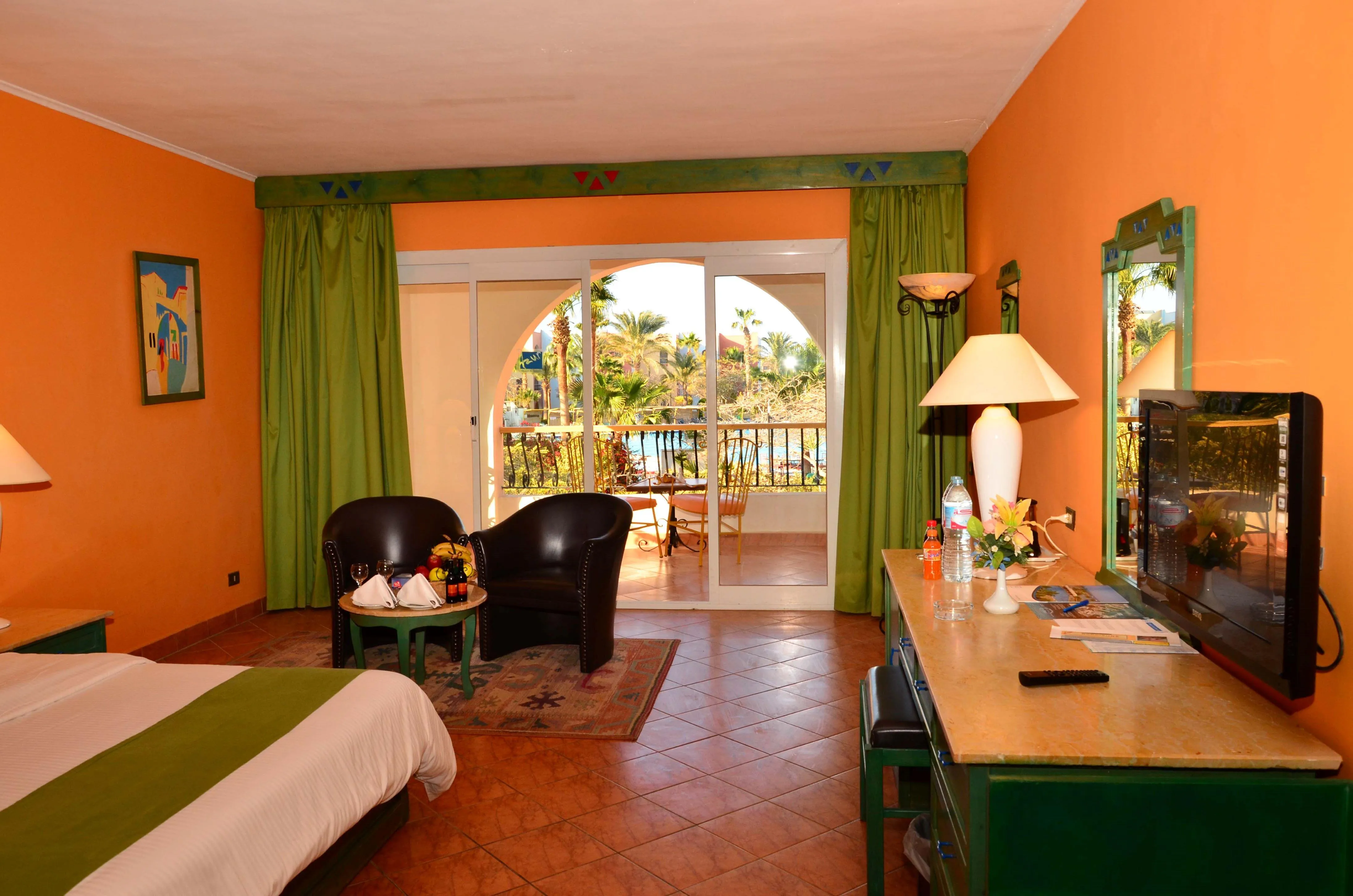 Arabia is a family friendly 4 stars resort location only 3 KM from Hurghada's city center and 8 KM from Hurghada airport, offering exceptional pool, sea or garden view and a promenade marina where you can capture exceptional sunsets and unwind with family and friends, The resort has its own house reef that is just minutes away from the beach and it is rich with exotic fish and fauna for you to discover.
