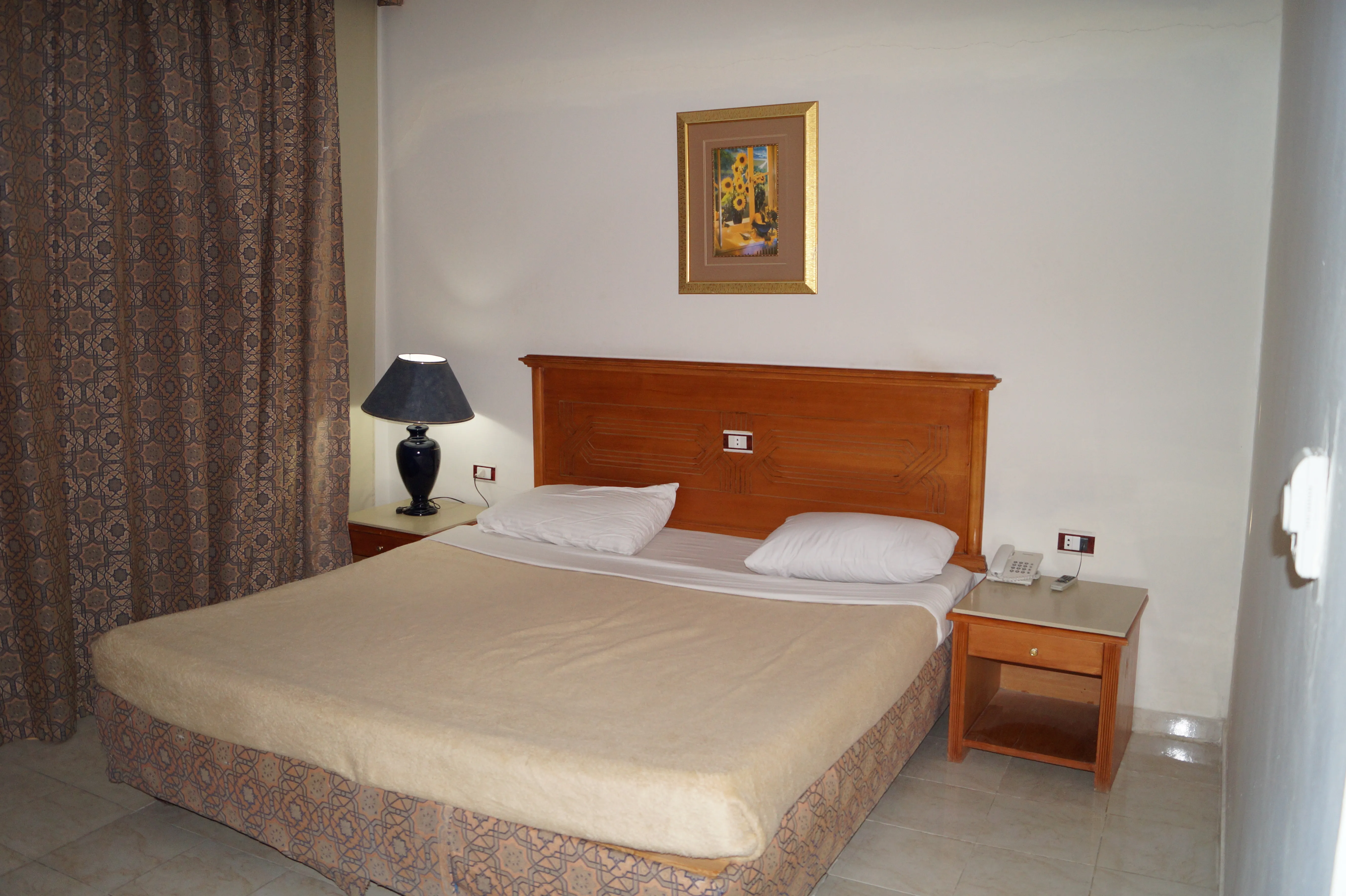 The hotel is located 5 minutes' walk from the beach on Safaga Road in Hurghada, Al Bahr al Ahmar (Red Sea) and the frontier governorates, and approximately 8 km from the airport in Hurghada. Overlooking a dancing fountain, gardens and 3 swimming pools, this hotel on the Red Sea coast has a family atmosphere and features a water park. The hotel consists of 400 guest rooms in 3 round buildings, each with 2 floors. The hotel is surrounded by souvenir shops and has a cable car facility, a health club and entertainment activities. Facilities on offer to guests include a lobby with 24-hour reception and check-out services, a hotel safe, currency exchange facilities, a hairdressing salon and kids' club. The café, bar, disco and restaurant provide dining and entertainment, whilst guests may additionally take advantage of the room and laundry services. Those arriving by car may leave their vehicle in the car park. Each guest room features amenities such as individually regulated air conditioning, satellite/cable TV, a hairdryer and a minibar. Rooms on the first floor have a terrace, while rooms at second floor have a balcony. The en suite bathrooms are fitted with a shower and bathtub. Non-smoking rooms are available. The hotel features an outdoor swimming pool with a children's swimming area and sun loungers and parasols laid out for use. Active guests may make use of the gym. Guests will find sun loungers and parasols on the nearby sandy beach. Location:2008 Year of most recent renovation; 400 Total number of rooms; 2 Number of floors (main building); 235 Double rooms Hotel type:hotel Methods of payment:MasterCard; Visa Distances (in meters):City centre (1700); Beach (800) Room facilities (Standard room):Wi-fi Facilities:Wheelchair-accessible; Car park; 24-hour reception; Check-in hour; Check-out hour; Wired Internet (Extra Fee); Wi-fi; Room service; Laundry service (Extra Fee); Medical service; Air conditioning in public areas; Supermarket; Shop; Garden Catering:Café; Bar; Restaurant; Non-smoking area; Highchairs; Poolside snack bar; Air conditioning in Restaurant Entertainment:1 Children’s swimming area; Sun loungers; Parasols; Children playground; Kids’ club; Entertainment programme for adults; Entertainment programme for children; Nightclub Health:Sauna (Extra Fee); Steam bath (Extra Fee); Spa treatments (Extra Fee)
