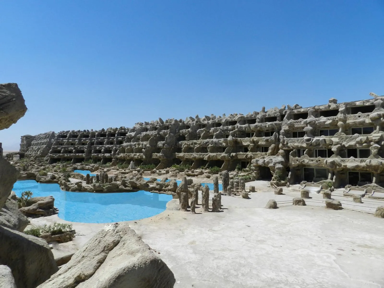 Descriere generală Hotelul Caves Beach Resort Hurghada (doar pentru adulți), care este deosebit de popular printre cei aflați în luna de miere, este situat in Hurghada North, direct pe o plajă privată cu nisip/pietriș. Pe plajă sunt disponibile gratuit șezlonguri și umbrele de soare. Centrul turistic al stațiunii se află la aprox. 10 km. Orașul Hurghada este la aprox. 15 km (El Gouna cca. 8 km). Diverse magazine se află la aprox. 10 km de hotel. De asemenea, cele mai apropiate baruri și restaurante sunt la cca. 10 km. O discotecă aflată la aprox. 10 km vă invită la dans. Aveți la dispoziție o stație de autobuz (cca. 40 m) și o stație de taxi in apropierea hotelul cea ce vă vă oferă mobilitate în stațiune. Pentru îngrijiri medicale în caz de urgență, există un spital la cca. 10 km distanță. Aeroportul (HRG) se află la aprox. 15 km. Un serviciu de transfer (contra cost) face legătura între hotel și aeroport. Un alt aeroport (RMF) este la cca. 230 km. Facilități Hotelul din peşteră dispune de 4 etaje și peste 383 camere repartizate între o clădire principală și de 3 clădiri secundare. Acesta oferă oaspeților săi recepție deschisă 24h (check-in de la 14:00, check out până la 12:00), lobby cu bar, aer condiționat, seif (gratuit), minimarket, alte magazine, parcare (gratuită) și birou de schimb valutar. Pentru a satisface apetitul aveți la dispoziție în hotel 3 restaurante cu aer condiționat. Accesul la internet WiFi este disponibil gratuit pentru oaspeții hotelului. Pentru evenimente de afaceri, hotelul oferă o zonă de conferințe cu acces la internet. Pentru oaspeții cu dizabilități fizice, unitatea de cazare oferă băi parțial accesibile pentru scaune cu rotile și acces fără bariere. Serviciul de menaj, călcat și serviciul de concierge sunt gratuite. Room service, spălătorie și serviciul medical sunt disponibile la un cost suplimentar. Piscină În grădinile acestui hotelul există 3 piscine cu apă dulce. Acolo sunt disponibile gratuit șezlonguri și umbrele de soare. Un bar lângă piscină oferă oaspeților băuturi răcoritoare (deschis între orele 10:00 - 23:00). Catering Mic dejun (între orele 07:00 - 10:00) bufet suedez. All Inclusive: micul dejun, prânzul și cina. Micul dejun, prânzul și cina pot fi servite numai în anumite restaurante. Băutură de bun venit, mic dejun târziu (între orele 10:30 - 12:00), băuturi răcoritoare (10:00 - 23:00), cafea și ceai (15:30 - 17:00), aperitive (13:00 - 17:00), bere (10:00 - 23:00), vin (10:00 - 23:00), băuturi alcoolice naționale (10:00 - 23:00) și utilizarea gratuită a seifului (în baza unei garanții). Este posibil check-in mai devreme și check-out mai târziu (în funcție de disponibilitate). Sport/Leisure Oferte pentru sport și divertisment: Tenis de masă (gratuit), volei pe plajă, aerobic, biliard (gratuit) și fitness. La cca. 50 m de hotel, sunt oferite sporturi nautice (unele de către furnizori locali). Oferte de wellness: Zonă de spa, saună, jacuzzi, baie turcească și masaje contra cost. Divertisment pentru adulți: program de animație cu spectacole de seară. Informații suplimentare Pentru anumite facilități sau activități se pot aplica taxe suplimentare. Unele servicii depind de anotimp și de condițiile climatice locale. Limbi de serviciu: engleză, germană, rusă și arabă. Carduri de credit: Visa și Euro/MasterCard. Doppel Deluxe Zimmer (Poolblick): Camerele primitoare sunt echipate cu pat dublu sau pat single, încălzire reglabilă individual, minibar (contra cost) și seif (gratuit). Doppel Deluxe Zimmer (Meerblick): Camerele primitoare sunt echipate cu pat king-size, pat dublu sau pat single, pardoseală cu gresie, încălzire reglabilă individual, ceainic (gratuit), minibar (contra cost), balcon sau terasă, acces la internet (contra cost), seif (gratuit) și TV prin satelit precum și aer condiționat reglabil individual (din aprilie până în octombrie). Prosoapele se schimbă zilnic. Dimensiune: 50 m². Einzelbelegung Deluxe Zimmer (Meerblick): Camerele primitoare sunt echipate cu pat king-size, pat dublu sau pat single, pardoseală cu gresie, încălzire reglabilă individual, ceainic (gratuit), minibar (contra cost), acces la internet (contra cost), seif (gratuit) și TV prin satelit precum și aer condiționat reglabil individual (din aprilie până în octombrie). Prosoapele se schimbă zilnic. Dimensiune: 50 m². Einzel Deluxe Zimmer (Poolblick): Camerele primitoare sunt echipate cu pat dublu sau pat single și încălzire reglabilă individual. Premium Zimmer (Poolblick): Camerele primitoare sunt echipate cu pat dublu sau pat single și încălzire reglabilă individual. Einzelbelegung Premium Zimmer (Poolblick): Camerele primitoare sunt echipate cu pat dublu sau pat single și încălzire reglabilă individual. Doppel Standard Zimmer (Promotion): Camerele primitoare sunt echipate cu pat dublu sau pat single și încălzire reglabilă individual. Doppel Standard Zimmer (SwimUp-Pool Terrasse): Camerele primitoare sunt echipate cu pat king-size, pat dublu, pat twin sau pat single, pardoseală cu gresie, piscină comună, încălzire reglabilă individual, ceainic (gratuit), minibar (contra cost), acces la internet (contra cost), seif (gratuit) și TV prin satelit precum și aer condiționat reglabil individual (din aprilie până în octombrie). Prosoapele se schimbă zilnic. Dimensiune: 60 m². Doppel Standard Zimmer (Poolblick): Camerele primitoare sunt echipate cu pat king-size, pat dublu, pat twin sau pat single, pardoseală cu gresie, încălzire reglabilă individual, ceainic (gratuit), minibar (contra cost), balcon sau terasă, acces la internet (contra cost), seif (gratuit) și TV prin satelit precum și aer condiționat reglabil individual (din aprilie până în octombrie). Prosoapele se schimbă zilnic. Dimensiune: 40 m². Doppel Standard Zimmer (Meerblick): Camerele primitoare sunt echip