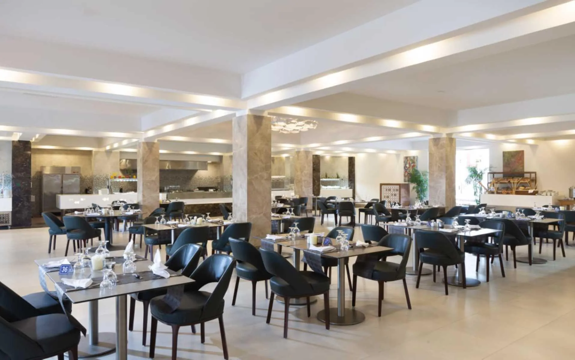 The 2-storey resort has 547 rooms, and spread over one main building and 4 adjoining buildings. It is equipped with a 24h reception (check-in from 14:00, check-out until 12:00), a lobby with bar, an air conditioning, a coiffeur, a mini market, various other shops, a parking area (for free) as well as a money changing facility. For the meals, there are 4 restaurants (air-conditioned) and a snack bar. In a total 7 bars, you can relax in good company. WiFi is available for free. Room cleaning is free of charge. Laundry service and medical service are available for a fee. Pool: In the outdoor area of the hotel you will find 7 fresh water pools with a separate children´s pool. Here, there are sun umbrellas and sun loungers for free available. At the pool bar you can get refreshing beverages (open from 10:00 - 17:00).
