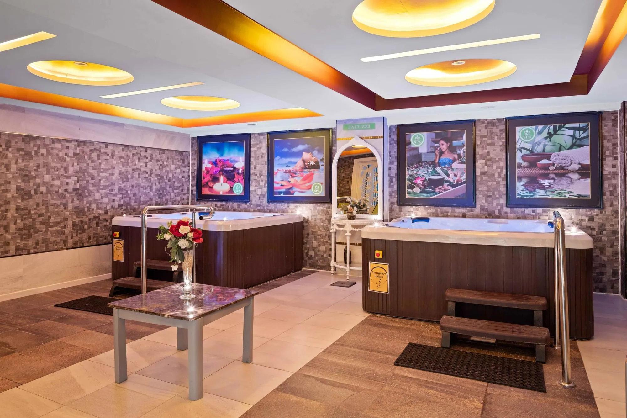 Centru SPA: masaje, jacuzzi, saună, baie cu aburi, baie turcească, hammam marocan, salon de înfrumusețare, coafor, sală de fitness, aerobic, aqua-gym, polo pe apă, jocuri video, biliard, tenis de masă, darts, boccia, mini-golf, teren de mini-fotbal, teren de volei, teren de tenis, echitație, program de animație, sporturi nautice, centru de diving.