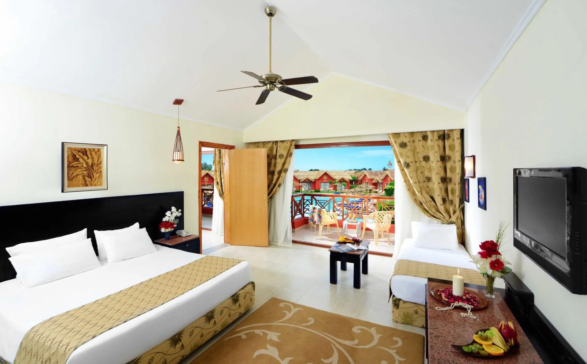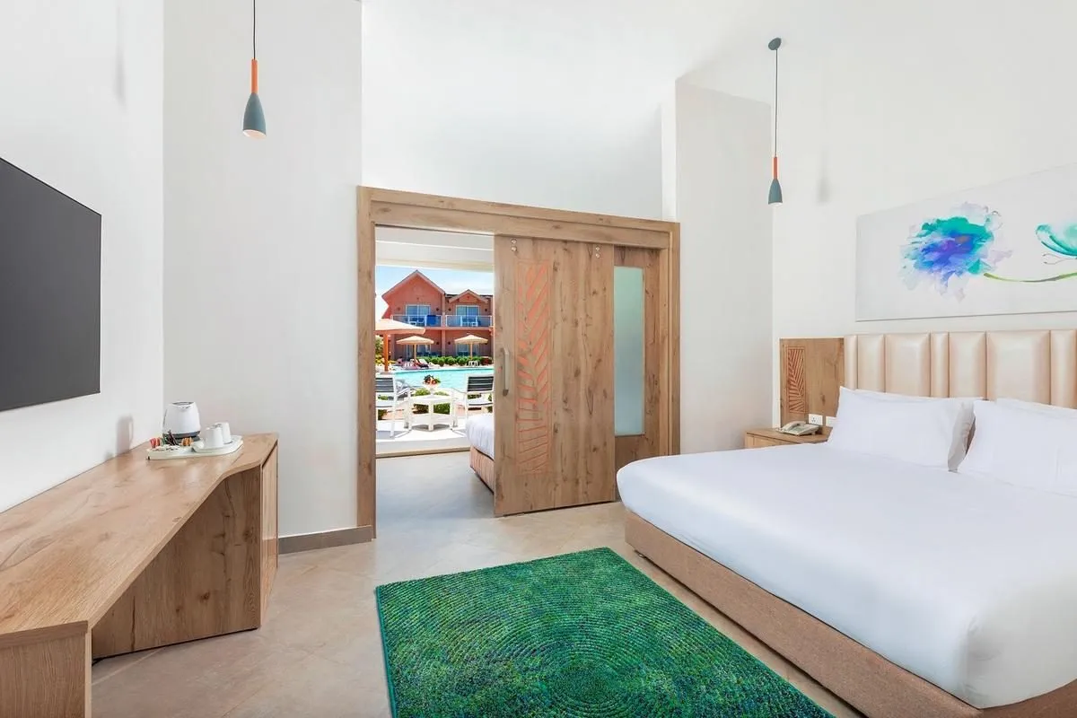 Descriere generală Hotelul Jungle Aqua Park by Neverland este situat la cca. 1 km de o plajă privată cu nisip/de pietre. Pe plajă sunt disponibile gratuit șezlonguri și umbrele de soare. Orașul Downtown este la aprox. 18 km. Puteți face cumpărături în diverse magazine și într-un supermarket aflat la cca. 2 km distanță. De asemenea, cele mai apropiate baruri și restaurante sunt la cca. 2 km. Aveți la dispoziție o stație de autobuz (cca. 300 m) cea ce vă garantează mobilitatea în vacanță. Pentru îngrijiri medicale în caz de urgență, există un spital la cca. 20 km distanță. Aeroportul (HRG) se află la aprox. 6 km. Un serviciu de transfer (contra cost) face legătura între hotel și aeroport. Un alt aeroport (RMF) este la cca. 215 km. Până la cea mai apropiată plajă există, de asemenea, un serviciu de transfer la fiecare 2 ore (graduit). Facilități Resortul, care a fost renovat parțial în 2020, dispune de 2 etaje și peste 1170 camere. Hotelul are recepție deschisă 24h (check-in de la 14:00, check out până la 12:00), lobby cu bar, aer condiționat, minimarket, alte magazine, parcare (gratuită) și birou de schimb valutar. Pentru a servi masa aveți la dispoziție 6 restaurante cu aer condiționat și un snackbar. Accesul la internet WiFi este disponibil gratuit pentru oaspeții hotelului. Pentru evenimente de afaceri, hotelul oferă o zonă de conferințe. Pentru oaspeții cu dizabilități fizice, unitatea de cazare oferă acces fără bariere. Serviciul de menaj este gratuit. Room service, spălătorie, călcat și serviciul medical sunt disponibile la un cost suplimentar. Piscină În grădinile acestui hotelul cu parc acvatic și tobogan de apă există 32 piscine cu apă dulce precum și o piscină separată pentru copii. La piscine sunt disponibile gratuit șezlonguri și umbrele de soare. La barul piscinei va puteți bucura de o băutura răcoritoare (deschis între orele 10:00 - 17:00). Catering Mic dejun (între orele 07:00 - 10:00) bufet suedez. All Inclusive: micul dejun, prânzul și cina. Micul dejun, prânzul și cina pot fi servite numai în anumite restaurante. Bere, vin și cocktailuri. Băutură de bun venit, mic dejun târziu (între orele 10:00 - 11:00), băuturi răcoritoare (00:00 - 00:00), cafea și ceai (15:00 - 17:00), aperitive (12:00 - 16:00), băuturi alcoolice naționale (10:00 - 00:00) și gustări la miezul nopții (22:00 - 00:00). Sport/Leisure Oferte pentru sport și divertisment: Biliard (contra cost), fitness, tenis (contra cost), volei pe plajă, aerobic, darts (gratuit) și fotbal. La cca. 1 km de hotel, sunt oferite sporturi nautice (unele de către furnizori locali). Oferte de wellness: Zonă de spa, saună, jacuzzi, baie turcească, hamam și masaje contra cost. Divertisment pentru adulți: spectacole de seară și muzică live. Teren de joacă. Îngrijirea copiilor: program de animație pentru copii (de la 4 - 12 ani) și mini club pentru copii (de la 4 - 12 ani). Informații suplimentare Pentru anumite facilități sau activități se pot aplica taxe suplimentare. Unele servicii depind de anotimp și de condițiile climatice locale. Limbi de serviciu: engleză, germană, franceză, italiană, rusă, olandeză, arabă, cehă și poloneză. Carduri de credit: Euro/MasterCard și Visa. Doppel Familien Bungalow (Poolblick, Schiebetür): Cameră cu pat king-size sau pat twin, pardoseală cu gresie, încălzire reglabilă individual, ceainic (gratuit), acces la internet (gratuit), seif (gratuit) și TV prin satelit precum și aer condiționat reglabil individual. Einzel Familien Bungalow (Garten- oder Poolblick, Schiebetür): Dotate cu pat king-size sau pat twin, pardoseală cu gresie, încălzire reglabilă individual, ceainic (gratuit), acces la internet (gratuit), seif (gratuit) și TV prin satelit precum și aer condiționat reglabil individual. Einzel Familien Bungalow (Poolblick, Schiebetür): Cameră cu pat king-size sau pat twin, pardoseală cu gresie, încălzire reglabilă individual, ceainic (gratuit), acces la internet (gratuit), seif (gratuit) și TV prin satelit precum și aer condiționat reglabil individual. 2 Schlafzimmer Standard Familienzimmer (Poolblick): Cameră cu pat king-size sau pat twin, pat pentru bebeluși (gratuit), pardoseală cu gresie, încălzire reglabilă individual, ceainic (gratuit), balcon sau terasă, acces la internet (gratuit), seif (gratuit) și TV prin satelit precum și aer condiționat reglabil individual. Baie cu duș. Doppel Zimmer (Low Cost): Cameră cu pat king-size sau pat twin, pardoseală cu gresie, încălzire reglabilă individual, ceainic (gratuit), acces la internet (gratuit), seif (gratuit) și TV prin satelit precum și aer condiționat reglabil individual. Standard Zimmer (Economy): Cameră cu pat king-size sau pat twin, pardoseală cu gresie, încălzire reglabilă individual, ceainic (gratuit), acces la internet (gratuit), seif (gratuit) și TV prin satelit precum și aer condiționat reglabil individual. Doppel Standard Zimmer (Garten-Poolblick): Dotate cu pat king-size sau pat twin, pat pentru bebeluși (gratuit), pardoseală cu gresie, încălzire reglabilă individual, ceainic (gratuit), balcon sau terasă, acces la internet (gratuit), seif (gratuit) și TV prin satelit precum și aer condiționat reglabil individual. Baie cu duș. Dimensiune: 28 - 28 m². Einzelbelegung Standard Zimmer (Garten-Poolblick): Cameră cu pat king-size sau pat twin, pat pentru bebeluși (gratuit), pardoseală cu gresie, încălzire reglabilă individual, ceainic (gratuit), balcon sau terasă, acces la internet (gratuit), seif (gratuit) și TV prin satelit precum și aer condiționat reglabil individual. Baie cu duș. Dimensiune: 28 - 28 m².