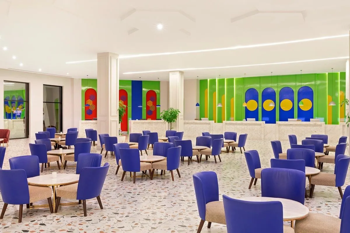 Partially renovated in 2020, the 2-storey resort has 1170 rooms in total. It offers its guests a 24h reception (check-in from 14:00, check-out until 12:00), a lobby with bar, air conditioning, coiffeur, a mini market, various other shops, a free parking area and a money changing facility. For the meals, there are 6 restaurants (air-conditioned) and a snack bar. In a total 10 bars, you can relax in good company. WiFi is available for free. For guests with physical disabilities the accommodation provides a barrier-free access. Room cleaning is free of charge. Room service, laundry / ironing service and medical service are available for a fee. Pool: In the outdoor area of the hotel you will find 32 fresh water pools with a separate children´s pool. Here, there are sun umbrellas and sun loungers for free available. Refreshing beverages can be consumed directly at the pool bar (open from 10:00 - 17:00).