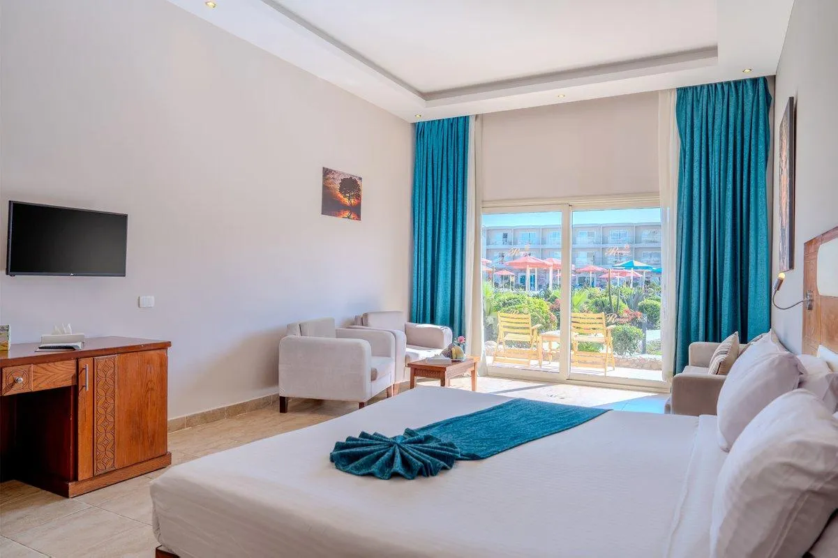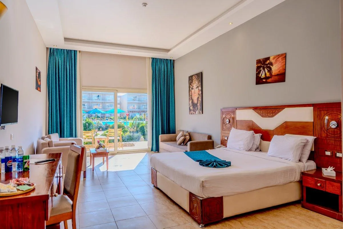Descriere generală Hotelul Rewaya Inn Resort EX Hawaii Paradise, care este deosebit de popular printre cei aflați în luna de miere, este situat in Hurghada North, la cca. 100 m de o plajă privată cu nisip/pietriș. Pe plajă sunt disponibile gratuit șezlonguri și umbrele de soare. Orașul Cairo este la aprox. 500 km. Diverse magazine se află la aprox. 10 km de hotel. Pentru îngrijiri medicale în caz de urgență, există un spital la cca. 15 km distanță. Aeroportul (HRG) se află la aprox. 15 km. Un serviciu de transfer (contra cost) face legătura între hotel și aeroport. Un alt aeroport (RMF) este la cca. 230 km. Facilități Resortul dispune de 3 etaje și peste 687 camere repartizate între o clădire principală și de 2 clădiri secundare. Acesta oferă oaspeților săi recepție (check-in de la 12:00, check out până la 14:00), lobby cu bar, 2 lifturi, aer condiționat, seif (gratuit), minimarket, alte magazine, parcare (gratuită) și birou de schimb valutar. O masă savuroasă va așteapta la unul dintre cele 3 restaurante a hotelului. Accesul la internet WiFi este disponibil gratuit pentru oaspeții hotelului. Pentru evenimente de afaceri, hotelul oferă o zonă de conferințe. Pentru oaspeții cu dizabilități fizice, unitatea de cazare oferă un lift accesibil pentru scaune cu rotile și acces fără bariere. Serviciul de menaj și serviciul de concierge sunt gratuite. Room service, spălătorie, călcat și serviciul medical sunt disponibile la un cost suplimentar. Piscină În grădinile acestui hotelul există 22 piscine cu apă dulce precum și o piscină pentru copii integrată în piscina principală și un tobogan de apă. Acolo sunt disponibile gratuit șezlonguri și umbrele de soare. Un bar lângă piscină oferă oaspeților băuturi răcoritoare (deschis între orele 10:00 - 17:00). Catering Mic dejun (între orele 07:00 - 10:00) bufet suedez. All Inclusive: micul dejun, prânzul și cina. Micul dejun, prânzul și cina pot fi servite numai în anumite restaurante. Băuturi răcoritoare (10:00 - 00:00), cafea și ceai (16:00 - 17:00), aperitive (14:30 - 17:00), bere (10:00 - 00:00), vin (18:30 - 21:00), băuturi alcoolice naționale (10:00 - 00:00) și utilizarea gratuită a seifului (în baza unei garanții). Sport/Leisure Este disponibil: Tenis de masă (contra cost), biliard (contra cost), darts (gratuit), fitness și aerobic. La cca. 100 m de hotel, sunt oferite sporturi nautice (unele de către furnizori locali). Oferte de wellness: Zonă de spa, saună, jacuzzi, baie turcească și masaje contra cost. Divertisment pentru adulți: program de animație cu spectacole de seară. Îngrijirea copiilor: program de animație pentru copii (de la 5 - 12 ani) și mini club pentru copii (de la 5 - 12 ani). Informații suplimentare Pentru anumite facilități sau activități se pot aplica taxe suplimentare. Unele servicii depind de anotimp și de condițiile climatice locale. Limbi de serviciu: engleză, germană, franceză, rusă, arabă și poloneză. Carduri de credit: Visa. Standard Bungalow (SwimUp-Pool Terrasse): Dotate cu pat king-size sau pat twin, pat suplimentar, pat pentru bebeluși (gratuit), pardoseală cu gresie, încălzire controlată centralizat, ceainic (gratuit), minibar (contra cost), seif (gratuit) și TV prin satelit. Prosoapele se schimbă zilnic. Dimensiune: 56 m². Standard Familienzimmer: Dotate cu pat king-size sau pat twin, pat suplimentar, pat pentru bebeluși (gratuit), pardoseală cu gresie, încălzire controlată centralizat, ceainic (gratuit), minibar (contra cost), balcon, seif (gratuit) și TV prin satelit precum și aer condiționat reglabil individual (din ianuarie până în decembrie). Baie cu duș. Prosoapele se schimbă zilnic. Dimensiune: 56 m². Standard Zimmer: Dotate cu pat king-size sau pat twin, pat suplimentar, pat pentru bebeluși (gratuit), pardoseală cu gresie, încălzire controlată centralizat, ceainic (gratuit), minibar (contra cost), balcon sau terasă, seif (gratuit) și TV prin satelit precum și aer condiționat reglabil individual (din ianuarie până în decembrie). Baie cu duș. Prosoapele se schimbă zilnic. Dimensiune: 56 m². Standard Zimmer (Meerblick): Cameră cu pat king-size sau pat twin, pat suplimentar, pat pentru bebeluși (gratuit), pardoseală cu gresie, încălzire controlată centralizat, ceainic (gratuit), minibar (contra cost), seif (gratuit) și TV prin satelit. Prosoapele se schimbă zilnic. Dimensiune: 56 m². Einzelbelegung Standard Zimmer: Cameră cu pat king-size sau pat twin, pat suplimentar, pat pentru bebeluși (gratuit), pardoseală cu gresie, încălzire controlată centralizat, ceainic (gratuit), minibar (contra cost), balcon sau terasă, seif (gratuit) și TV prin satelit precum și aer condiționat reglabil individual (din ianuarie până în decembrie). Baie cu duș. Prosoapele se schimbă zilnic. Dimensiune: 56 m². Einzelbelegung Standard Zimmer (Meerblick): Cameră cu pat king-size sau pat twin, pat suplimentar, pat pentru bebeluși (gratuit), pardoseală cu gresie, încălzire controlată centralizat, ceainic (gratuit), minibar (contra cost), seif (gratuit) și TV prin satelit. Prosoapele se schimbă zilnic. Dimensiune: 56 m².