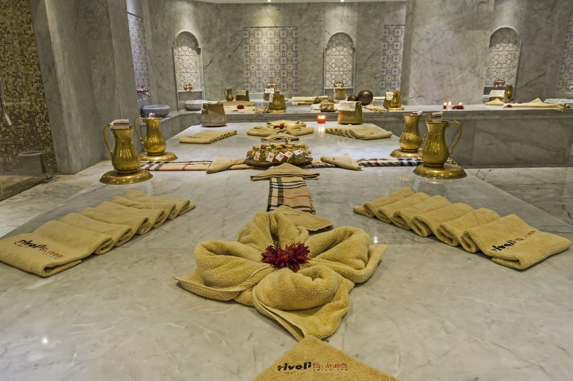 A stay at Rivoli Suites places you in the heart of Hurghada, a 9-minute drive from Hurghada Grand Aquarium and 12 minutes from Hurghada Mosque. This 4-star hotel is 2.9 mi (4.7 km) from Marina Hurghada and 4.5 mi (7.3 km) from Hurghada City Center. Relax at the full-service spa, where you can enjoy massages, body treatments, and facials. You're sure to appreciate the recreational amenities, which include 2 outdoor swimming pools, a sauna, and a fitness center. Additional amenities at this hotel include complimentary wireless Internet access, concierge services, and a hair salon. Featured amenities include a business center, limo/town car service, and dry cleaning/laundry services. A roundtrip airport shuttle is provided for a surcharge (available 24 hours), and free self parking is available onsite. Satisfy your appetite with international cuisine at Chillloun Lounge, a poolside restaurant, or grab snacks at the coffee shop/café. Mingle with other guests at the complimentary reception, held daily. Quench your thirst with your favorite drink at the poolside bar. Full breakfasts are available daily from 9:00 AM to noon for a fee. Make yourself at home in one of the 160 air-conditioned rooms featuring flat-screen televisions. Rooms have private balconies. Satellite television is provided for your entertainment. Bathrooms with showers are provided. Location:Total number of rooms Hotel type:hotel Room facilities (Standard room):Wheelchair-accessible Facilities:Wheelchair-accessible; Car park (Extra Fee); 24-hour reception; Check-in hour; Check-out hour; Wi-fi; Car hire (Extra Fee); Valet parking (Extra Fee); Airport Shuttle; Room service (Extra Fee); Laundry service; Multilingual staff; 24-hour security (Extra Fee); Bellboy service; Fireplace (Extra Fee); Hotel safe; Lift access; Shop (Extra Fee); Garden; Terrace; Concierge; Luggage room; Clothes dryer; BBQ facilities; Grill/BBQ Catering:Café; Bar (Extra Fee); Restaurant; Smoking area (Extra Fee); Poolside snack bar Business:Business centre Entertainment:2 Outdoor freshwater pool; 1 Children’s swimming area; Sun loungers; Parasols; TV lounge Health:Sauna; Steam bath; Hot tub (Extra Fee); Turkish bath (hamam); Massage (Extra Fee); Spa treatments; Hairdressing salon; Spa centre (Extra Fee)