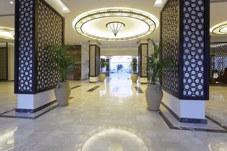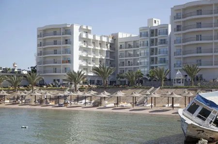 The totally new Royal Star Beach Resort boasts a unique and distinctive pool environment to suit the needs and desires of each of its guests. Experience the genuine hospitality and outstanding service that is the hallmark of The Three Corners Hotels & Resorts. Resort guests and local visitors can enjoy the exceptional ambiance and amenities of this new landmark property, offering style and luxury in the heart of Hurghada. The Hotel is just minutes to the center of the city and provides easy access to the major attractions, local beaches and the best shopping, dining and entertainment venues. Welcome to our Hurghada hotel on the beach. There’s an energy that hums from sunrise to sunset and around again. Location The Three Corners Royal Star Beach Resort borders the Red Sea and is nearby the center of the downtown area of Hurghada. Here you have the best of both worlds: the natural wonders of the sea are accessible from our private beach with Hurhgada's city-life only 200 metres away. Hurghada, known in Egypt as 'Ghardaga', was at one time just a simple fishing village. It has gone on to become the foremost tourist resort of the Red Sea coast and an international center for aquatic sports. Hurghada is world renowned as a center for some of the world's best diving. Within a couple of hours from your hotel you can be amongst a group of islands that are the home to dive sites guaranteed to astound even the most experienced divers. Hurghada is also known as a party town where life begins at night in the many clubs. And of course, Hurghada is also a beach resort, where thousands flock with their families to enjoy the sumptuous Egyptian sun. Room information Elegant decors and beautiful appointments transform the accommodations at the Royal Star Beach Resort into a private urban oasis. Each of our 212 elegantly appointed rooms features natural colours wit rich wood tones and appealing textures throughout which invite you in, eager to explore the many other amenities offered in your guestroom. Royal Star Beach Resort rooms offer full or partial Red Sea views, garden or city views. The total offer consist of 186 standard rooms, 8 grand superior rooms, 4 honeymoon rooms, 4 triple rooms and 10 suites. Rooms with a connecting door and non-smoking rooms are available upon request. All rooms feature AC, telephone (IIDD) , mini-fridge, satellite TV, safe, hairdryer, bathroom and shower, balcony or terraces, tea and coffee making. Services LaundryTVIn room telephoneSatellite TVMinibarHeatingAir conditioningSafety BoxHair DryerTerraceNon-smoking roomsSaunaConference roomsBreakfast buffetRestaurantHairdresserFamily roomsParkingSuitable for people with walking difficultiesReception 24 hoursSpaWellness centerShopSwimming poolDistance to the airport : 20 kmAirport name : Hurghada (HRG)