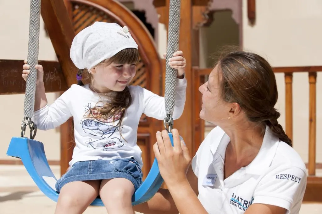 Kid’s Club (pentru copiii cu vârsta cuprinsă între 3-12 ani; deschis 6 zile/săptămână), secţiune în piscina exterioară, 2 tobogane acvatice, mini aqua park (la Sunrise Garden Beach Resort - contra cost), meniu şi scaune în restaurant, pătuţ (la cerere, gratuit), baby-sitter (contra cost).