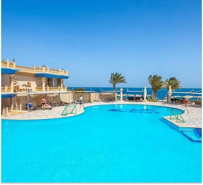 Sphinx Resort Hurghada A Red Sea retreat just moments from the water. Set along the dazzling Red Sea coast and minutes from Hurghada’s lively center, Sphinx Resort offers stunning views of top diving spots and is just 5 km from Hurghada International Airport. With the beach only a minute’s walk away, it’s the perfect destination for sun, sea, and relaxation. Guests also enjoy access to the neighboring King Tut Resort—an all-inclusive escape with free Wi-Fi and direct beach access. Each room features a private balcony overlooking vibrant coral reefs, creating a peaceful and picturesque stay.