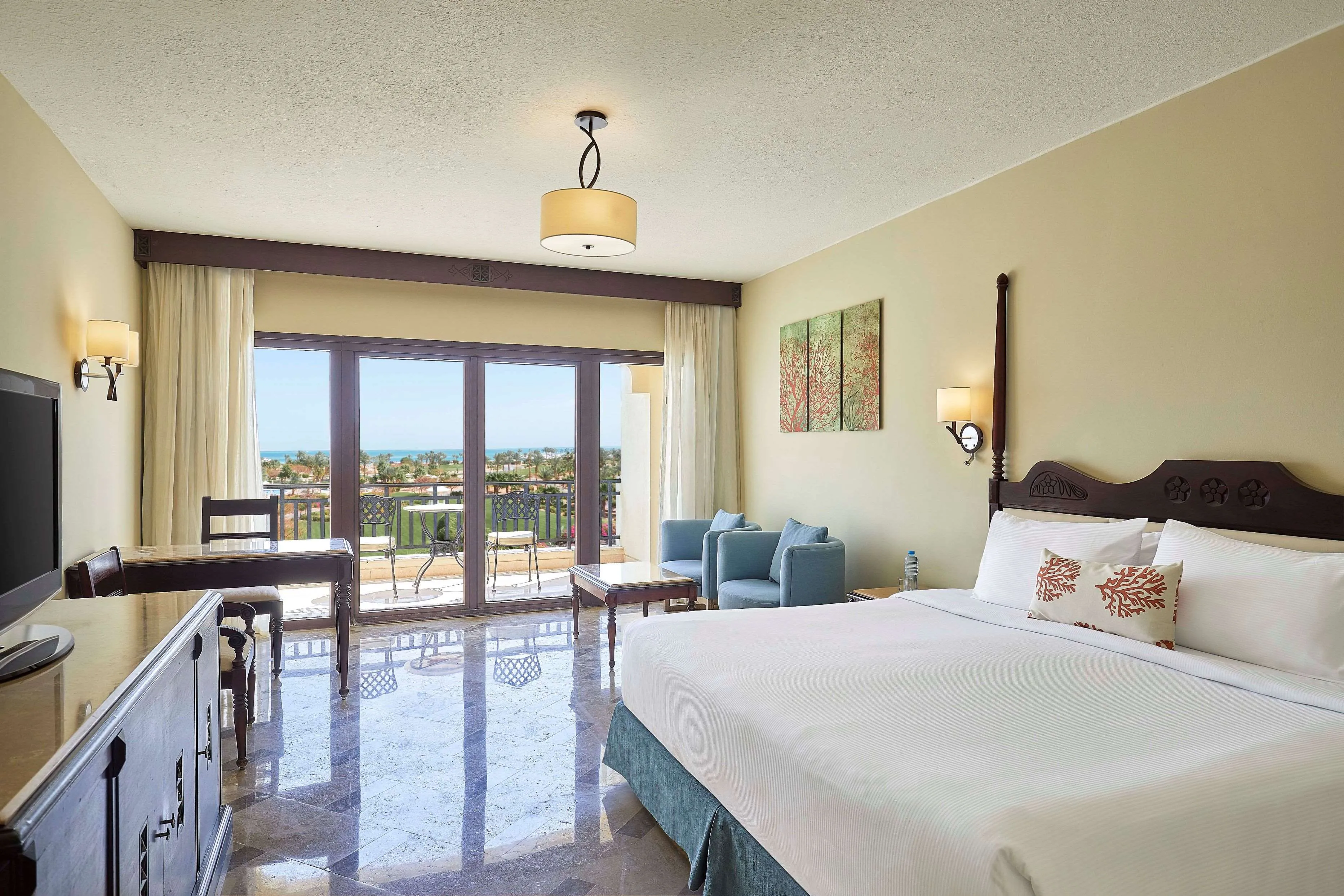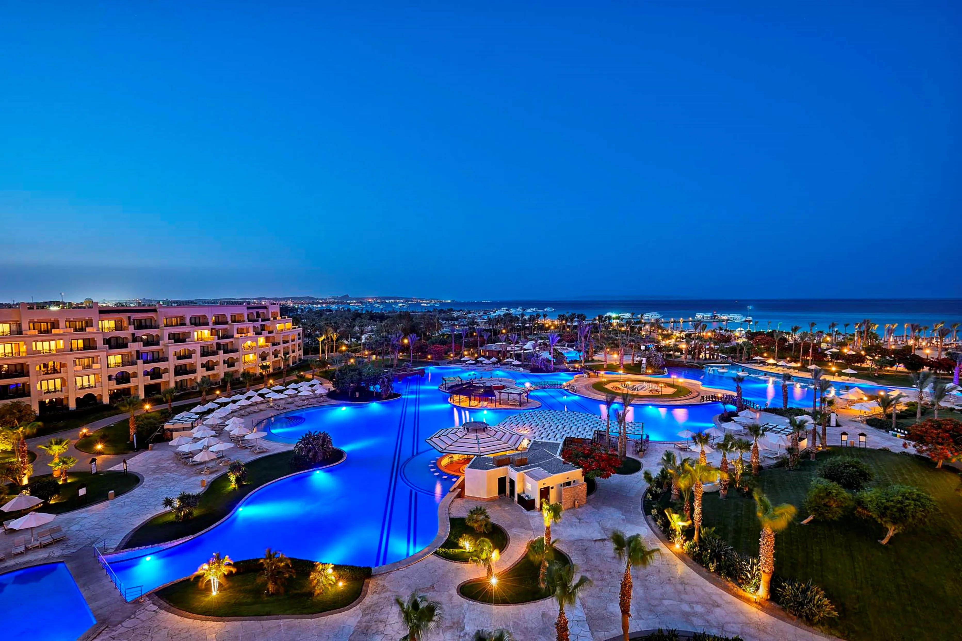 A haven of sophisticated luxury located in the center of Hurghada, Red Sea, Egypt. Peace and privacy pervade this exclusive, 5-star deluxe beach hotel, located directly on the azure blue Red Sea shore. Let your mind rest in the green of landscaped gardens, the aqua-marine of the Red Sea, and the reds of the dramatic mountain ranges in the background. This award winning beach hotel combines ultimate luxury and service excellence.