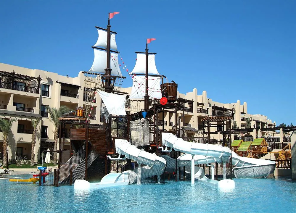 Plajă proprie, cu nisip; 5 piscine exterioare – 2.600 mp, 2 piscine pentru copii, Lazy river – 450 m, 2 piscine Aqua Relax Rooftop Adults Only; Șezlonguri și umbrele gratuite atât la plajă, cât și la piscină.