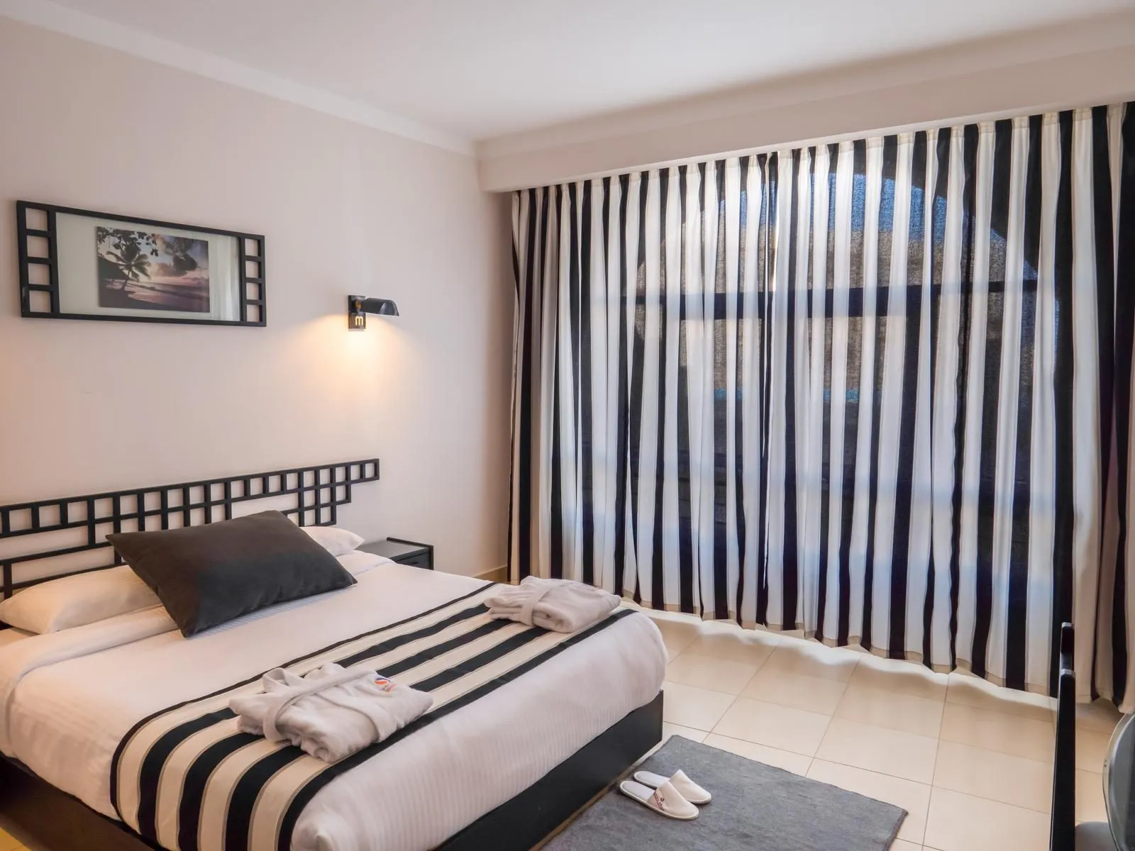 Descriere generală La cca. 800 m de o plajă cu nisip/pietriș veți găsi hotelul Sunny Days Mirette Family Aqua Park. Pe plajă sunt disponibile gratuit șezlonguri și umbrele de soare. Orașul Hurghada este la aprox. 3 km (Cairo cca. 500 km). Cele mai apropiate baruri și restaurante sunt la cca. 800 m distanță. Pentru îngrijiri medicale în caz de urgență, există un spital la cca. 1 km distanță. Aeroportul (HRG) se află la aprox. 15 km. Un alt aeroport (RMF) este la cca. 230 km. Facilități Resortul dispune de 5 etaje și peste 191 camere. Acesta oferă oaspeților săi recepție (check-in de la 14:00, check out până la 12:00), lobby, lift, aer condiționat, minimarket și alte magazine. Pentru a satisface apetitul vă stau la dispoziție 2 restaurante cu aer condiționat. Accesul la internet WiFi poate fi utilizat de oaspeții hotelului contra cost. Serviciul de menaj este gratuit. Room service, spălătorie și serviciul medical sunt disponibile la un cost suplimentar. Piscină În grădinile acestui hotelul există o piscină cu apă dulce precum și o piscină separată pentru copii. La piscină sunt disponibile gratuit șezlonguri și umbrele de soare. La barul de la piscină sunt disponibile băuturi răcoritoare (deschis între orele 10:00 - 17:00). Catering Mic dejun (între orele 07:00 - 10:00) bufet suedez. All Inclusive: micul dejun, prânzul și cina. Micul dejun, prânzul și cina pot fi servite numai în anumite restaurante. Bere și vin. Mic dejun târziu (între orele 10:30 - 12:00), băuturi răcoritoare (10:00 - 00:00), aperitive (12:30 - 17:00), băuturi alcoolice naționale (10:00 - 00:00) și gustări la miezul nopții (22:30 - 00:30). Sport/Leisure Oferte pentru sport și divertisment: Tenis (posibil contra cost). La cca. 800 m de hotel, sunt oferite sporturi nautice (unele de către furnizori locali). Informații suplimentare Pentru anumite facilități sau activități se pot aplica taxe suplimentare. Unele servicii depind de anotimp și de condițiile climatice locale. Limbi de serviciu: engleză, germană, franceză, rusă, arabă și cehă. Carduri de credit: Euro/MasterCard și Visa. 1 Schlafzimmer Standard Familienzimmer: Cameră cu living, pat dublu sau pat twin, pardoseală cu gresie, încălzire reglabilă individual, ceainic (gratuit), minibar (contra cost), balcon sau terasă, seif (gratuit) și TV prin satelit precum și aer condiționat reglabil individual. Baie cu duș. Dimensiune: 103 m². 2 Schlafzimmer Standard Familienzimmer: Dotate cu living, pat dublu sau pat twin, pardoseală cu gresie, încălzire reglabilă individual, ceainic (gratuit), minibar (contra cost), balcon sau terasă, seif (gratuit) și TV prin satelit precum și aer condiționat reglabil individual. Baie cu duș. Dimensiune: 103 m².