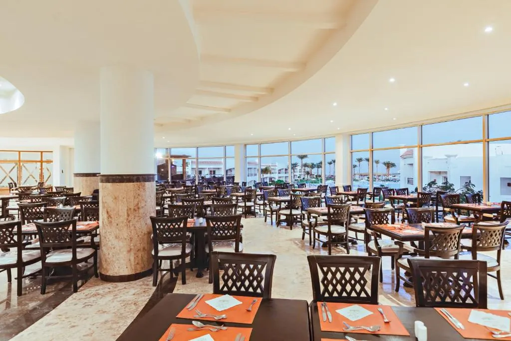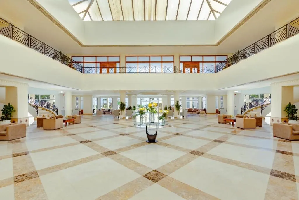 The hotel Grand Seas Resort Hostmark is located in the vicinity of a private beach. The old town is around 14 km away. There is a shuttle between the hotel and the airport (for a fee). On the beach are sun loungers, sun umbrellas and beach towels available. The air-conditioned hotel is equipped with a 24h reception (check-in is possible around the clock), a lobby bar, Wi-Fi (for a fee), internet access, a shop, a boutique, cash machine, a hairdresser, a jacuzzi, showers and changing rooms, a first aid kit as well as parking spaces. Outside there is a separate children's pool, where sun loungers, sun umbrellas and pool towels are available for free. Furthermore, you can relax outdoors on a terrace. For your entertainment, the hotel offers a library/reading room. For very young guests, kid`s chairs, highchairs and cots can be provided. You can store your luggage in the hotel's storage room. To clean your clothes there is a laundry service (extra fee). For your comfort, in addition to the concierge service the hotel page will ensure you are looked after. If necessary, you can contact the medical centre at any time (for a fee). Guests at the accommodation can get a wake-up call from the hotel personnel. For conventions and other business meetings, the hotel offers a business centre as well as a conference area (extra fee) with a total of 150 seats, scanner as well as overhead projector. Smoking is allowed in certain areas of the hotel. For guests on their honeymoon, the hotel has special offers such as special honeymoon packages. Catering As catering services the hotel offers all-inclusive, half board and self-catering. Breakfast is offered from the buffet. Enjoy your lunch from the buffet or as a set meal. Dinner is also served as a buffet, as a set meal or à la carte. As part of the all-inclusive service, international alcoholic beverages (unlimited) are available around the clock and at no extra charge. For the meals, there are a buffet restaurant with terrace (Italian, calorie-reduced and vegetarian dishes) and a 24h snackbar as well as the pool bar. The drinks menu of the hotel includes coffee and tea. For dinner, guests are asked to wear appropriate clothing in the restaurant. Distances