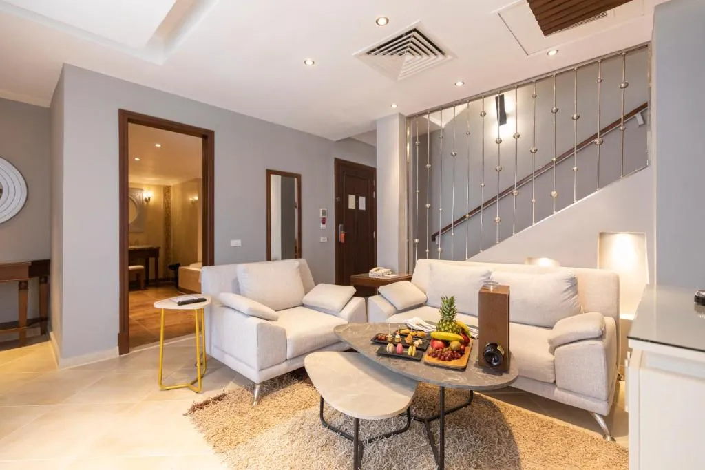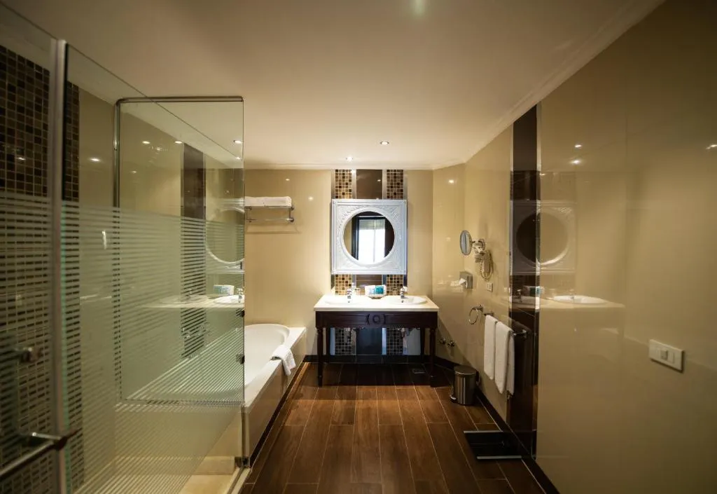 Crystal Jacuzzi Suite (Vedere la mare)-2, 2 dormitoare: unul cu pat King Size si unul cu paturi twin, 2 bai cu cada/dus, 2 dressing-uri, living, balcon cu jacuzzi, 120 m2