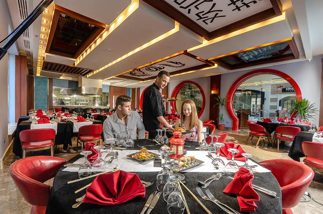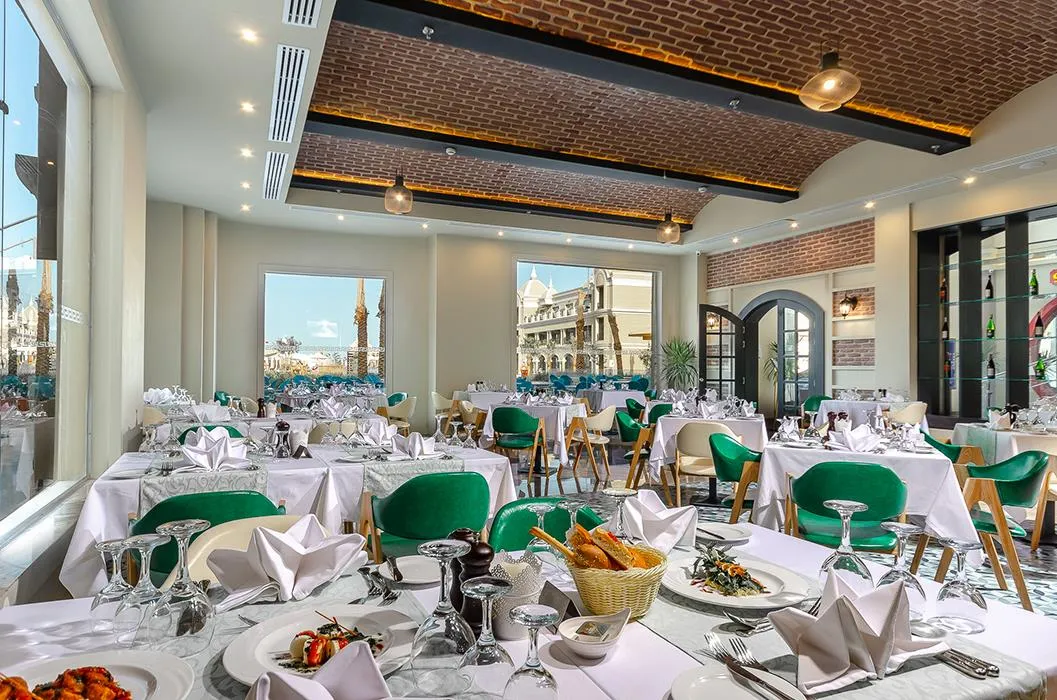 Restaurant principal ”The Diamond” – tip bufet, restaurante a la carte cu specific: ”Santa Lucia” – italian, ”Far East Restaurant” – chinezesc și ”Mongolian”; Lobby Bar, Vip Lounge, Shisha, Royal Beach Bar, Pool Bar, Fountain Bar, Disco.
