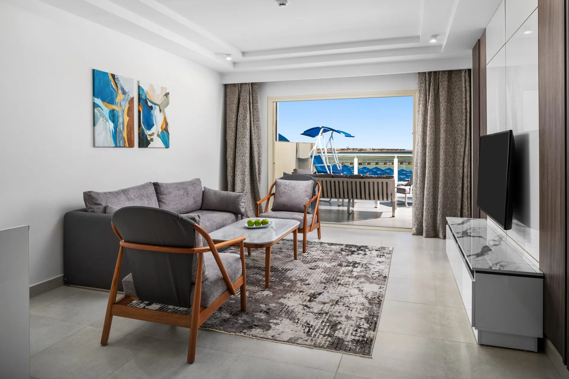 Sports & Leisure To keep your fitness up on holiday, there is a gym for guests to use. The golf course offers optimal conditions for all golfing fans, and for your convenience also provides facilities such as golf carts. In the surrounding you can also take advantage of a range of water sports, including speedboat riding, catamaran sailing, jet skiing and water aerobics. If you want to stay on the ball during your holidays, you`ll find the chance to play football or basketball. During your holiday you can also take part in aerobics courses, in Zumba courses and in yoga courses. With beach volleyball, darts and table tennis various other sports offer a lot of variety on holiday. In addition to a nearby tennis court (hard court) with floodlighting there is also a tennis rental. For cyclists there is a bicycle rental. Also boccia is offered as a further leisure activity. Furthermore, various water sports such as fishing, windsurfing, snorkelling and diving (including rental service) are offered in the area. Kiting is also possible in the surroundings of the hotel. A sauna (extra fee) awaits you for relaxation. The hotel also offers massages (extra fee) and beauty treatments (extra fee). Let yourself be pampered in the Hamam (extra fee). Infants can be looked after in the hotel`s own baby club. For older children the care takes place in the children`s club. The mini disco also offers age-appropriate entertainment for young hotel guests. In terms of adult entertainment, evening shows and live music are presented and there is a games room available to use. Some of the sports are already included in the price. Additional information The 3-storey accommodation, newly built in 2025, has a total of 623 rooms. Of these, 6 rooms have disabled access. The hotel staff speak English, German, Russian, Arabic and Polish.