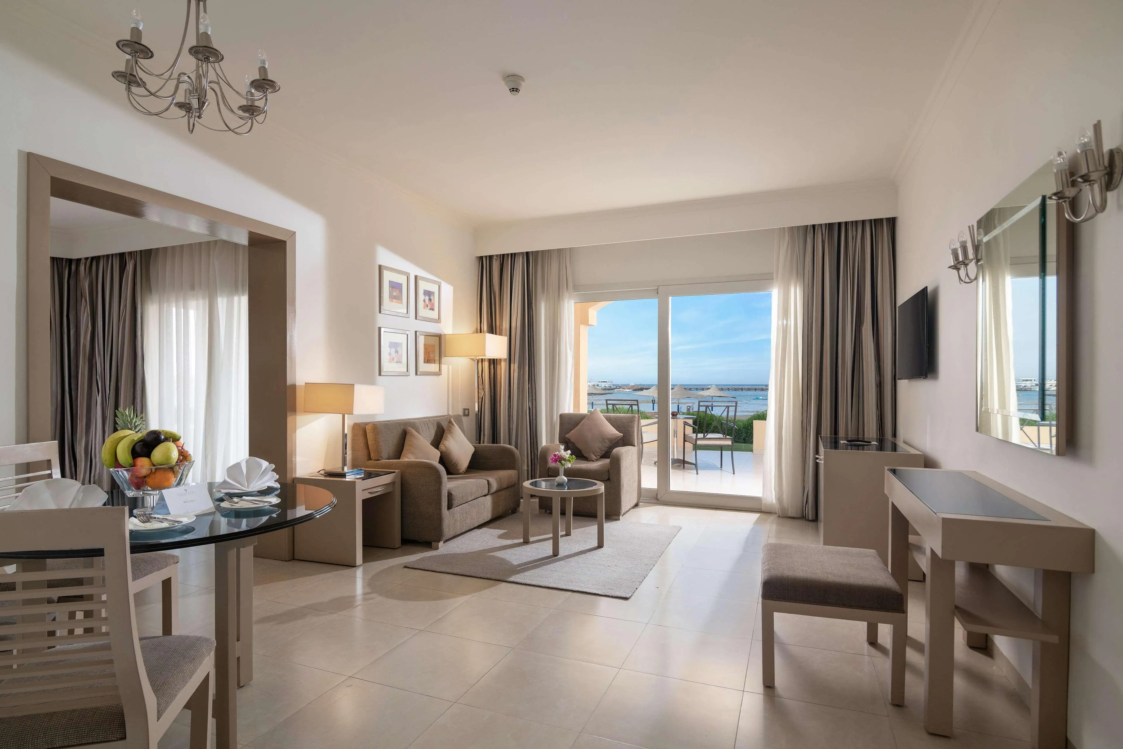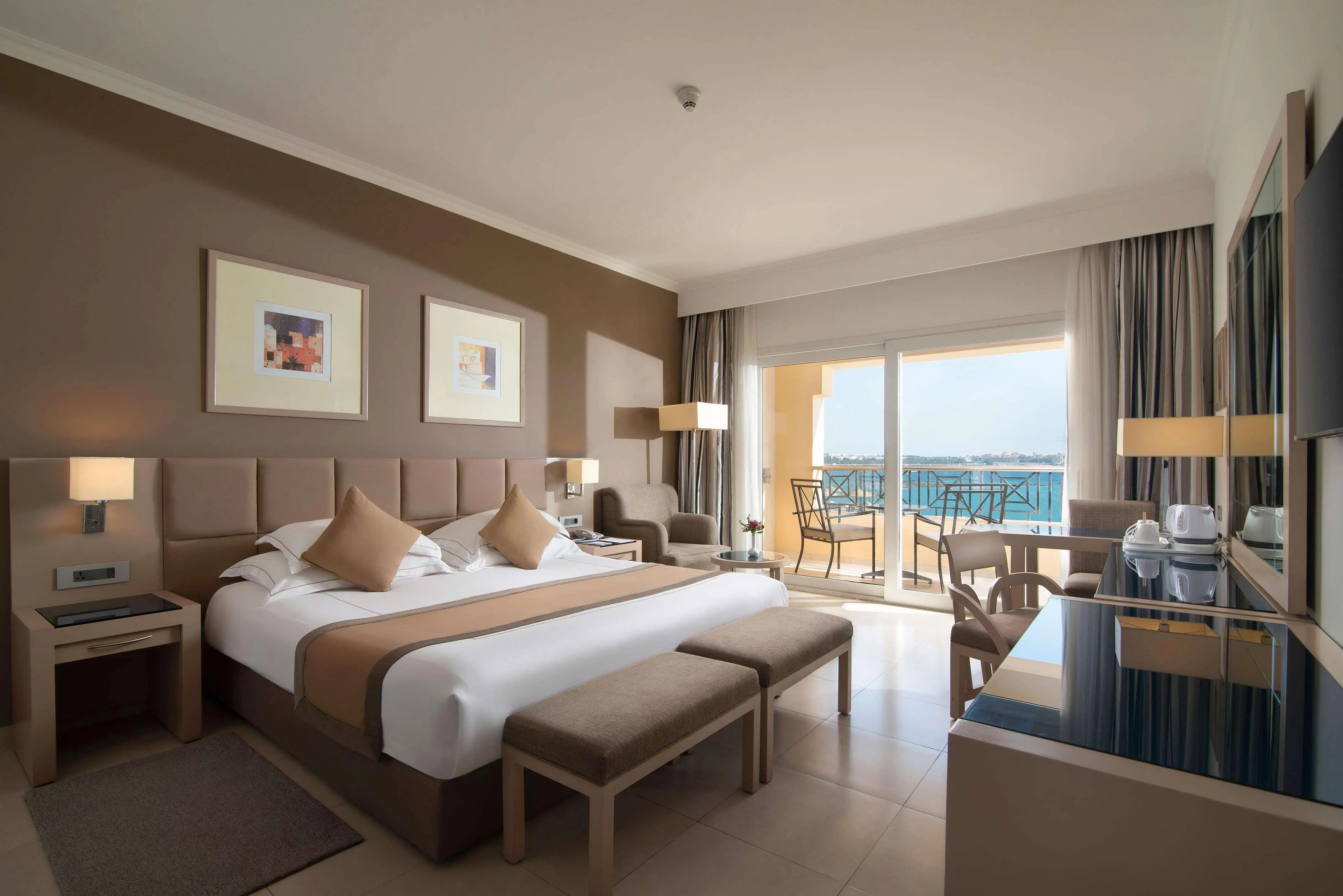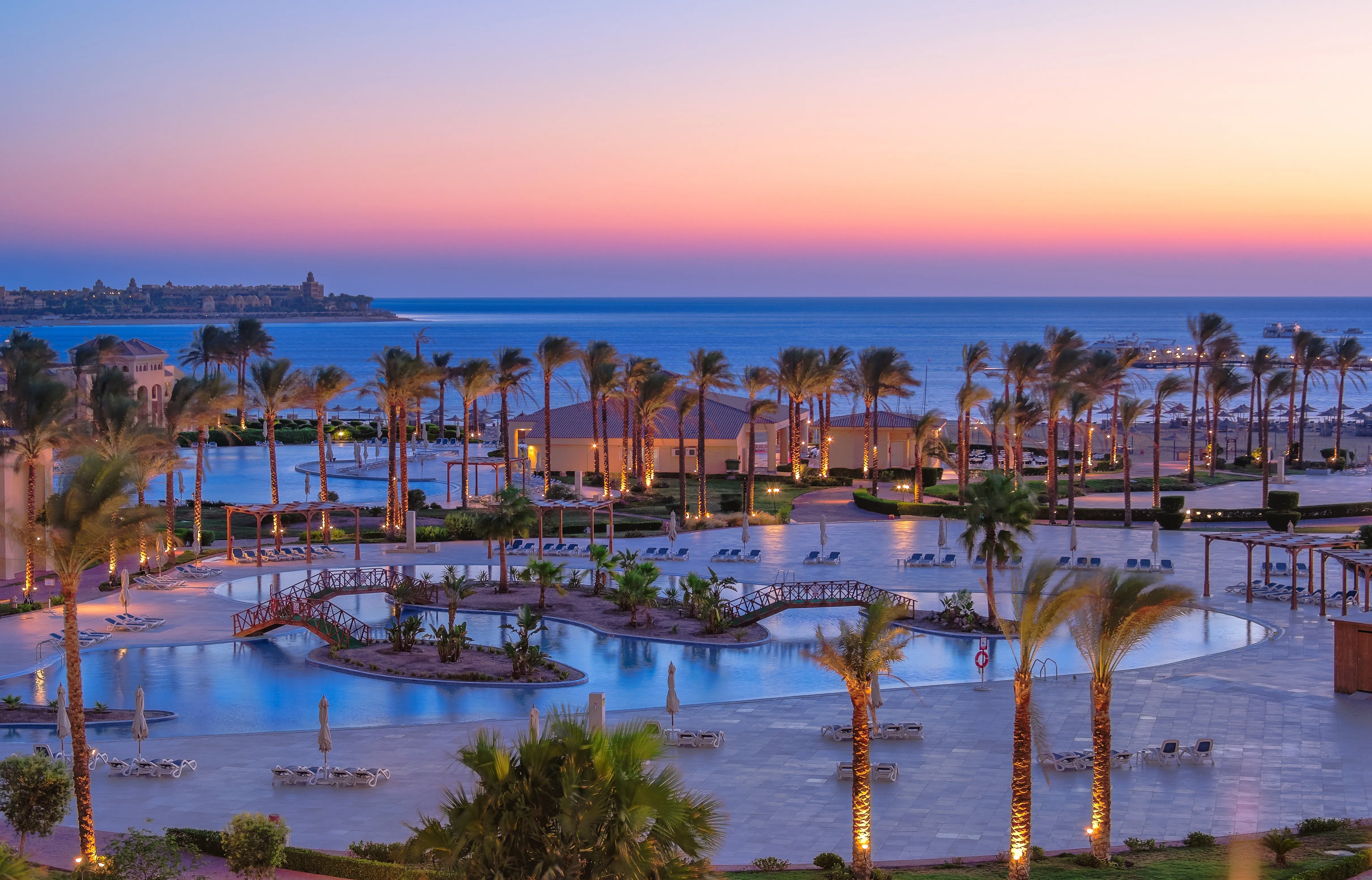 This luxurious resort is set directly on the Red Sea, boasting its own sandy beach. The resort is located in Hurghada, just 35 km away from the city centre. This wonderful setting is ideal for sports enthusiasts, and those who are eager to explore the depths of the sea. Guests can enjoy a wealth of exciting activities nearby. This resort boasts 300,000 square metres of land, with a house reef and a floating dock. Guests are welcomed into a picture-perfect world of style and luxury. The guest rooms are decorated in warm colours with rich shades. Featuring a range of exemplary facilities and services, this hotel delivers the utmost in comfort and convenience, complemented by impeccable attention to detail and warm hospitality. Location:2009 Year of construction; 2013 Year of most recent renovation; 530 Total number of rooms; 2 Number of floors (main building); 2 Number of floors (annexe); 498 Double rooms; 5 Junior suites; 20 Suites; 5 Disability-friendly rooms Hotel type:hotel Methods of payment:American Express; MasterCard; Visa Distances (in meters):City centre (30); Nearest Bus / Metro Stop (30); Beach (0); Golf course (7000) Room facilities (Standard room):Wi-fi; Smoking rooms Facilities:Wheelchair-accessible; Car park (Extra Fee); 24-hour reception; Check-in hour; Check-out hour; Mobile phone coverage; Wired Internet; Wi-fi (Extra Fee); Car hire (Extra Fee); Secure parking (Extra Fee); Valet parking (Extra Fee); Room service; Laundry service; Medical service; Babysitting service; Multilingual staff; Bellboy service (Extra Fee); Air conditioning in public areas; Hotel safe; Currency exchange facilities (Extra Fee); Lift access; Supermarket; Shop; Garden; Terrace; Concierge; Sun terrace; Gym; Luggage room; Clothes dryer; BBQ facilities; Grill/BBQ; Private beach area; Library Catering:Café; Bar; 4 Restaurant; Non-smoking area; Smoking area (Extra Fee); Highchairs; Poolside snack bar; Air conditioning in Restaurant Business:Conference room; Meeting room Entertainment:8 Outdoor freshwater pool; 1 Children’s swimming area; Sun loungers; Parasols; Children playground; Kids’ club; Entertainment programme for adults; Entertainment programme for children; Theatre / auditorium; Game room (Extra Fee); Nightclub; Pub Health:Sauna; Steam bath; Hot tub; Turkish bath (hamam); Solarium (Extra Fee); Massage; Spa treatments; Hairdressing salon; Spa centre (Extra Fee) Green Programmes - Worldwide:Green star hotel standard