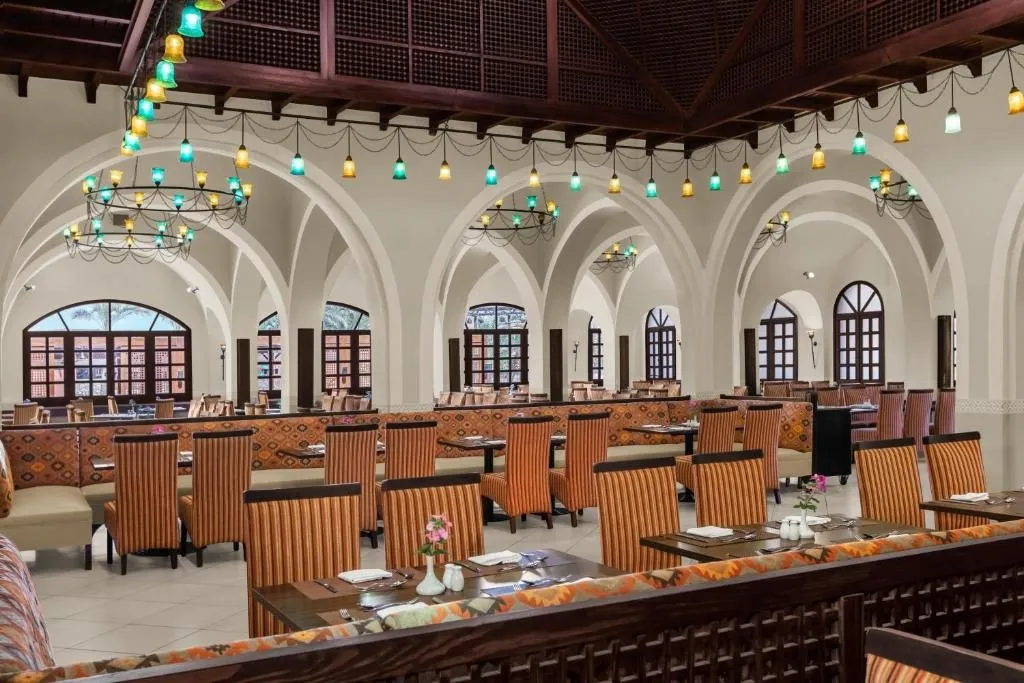 Restaurant principal-tip bufet - “El Hambara”; în Madinat Makadi - “Aqua Restaurant & Bar”, 6 restaurante á la carte, cu specific: indian - “Amaya”, oriental - “Sofra”, barbeque - “Le Grill”, asiatic - “Makai Tukai”, italian - “Nino’s”, mediteranean - “Beach Restaurant”, Shisha café, El Shamousa Pool Bar, Lobby Bar, Beach Bar, La Loca Disco