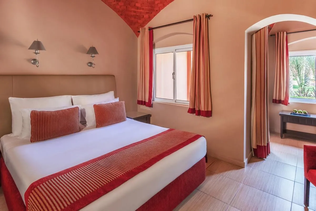 Descriere generală La cca. 300 m de o plajă privată cu nisip veți găsi hotelul Jaz Makadi Oasis Resort, care este deosebit de popular printre cei aflați în luna de miere. Pe plajă sunt disponibile gratuit șezlonguri și umbrele de soare. Orașul Downtown este la aprox. 30 km (SOUK MAKADI cca. 500 m, Cairo cca. 650 km). Magazinele sunt la aprox. 20 km de hotel, și un supermarket este la cca. 500 m. Cele mai apropiate baruri și restaurante sunt la cca. 30 km distanță. De asemenea, la cca. 30 km de hotel este un cinematograf. Următoarele atracții pot fi accesate de la hotel: New Marine (cca. 35 km). Pentru îngrijiri medicale în caz de urgență, există un spital la cca. 30 km distanță. Aeroportul (HRG) se află la aprox. 30 km. Un serviciu de transfer (contra cost) face legătura între hotel și aeroport. Un alt aeroport (RMF) este la cca. 190 km. Facilități Resortul dispune de 3 etaje și peste 521 camere repartizate între o clădire principală și de 4 clădiri secundare. Hotelul are recepție deschisă 24h (check-in de la 14:00, check out până la 12:00), lobby cu bar, aer condiționat, seif (gratuit), minimarket, alte magazine, teatru, parcare (gratuită) și birou de schimb valutar. Pentru a servi masa aveți la dispoziție un restaurant cu aer condiționat și un snackbar. Accesul la internet WiFi este disponibil gratuit pentru oaspeții hotelului. Pentru oaspeții care depind de un scaun cu rotile, hotelul oferă băi parțial accesibile pentru scaune cu rotile și acces fără bariere. Serviciul de menaj este gratuit. Spălătorie și călcat sunt disponibile la un cost suplimentar. Piscină Zona exterioară a hotelului include 3 piscine cu apă dulce precum și o piscină separată pentru copii. La piscine sunt disponibile gratuit șezlonguri și umbrele de soare. La barul piscinei va puteți bucura de o băutura răcoritoare (deschis între orele 10:00 - 18:00). Catering Mic dejun (între orele 07:00 - 10:00) bufet suedez. All Inclusive: micul dejun, prânzul și cina. Micul dejun, prânzul și cina pot fi servite numai în anumite restaurante. Apă. Băutură de bun venit, băuturi răcoritoare (00:00 - 00:00), aperitive (12:30 - 15:00), bere (10:00 - 00:00), vin (10:00 - 00:00), băuturi alcoolice naționale (10:00 - 00:00), 1 masă pe sejur în restaurantul à la carte, internet gratuit și utilizarea gratuită a seifului (în baza unei garanții). Check-out mai târziu posibil (în funcție de disponibilitate). Sport/Leisure Este disponibil: Volei pe plajă, fitness, darts (gratuit), tenis (contra cost, la cca. 50 m distanță), tenis de masă (gratuit), biliard (gratuit), aerobic și yoga. La cca. 250 m de hotel, sunt oferite sporturi nautice precum schi nautic (unele de către furnizori locali). La cca. 1 km de hotel este un teren de golf. Oferte de wellness: Zonă de spa, saună, jacuzzi, baie turcească, hamam și masaje contra cost. Divertisment pentru adulți: program de animație cu spectacole de seară. Teren de joacă. Îngrijirea copiilor: program de animație pentru copii (de la 4 - 12 ani) și mini club pentru copii (de la 3 - 12 ani). Informații suplimentare Pentru anumite facilități sau activități se pot aplica taxe suplimentare. Unele servicii depind de anotimp și de condițiile climatice locale. Limbi de serviciu: engleză, germană, rusă și arabă. Carduri de credit: Euro/MasterCard și Visa. Familienzimmer (Gartenblick): Dotate cu pat dublu, o canapea extensibilă ca pat suplimentar, pat pentru bebeluși (gratuit), pardoseală cu gresie, ceainic (gratuit), balcon și acces la internet (gratuit). Lenjeria de pat se schimbă de 3 ori pe săptămână. Familienzimmer (Poolblick): Dotate cu pat dublu, o canapea extensibilă ca pat suplimentar, pat pentru bebeluși (gratuit), pardoseală cu gresie, ceainic (gratuit), balcon și acces la internet (gratuit). Lenjeria de pat se schimbă de 3 ori pe săptămână. Deluxe Familienzimmer (Gartenblick): Dotate cu pat dublu, o canapea extensibilă ca pat suplimentar, pat pentru bebeluși (gratuit), pardoseală cu gresie, ceainic (gratuit), balcon și acces la internet (gratuit). Lenjeria de pat se schimbă de 3 ori pe săptămână. Deluxe Familienzimmer (Poolblick): Dotate cu pat dublu, o canapea extensibilă ca pat suplimentar, pat pentru bebeluși (gratuit), pardoseală cu gresie, ceainic (gratuit), balcon și acces la internet (gratuit). Lenjeria de pat se schimbă de 3 ori pe săptămână. Superior Familienzimmer (Gartenblick): Dotate cu pat dublu, o canapea extensibilă ca pat suplimentar, pat pentru bebeluși (gratuit), pardoseală cu gresie, ceainic (gratuit), balcon și acces la internet (gratuit). Lenjeria de pat se schimbă de 3 ori pe săptămână. Superior Familienzimmer (Poolblick): Cameră cu pat dublu, o canapea extensibilă ca pat suplimentar, pat pentru bebeluși (gratuit), pardoseală cu gresie, ceainic (gratuit), balcon și acces la internet (gratuit). Lenjeria de pat se schimbă de 3 ori pe săptămână. JuniorSuite (Gartenblick): Dotate cu pat dublu, o canapea extensibilă ca pat suplimentar, pat pentru bebeluși (gratuit), pardoseală cu gresie, ceainic (gratuit), balcon și acces la internet (gratuit). Lenjeria de pat se schimbă de 3 ori pe săptămână. JuniorSuite (Poolblick): Cameră cu pat dublu, o canapea extensibilă ca pat suplimentar, pat pentru bebeluși (gratuit), pardoseală cu gresie, ceainic (gratuit), balcon și acces la internet (gratuit). Lenjeria de pat se schimbă de 3 ori pe săptămână. Doppel Superior Zimmer (Gartenblick): Cameră cu pat dublu, o canapea extensibilă ca pat suplimentar, pat pentru bebeluși (gratuit), pardoseală cu gresie, ceainic (gratuit), balcon și acces la internet (gratuit). Lenjeria de pat se schimbă de 3 ori pe săptămână. Doppel Superior Zimmer (Poolblick): Cameră cu pat dublu, o canapea extensibilă ca pat suplimentar, pat pentru bebeluși (gratuit), pardoseală cu gresie, ceainic (gratuit), balcon și ac