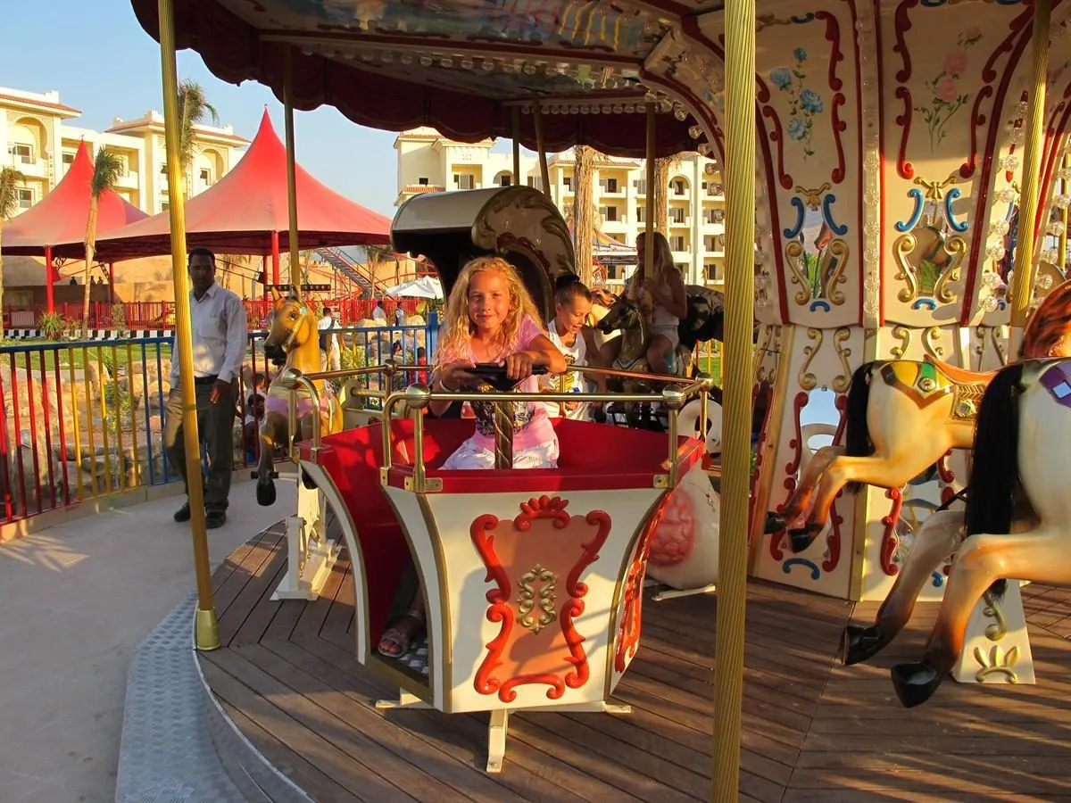 Descriere generală La cca. 500 m de o plajă privată cu nisip/de pietre veți găsi hotelul Serenity Alma Heights, care este deosebit de popular printre cei aflați în luna de miere. Pe plajă sunt disponibile gratuit șezlonguri și umbrele de soare. Centrul turistic al stațiunii se află la aprox. 35 km. Orașul Hurghada este la aprox. 35 km (Cairo cca. 500 km, Luxor cca. 350 km). Un supermarket și alte magazine se găsesc la aprox. 25 km. Cele mai apropiate baruri și restaurante sunt la cca. 35 km distanță. Pentru îngrijiri medicale în caz de urgență, există un spital la cca. 35 km distanță. Aeroportul (HRG) se află la aprox. 30 km. Un serviciu de transfer (contra cost) face legătura între hotel și aeroport. Un alt aeroport (RMF) este la cca. 190 km. Până la cea mai apropiată plajă există, de asemenea, un serviciu de transfer (graduit). Facilități Resortul dispune de 5 etaje și peste 579 camere repartizate între o clădire principală și de 3 clădiri secundare. Acesta oferă oaspeților săi recepție deschisă 24h (check-in de la 14:00, check out până la 12:00), lobby cu bar, un total de 4 lifturi, aer condiționat, seif (gratuit), minimarket, alte magazine, parcare (gratuită) și birou de schimb valutar. Pentru a satisface apetitul aveți la dispoziție în hotel 8 restaurante cu aer condiționat și un snackbar. Accesul la internet WiFi este disponibil gratuit pentru oaspeții hotelului. Pentru evenimente de afaceri, hotelul oferă o zonă de conferințe. Pentru oaspeții care depind de un scaun cu rotile, hotelul oferă acces fără bariere. Serviciul de menaj și serviciul de concierge sunt gratuite. Room service, spălătorie, călcat și serviciul medical sunt disponibile la un cost suplimentar. Piscină În grădinile acestui hotelul cu parc acvatic și tobogan de apă există 4 piscine cu apă dulce precum și o piscină separată pentru copii. Acolo sunt disponibile gratuit șezlonguri și umbrele de soare. La barul de la piscină sunt disponibile băuturi răcoritoare. Catering Mic dejun (între orele 07:00 - 10:00) bufet suedez. All Inclusive: micul dejun, prânzul și cina. Micul dejun, prânzul și cina pot fi servite numai în anumite restaurante. Mic dejun târziu (între orele 10:00 - 11:00), băuturi răcoritoare (00:00 - 00:00), cafea și ceai (00:00 - 00:00), aperitive (12:00 - 17:00), bere (00:00 - 00:00), vin (00:00 - 00:00), băuturi alcoolice naționale (00:00 - 00:00), gustări la miezul nopții (22:00 - 23:00) și utilizarea gratuită a seifului (în baza unei garanții). All Inclusive Plus: micul dejun, prânzul și cina. Micul dejun, prânzul și cina pot fi servite numai în anumite restaurante. În plus băuturi răcoritoare (00:00 - 00:00), cafea, ceai (00:00 - 00:00), aperitive (12:00 - 17:00), băuturi alcoolice naționale (00:00 - 00:00) și gustări la miezul nopții (22:00 - 23:00). Apă, bere și vin. Băutură de bun venit, internet gratuit, utilizarea gratuită a seifului (în baza unei garanții), unele oferte sportive incluse, minibar gratuit (limitat), service 24h și diverse activități de sporturi nautice gratuite. 1 masă în restaurantul à la carte. Sport/Leisure Oferte pentru sport și divertisment: Biliard (contra cost), tenis (contra cost, la cca. 100 m distanță), volei pe plajă, fitness, fotbal, darts (gratuit), minigolf, yoga, tenis de masă (contra cost) și aerobic. La cca. 600 m de hotel, sunt oferite sporturi nautice (unele de către furnizori locali). Oferte de wellness: Zonă de spa, saună, jacuzzi, baie turcească, hamam și masaje contra cost. Divertisment pentru adulți: program de animație cu spectacole de seară. Îngrijirea copiilor: program de animație pentru copii și mini club pentru copii (de la 5 - 12 ani). Sală de jocuri. Informații suplimentare Pentru anumite facilități sau activități se pot aplica taxe suplimentare. Unele servicii depind de anotimp și de condițiile climatice locale. Limbi de serviciu: engleză, germană, franceză și rusă. Carduri de credit: Euro/MasterCard și Visa. Miteinander verbunden Familienzimmer: Cameră cu pat dublu sau pat twin, pat suplimentar, pat pentru bebeluși (gratuit), mochetă, ceainic (gratuit), minibar (posibil contra cost), seif (gratuit) și TV prin satelit precum și aer condiționat controlat central (din aprilie până în octombrie). Miteinander verbunden Familienzimmer ( Type B): Dotate cu pat dublu sau pat twin, pat suplimentar, pat pentru bebeluși (gratuit), mochetă, ceainic (gratuit), minibar (posibil contra cost), seif (gratuit) și TV prin satelit precum și aer condiționat controlat central (din aprilie până în octombrie). Doppel Standard Familienzimmer: Dotate cu pat dublu sau pat twin, pat suplimentar, pat pentru bebeluși (gratuit), mochetă, ceainic (gratuit), minibar (posibil contra cost), seif (gratuit) și TV prin satelit precum și aer condiționat controlat central (din aprilie până în octombrie). Baie cu duș. Dimensiune: 57 m². 2 Schlafzimmer Standard Familienzimmer (Poolblick): Cameră cu pat dublu sau pat twin, pat suplimentar, pat pentru bebeluși (gratuit), mochetă, ceainic (gratuit), minibar (posibil contra cost), seif (gratuit) și TV prin satelit precum și aer condiționat controlat central (din aprilie până în octombrie). Baie cu duș. Water Familienzimmer: Cameră cu pat dublu sau pat twin, pat suplimentar, pat pentru bebeluși (gratuit), mochetă, ceainic (gratuit), minibar (posibil contra cost), seif (gratuit) și TV prin satelit precum și aer condiționat controlat central (din aprilie până în octombrie). Club Zimmer (Poolblick): Dotate cu pat dublu sau pat twin, pat suplimentar, pat pentru bebeluși (gratuit), mochetă, ceainic (gratuit), minibar (posibil contra cost), seif (gratuit) și TV prin satelit precum și aer condiționat controlat central (din aprilie până în octombrie). Doppel Club Zimmer (Poolblick): Cameră cu pat dublu sau pat twin, pat suplimentar, pat pe