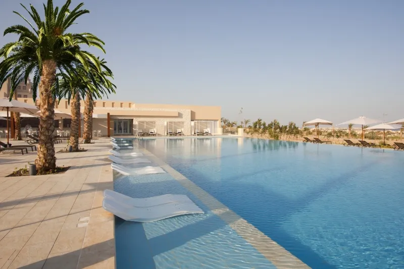 The 5 star hotel Steigenberger Makadi**** is located approximately 1,5 km from the private beach. There is a shuttle between the hotel and the airport (for a fee). The beach is patrolled by a lifeguard. Here, there are cushions, sun umbrellas and beach towels available. At the beach there is a bar serving refreshing drinks. To reach the beach a shuttle is provided. The air-conditioned hotel has a 24h reception (check-in is possible around the clock), a lobby bar, Wi-Fi, internet access, a jacuzzi, showers and changing rooms, a first aid kit as well as parking spaces. In the outdoor area of the property you will find a seasonally heated pool, where sun loungers, sun umbrellas and pool towels are available for free. Furthermore, you can relax outdoors on the terrace. You can store your valuables in the safe, and your luggage in the hotel`s storage room. For your entertainment, the hotel offers a disco. There is also a laundry service available at an additional cost to customers. For your comfort, in addition to the concierge service the hotel page will ensure you are looked after. If necessary, you can contact the medical centre at any time (for a fee). Guests at the accommodation can get a wake-up call from the hotel personnel. If you want to explore the holiday region, you can use the motorbike rental service close to the hotel (extra fee). At the reception, tickets are offered for excursions in the area. In your hotel, a lot of focus is placed on sustainability. This includes among others a central room air-conditioning. Catering As catering services the hotel offers all-inclusive, half board and full board. Breakfast is offered American, continental, from the buffet or à la carte. Enjoy your lunch as a set meal. Dinner is also served as a buffet or à la carte. Half board includes breakfast and dinner. When booking half board plus, breakfast is included. As part of the all-inclusive service, local and international alcoholic beverages (24h, limited) as well as international alcoholic beverages (unlimited) are available at no extra charge. For the meals, there are a buffet restaurant with terrace (Italian, Mediterranean, calorie-reduced, gluten-free and vegetarian dishes) and 2 bars as well as the pool bar. For dinner, guests are asked to wear appropriate clothing in the restaurant. Distances