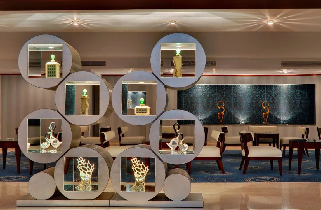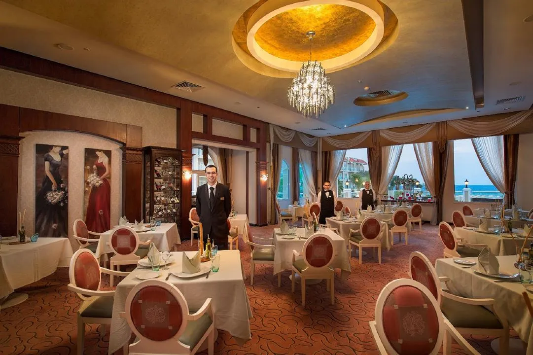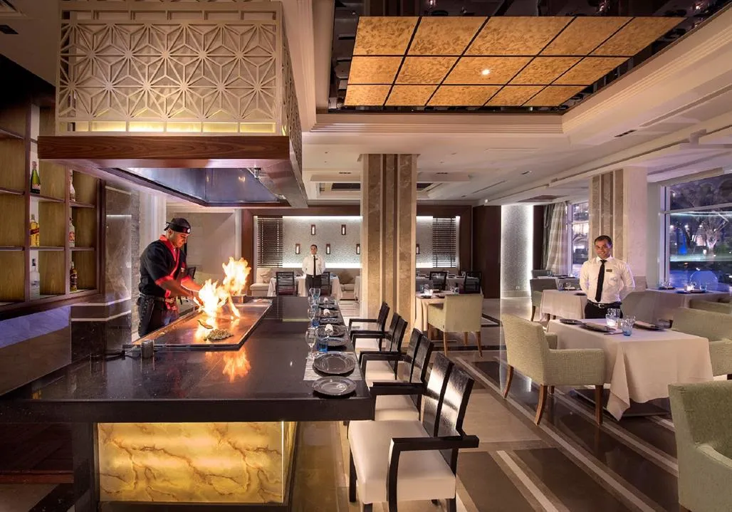Restaurant principal - “Turquoise”, pool restaurant - “Ossiano”; 4 restaurante á la carte, cu specific: italian - “Bella’s”, chinezesc - “Mandarin”, pescăresc - “Mermaid”, japonez & indian - “Myiako”; Executive Lounge, Pool Bar, Long Bar, Vitamin Bar, Lobby Bar.
