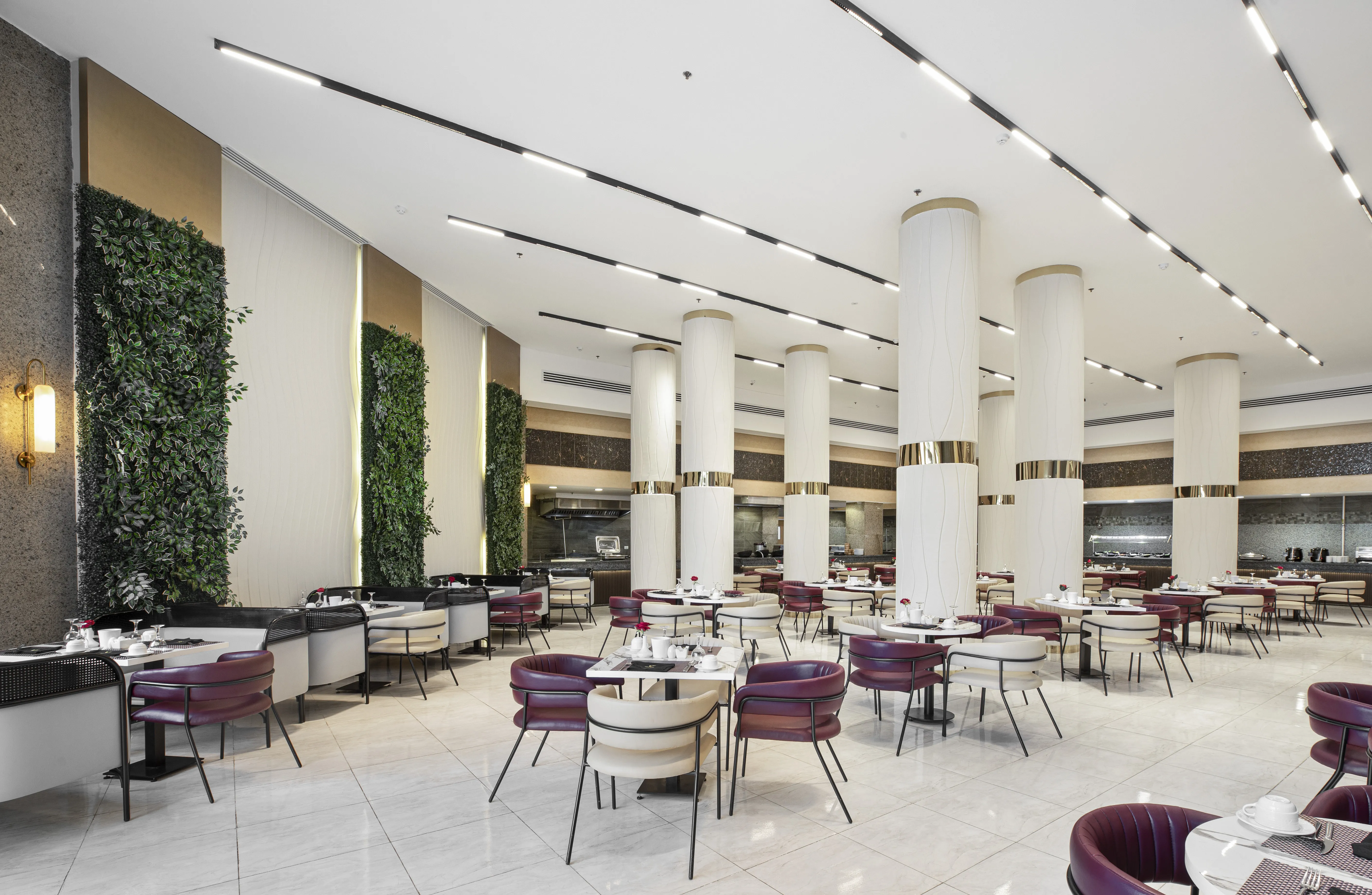 Breakfast; Breakfast buffet; Buffet lunch; Buffet dinner; À la carte dinner; Picnic; Vegetarian meal (Extra Fee); Snacks; Halal meal (Extra Fee) Sports:Aqua fit; Banana boating; Waterskiing; Motor board ride; Diving; Windsurfing; Sailing; Canoeing; Pedal boating; Table tennis; Aerobics; Fitness; Horse riding; Volleyball; Beach volleyball; Billiards; Surfing; Tennis