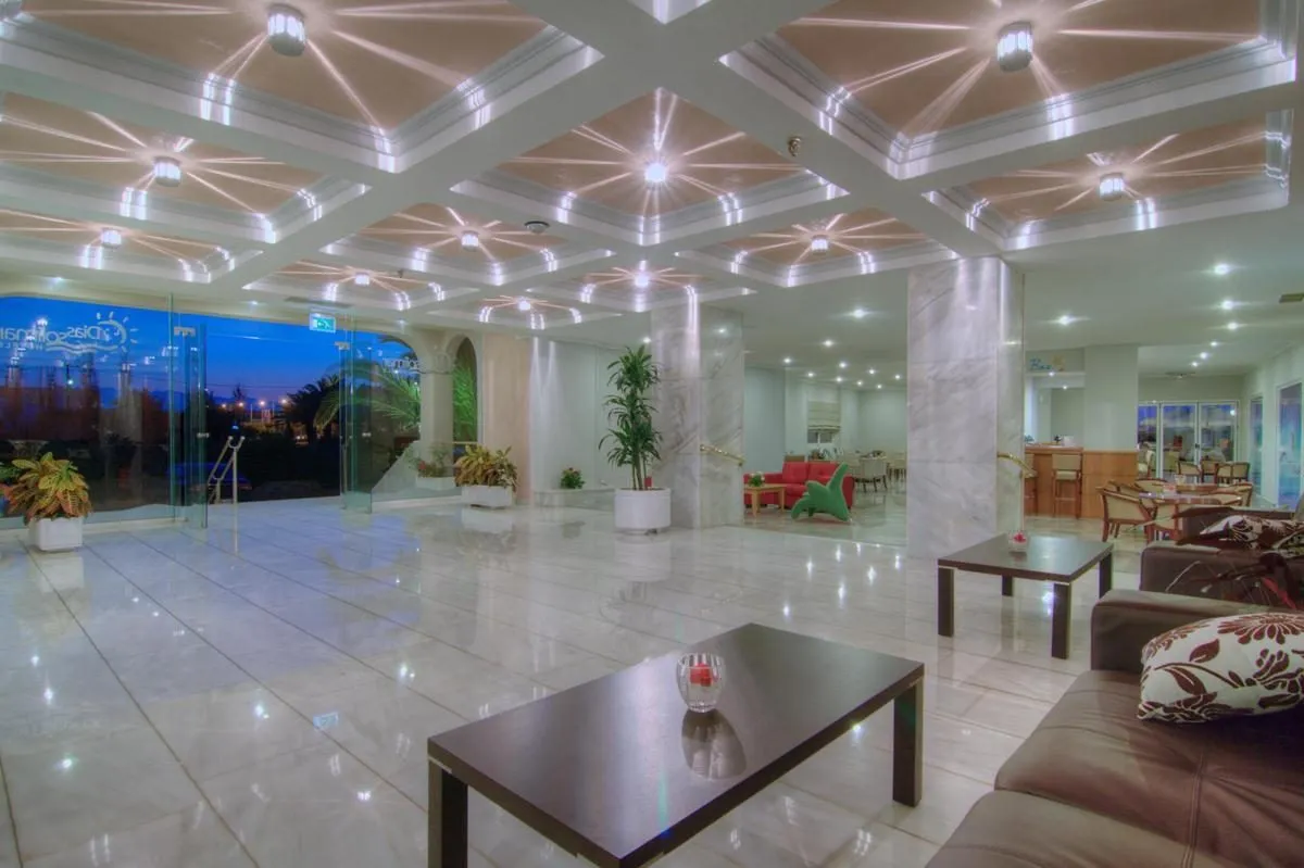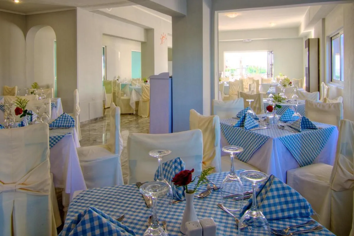 Descriere generală Hotelul Solimar Dias este locat la cca. 100 m de o plajă cu nisip. Pe plajă sunt disponibile șezlonguri și umbrele de soare la un cost suplimentar. Locul de cazare se află la doar câțiva metri de centrul turistic al stațiunii. Orașul Rethymno este la aprox. 7 km. Un supermarket și alte magazine se găsesc la aprox. 100 m. La cele mai apropiate baruri și restaurante se poate ajunge, de asemenea, într-un timp foarte scurt. Pentru îngrijiri medicale în caz de urgență, există un spital la cca. 7 km distanță. Aeroportul (HER) se află la aprox. 80 km. Un alt aeroport (CHQ) este la cca. 73 km. Facilități Resortul dispune de 2 etaje și peste 80 camere. Acesta oferă oaspeților săi recepție deschisă 24h (check-in de la 14:00, check out până la 12:00), bar în hol, aer condiționat, seif (contra cost) și parcare (gratuită). Pentru a satisface apetitul aveți la dispoziție în hotel un restaurant cu aer condiționat. Accesul la internet WiFi este disponibil gratuit pentru oaspeții hotelului. Spălătorie, călcat și serviciul medical sunt disponibile la un cost suplimentar. Piscină Zona exterioară a hotelului include o piscină precum și o piscină pentru copii. La piscină sunt disponibile gratuit șezlonguri și umbrele de soare. Un bar lângă piscină oferă oaspeților băuturi răcoritoare. Catering Mic dejun american (între orele 07:30 - 10:00). All Inclusive: micul dejun, prânzul și cina. Micul dejun, prânzul și cina pot fi servite numai în anumite restaurante. Mic dejun târziu (între orele 10:00 - 10:45), băuturi răcoritoare (12:30 - 14:30), cafea și ceai (17:00 - 18:00), aperitive (11:00 - 12:30), bere (12:30 - 14:30), vin (12:30 - 14:30) și gustări la miezul nopții (14:30 - 17:00). Sport/Leisure Este disponibil: Tenis (gratuit), biliard (contra cost) și tenis de masă (posibil contra cost). Îngrijirea copiilor: babysitting (contra cost). Informații suplimentare Pentru anumite facilități sau activități se pot aplica taxe suplimentare. Unele servicii depind de anotimp și de condițiile climatice locale. Limbi de serviciu: engleză, germană și franceză. Carduri de credit: Visa și Euro/MasterCard. Superior Familienzimmer: Cameră cu pat dublu, pat twin sau pat single, pat pentru bebeluși (gratuit), ceainic (gratuit), balcon sau terasă, acces la internet (contra cost), seif (contra cost) și TV prin satelit precum și aer condiționat reglabil individual. Dimensiune: 28 m². Einzelbelegung Standard Zimmer: Cameră cu pat dublu, pat twin sau pat single, ceainic (gratuit), balcon sau terasă, acces la internet (contra cost), seif (contra cost) și TV prin satelit precum și aer condiționat reglabil individual. Superior Zimmer: Dotate cu pat dublu, pat twin sau pat single, pat pentru bebeluși (gratuit), ceainic (gratuit), balcon sau terasă, acces la internet (contra cost), seif (contra cost) și TV prin satelit precum și aer condiționat reglabil individual. Dimensiune: 23 m².