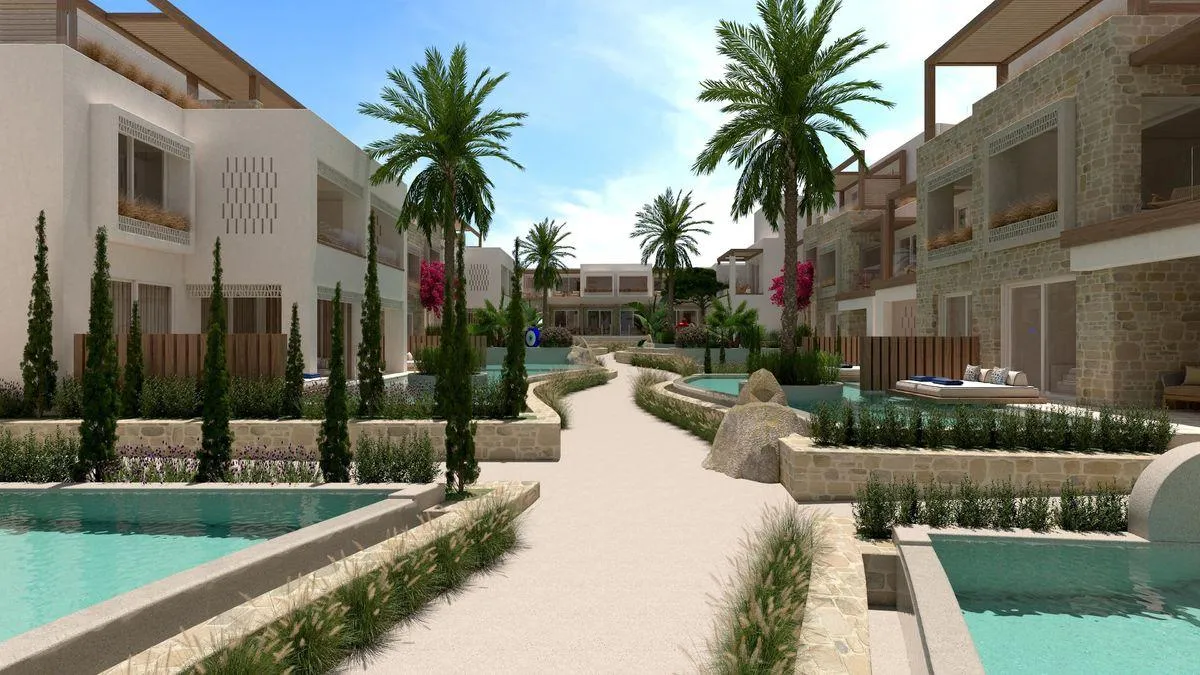Completely renovated in 2025, the 2-storey beach hotel consists of a main building and 2 adjoining buildings, and has 50 rooms in total. It is equipped with a reception (check-in from 14:00, check-out until 12:00), a lobby, an air conditioning, a safe (for free), a coiffeur, a parking area (for free) as well as a security entry system. For the meals, there are three restaurants (air-conditioned) and a snack bar (open from 10:30 - 18:00). You can relax in good company in the hotel bar. WiFi is available for free. For guests with physical disabilities the accommodation provides a barrier-free access and a number of wheelchair accessible bathrooms. Room cleaning and concierge service are free of charge. Room service, laundry service and medical service are available for a fee. Pool: In the outdoor area of the mediterranean-style hotel you will find one salt water pool (approx. 172 m²). Here, there are sun umbrellas and sun loungers for free available. Refreshing beverages can be consumed directly at the pool bar (open from 10:30 - 23:00).