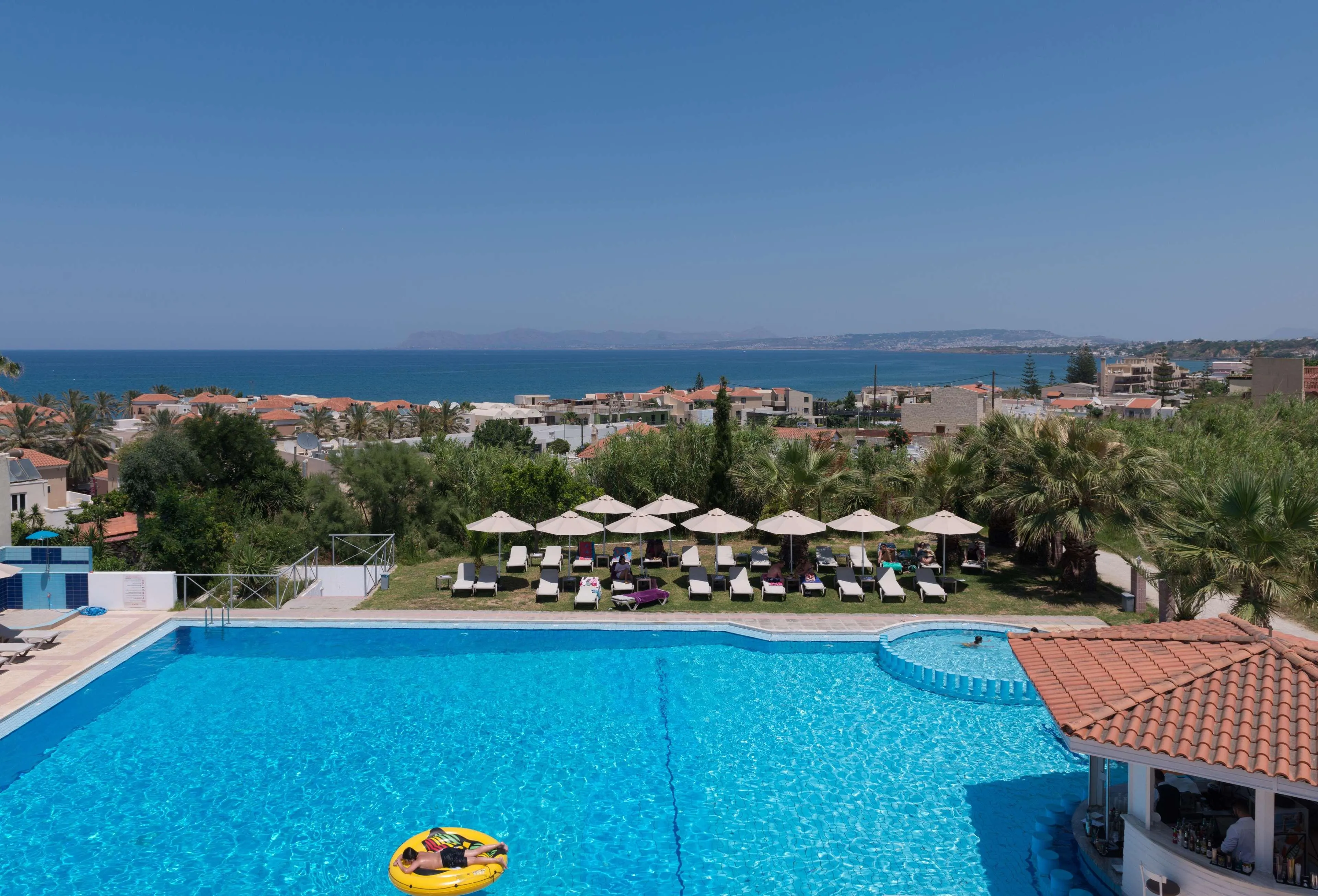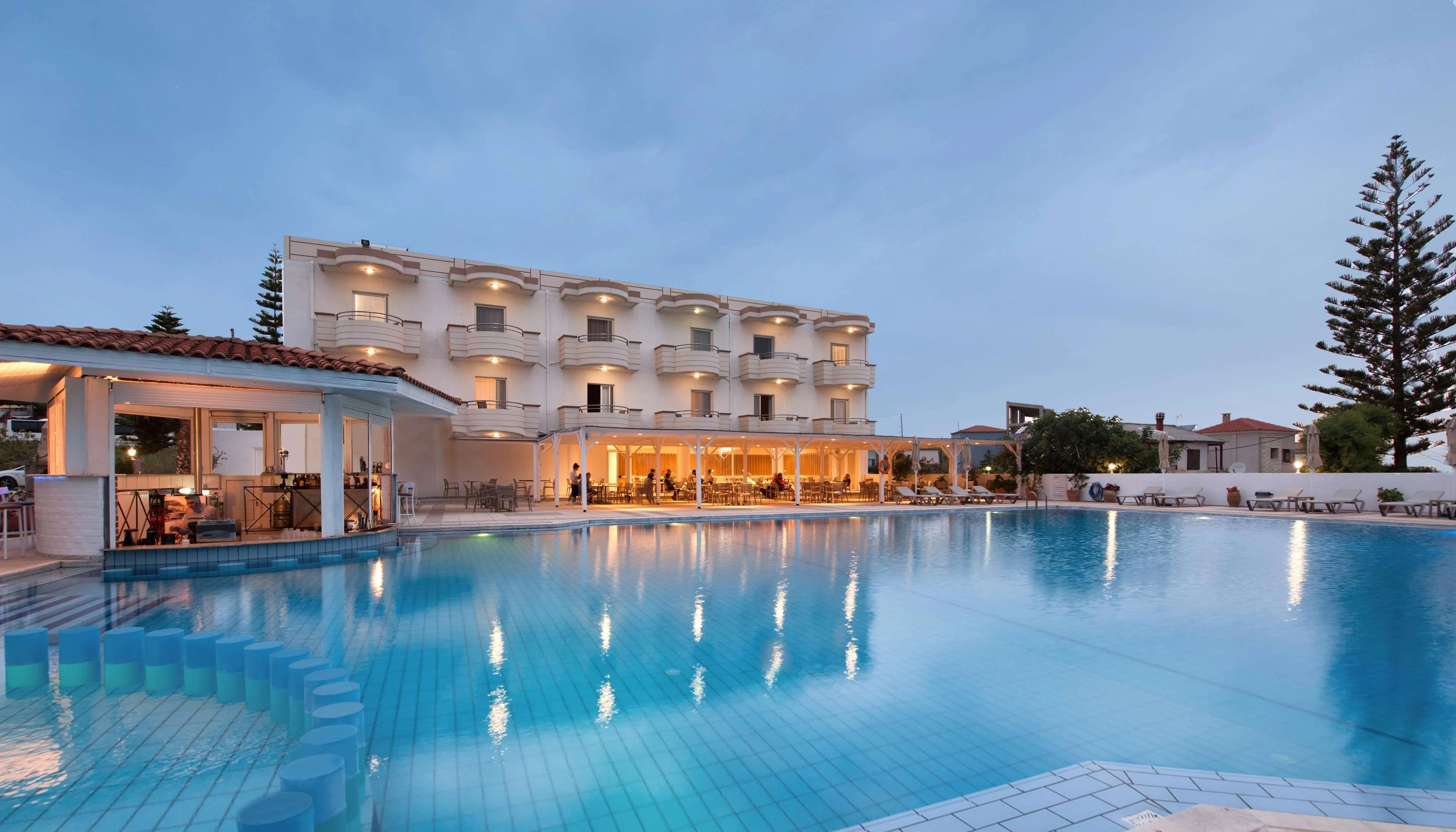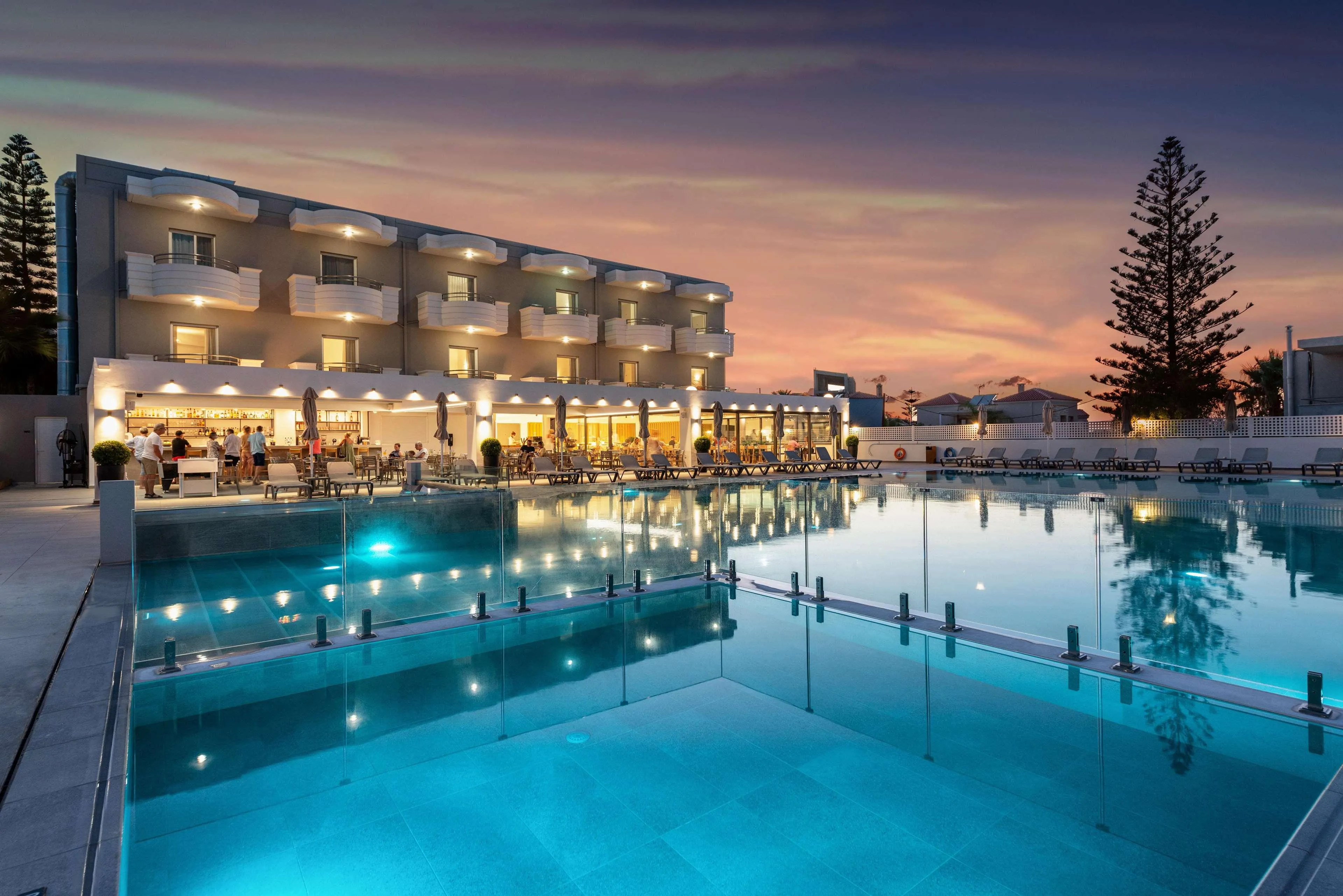Boasting a prime location just 200 metres from the seaside area of Agia Marina, in Crete, this charming hotel is the ideal choice for your accommodation. All rooms features Tv, safe deposit box, mini-fridge and air conditioning. This stylish property offers a swimming pool, a separate children's pool and a restaurant serving a wide choice of mouth-watering dishes. All hotel rooms are tastefully decorated and offer a private balcony, most with stunning views over the Cretan Sea . All rooms have a sitting area,furnished balcony and private bathroom with shower. The hotel's restaurant serves buffet breakfast and dinner and traditional Greek specialities and snacks during the day at our Snack Bar. Location:2002 Year of construction; 2018 Year of most recent renovation; 47 Total number of rooms; 2 Number of floors (main building); 8 Family rooms; 1 Disability-friendly rooms Hotel type:hotel Methods of payment:American Express; Diners Club; MasterCard; Visa; Maestro; Visa Electrón Distances (in meters):City centre (200); Nearest Bus / Metro Stop (150); Airport (21000); Beach (150) Room facilities (Standard room):Shower; Hairdryer; Toiletries; Slippers; Wi-fi; Internet access; Direct dial telephone; Satellite TV ; 220V power supply; Mini fridge; Tea and coffee making facilities ; Individually adjustable air conditioning; Safe; Balcony; Wheelchair-accessible; Wake-up service; Smoking rooms; Extra beds on demand; Cot on demand Facilities:Wheelchair-accessible; Car park; 24-hour reception; Check-in hour; Check-out hour; Late Check-out (Extra Fee); Wi-fi; Car hire (Extra Fee); Secure parking; Airport Shuttle (Extra Fee); Room service; Laundry service; Medical service (Extra Fee); Bicycle hire service (Extra Fee); Babysitting service (Extra Fee); Multilingual staff; Air conditioning in public areas; Hotel safe; Currency exchange facilities (Extra Fee); Lift access; Garden; Concierge; Luggage room; Clothes dryer; Electric kettle; Towels and bed linen Catering:Café; Bar; Restaurant; Non-smoking area; Highchairs; Poolside snack bar; Show cooking; Swim-up bar Entertainment:1 Outdoor freshwater pool; 1 Children’s swimming area; Sun loungers; Parasols; TV lounge; Game room